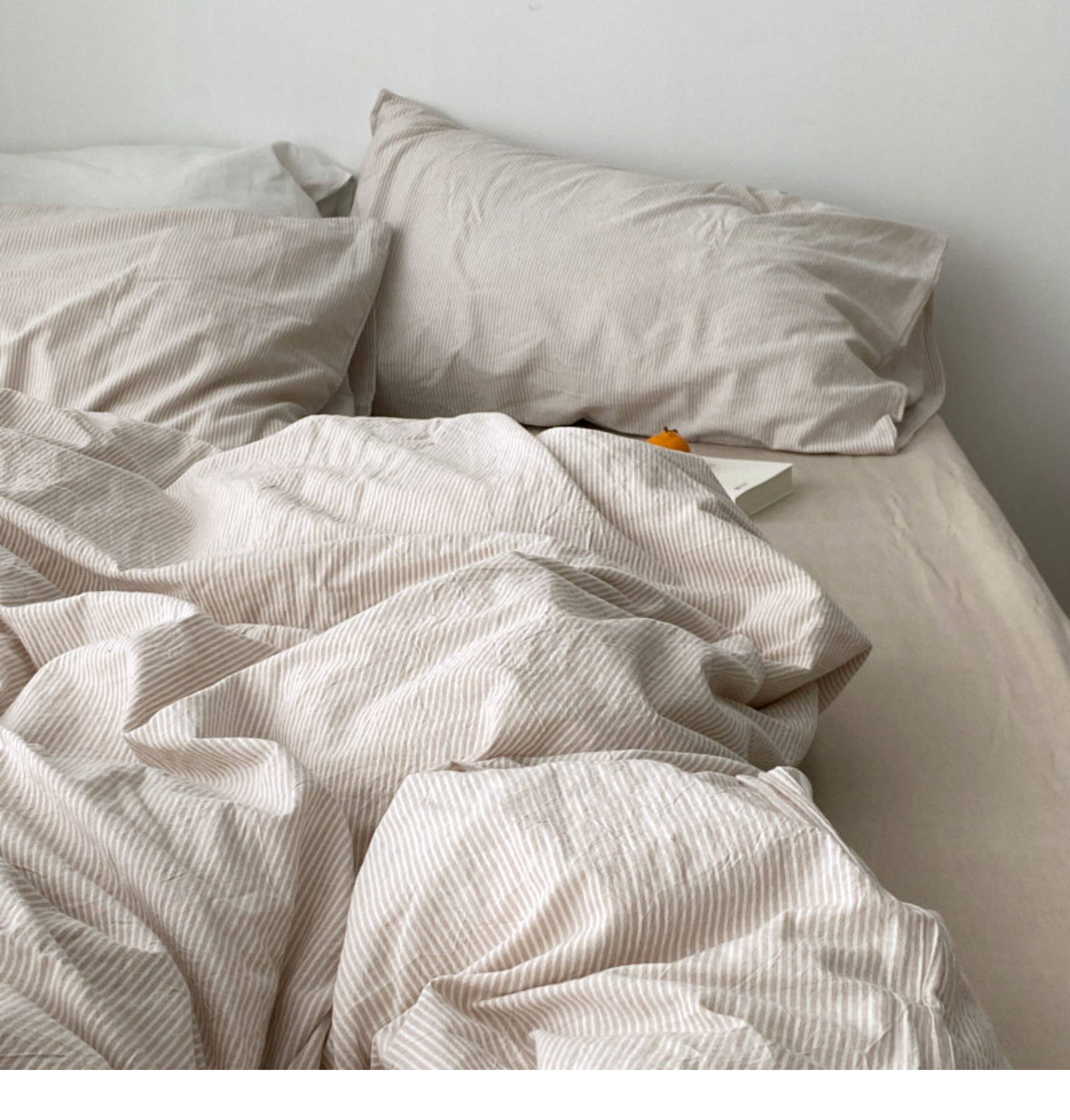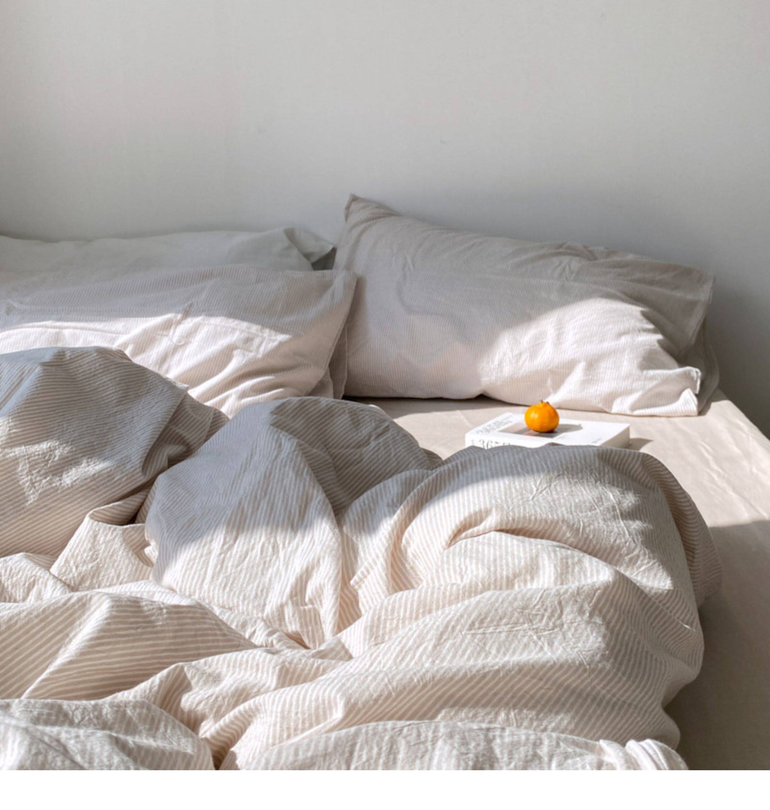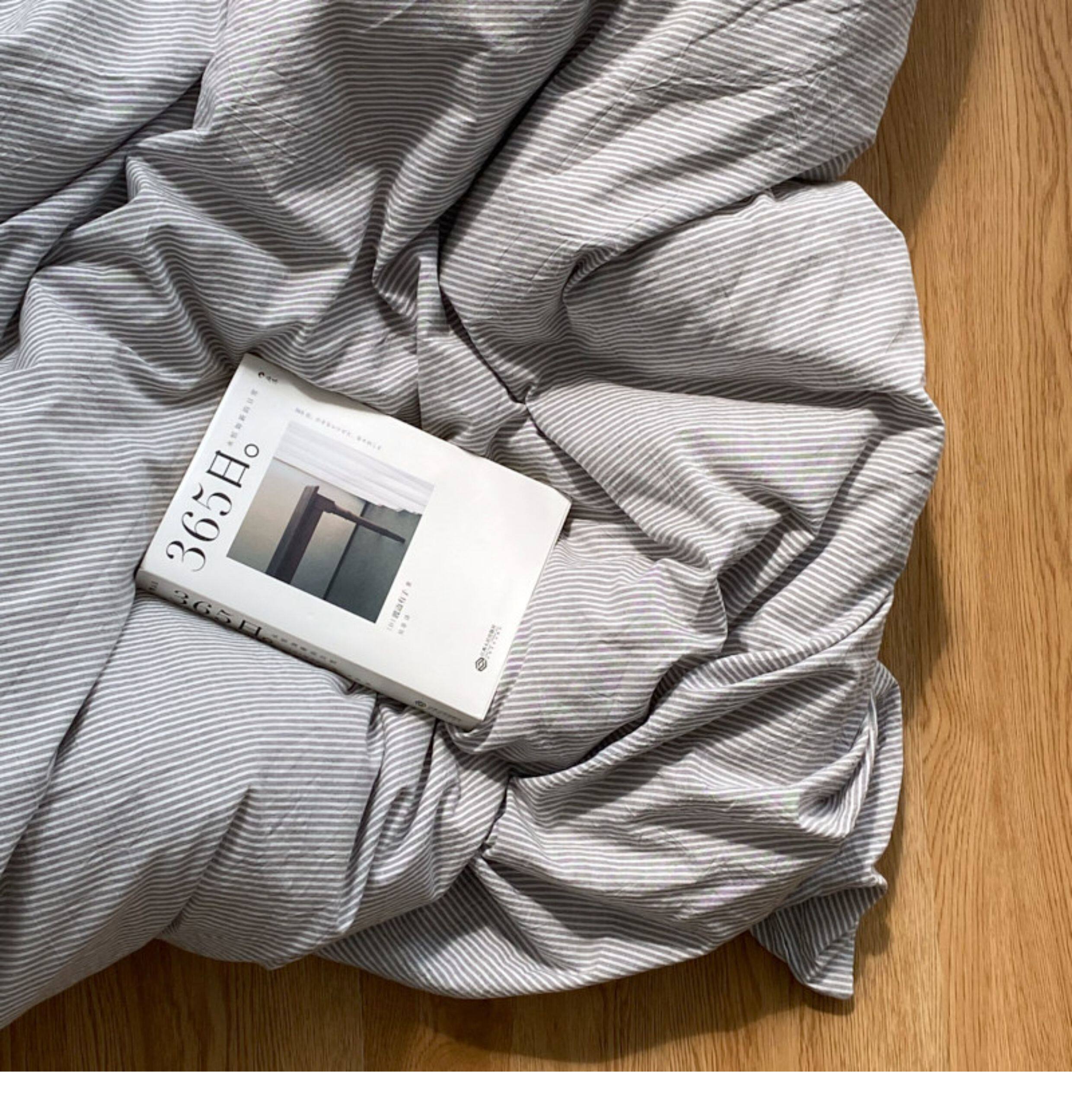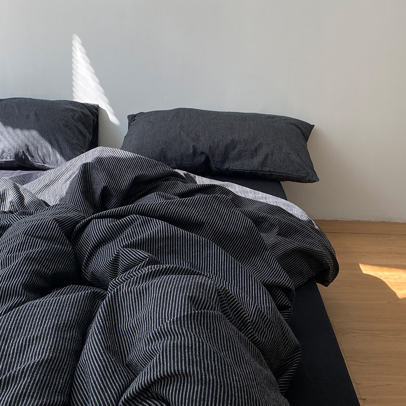 VEINSTUDIO高級冷淡風黑色條紋四件套純棉全棉床單被套床上用品