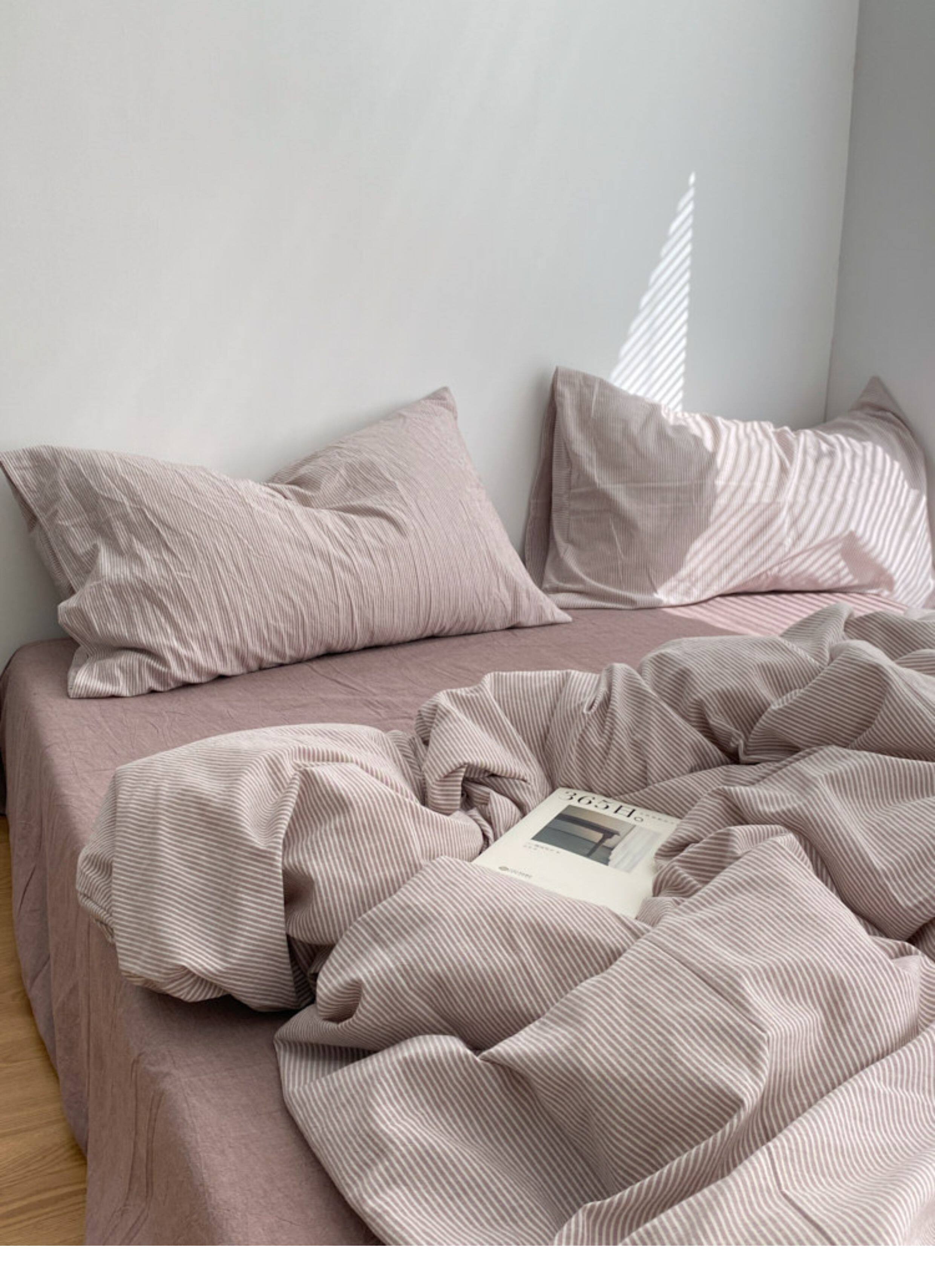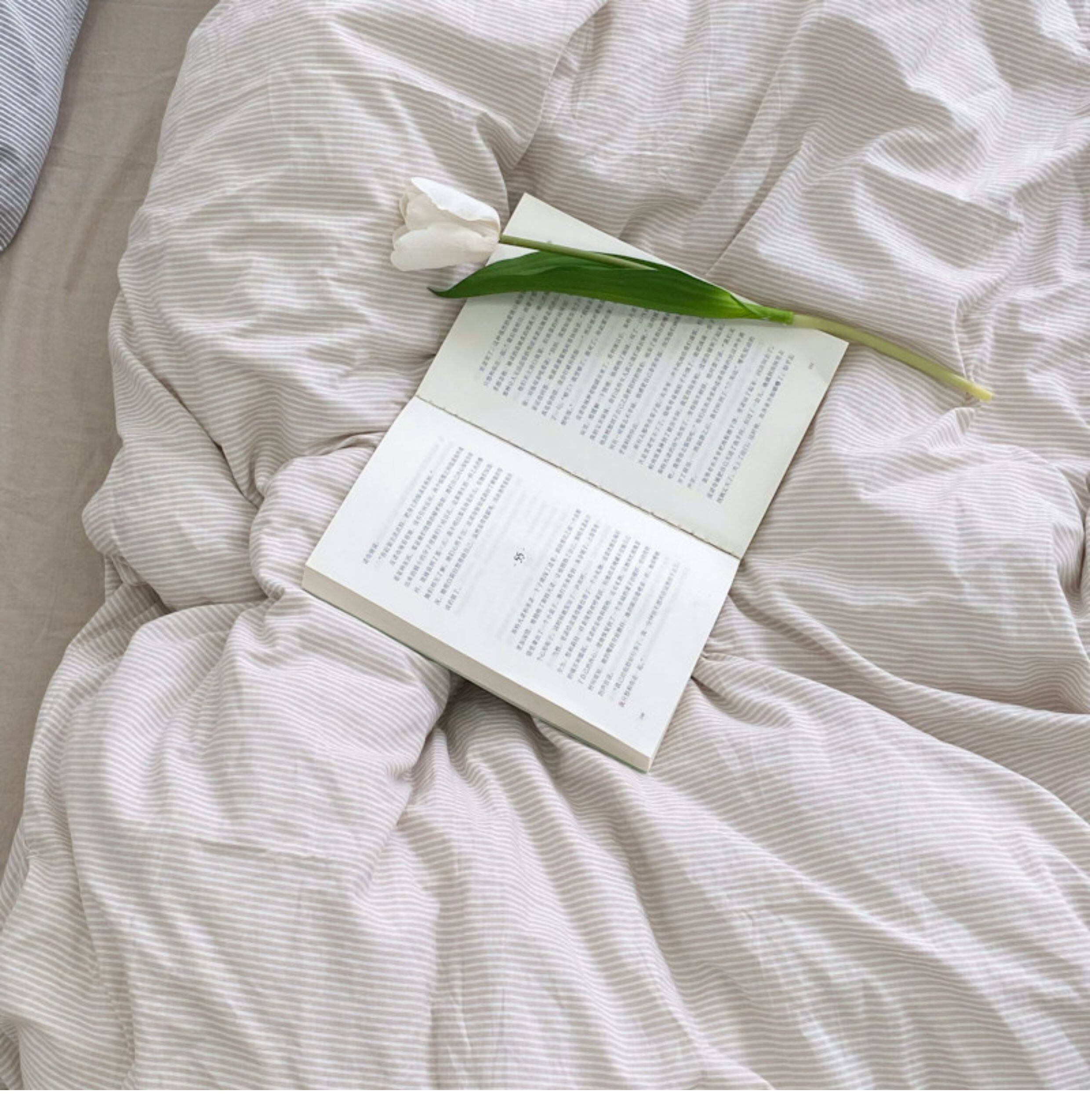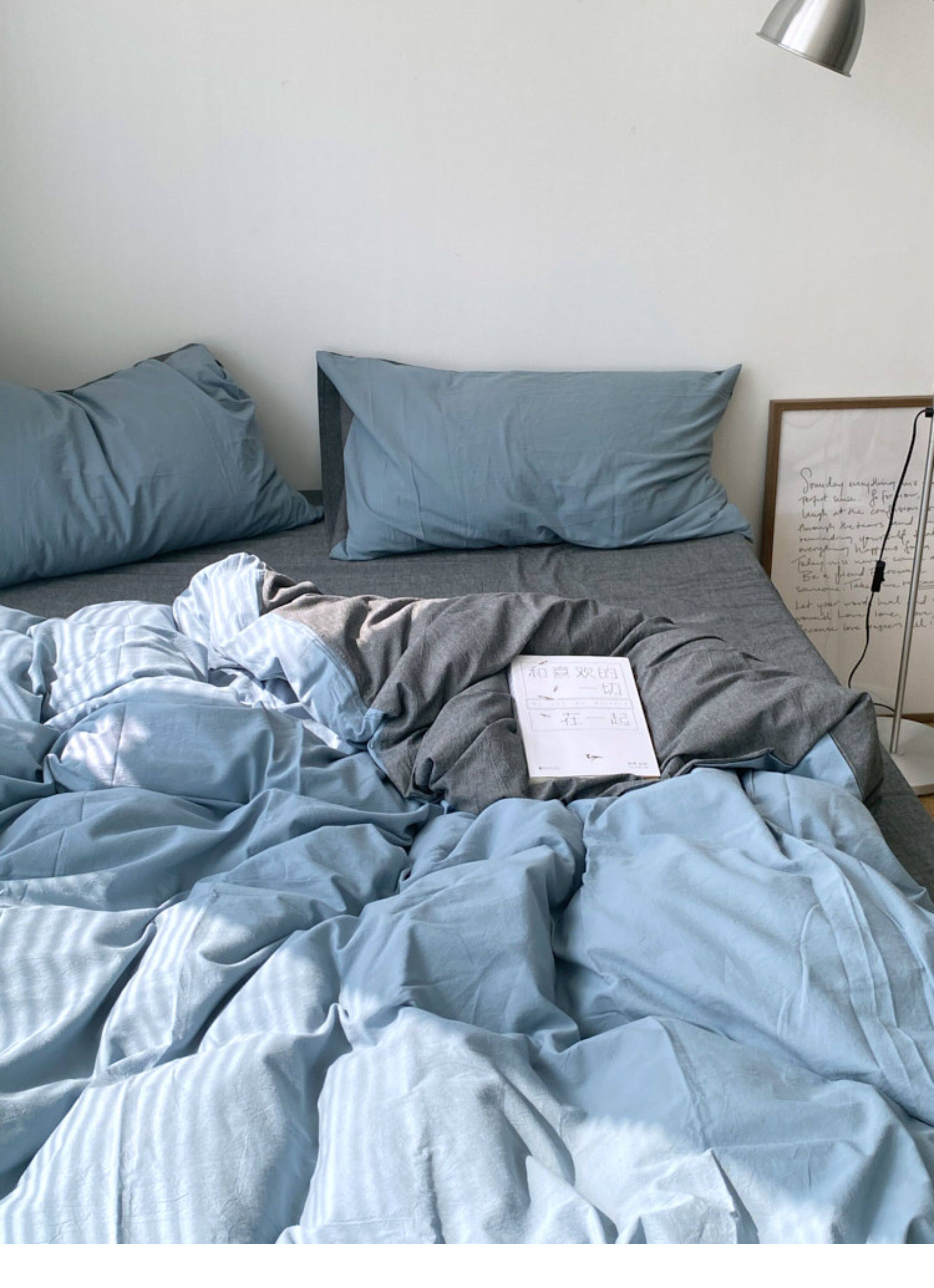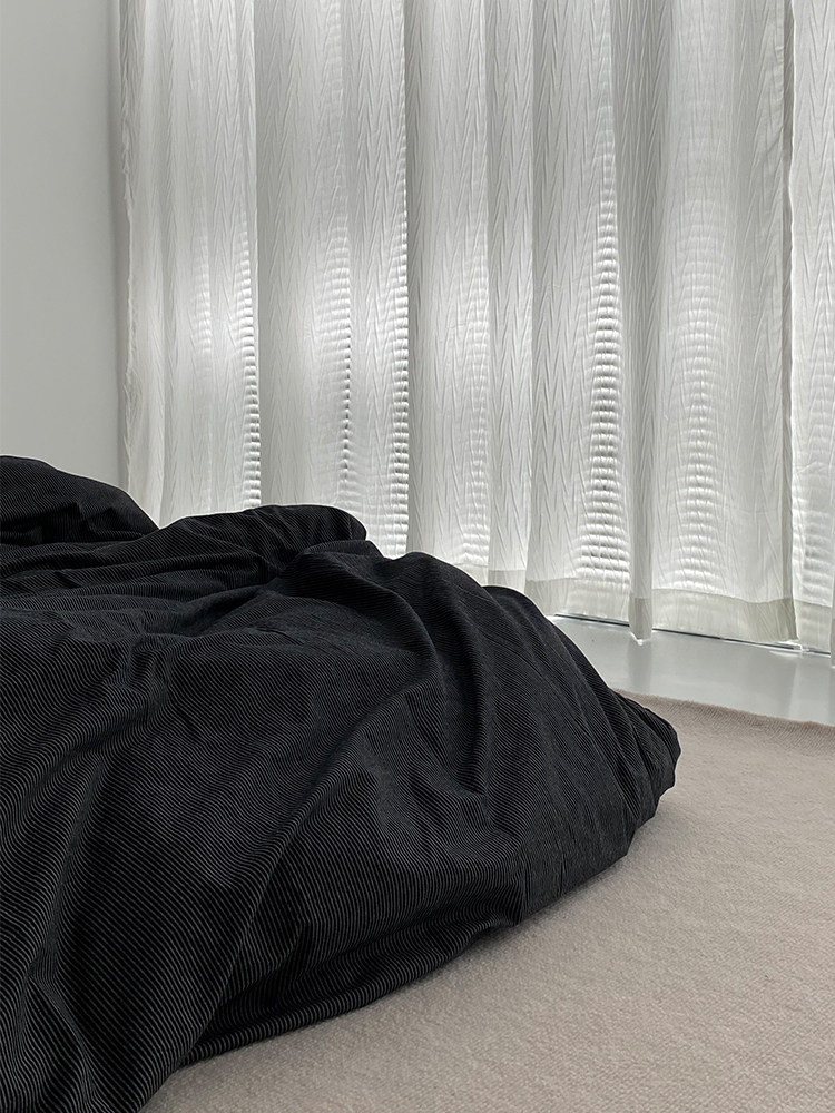 VEINSTUDIO高級冷淡風黑色條紋四件套純棉全棉床單被套床上用品