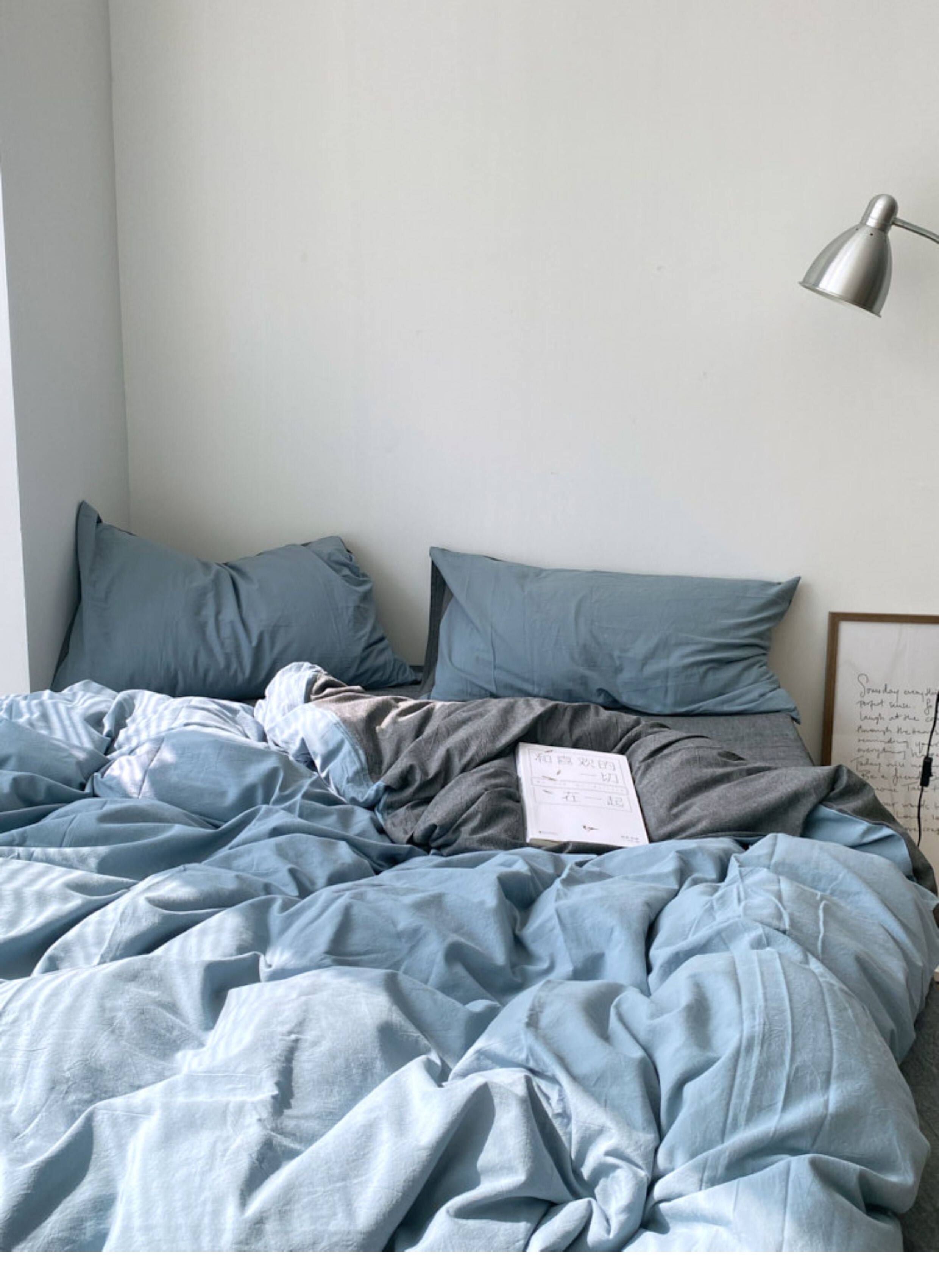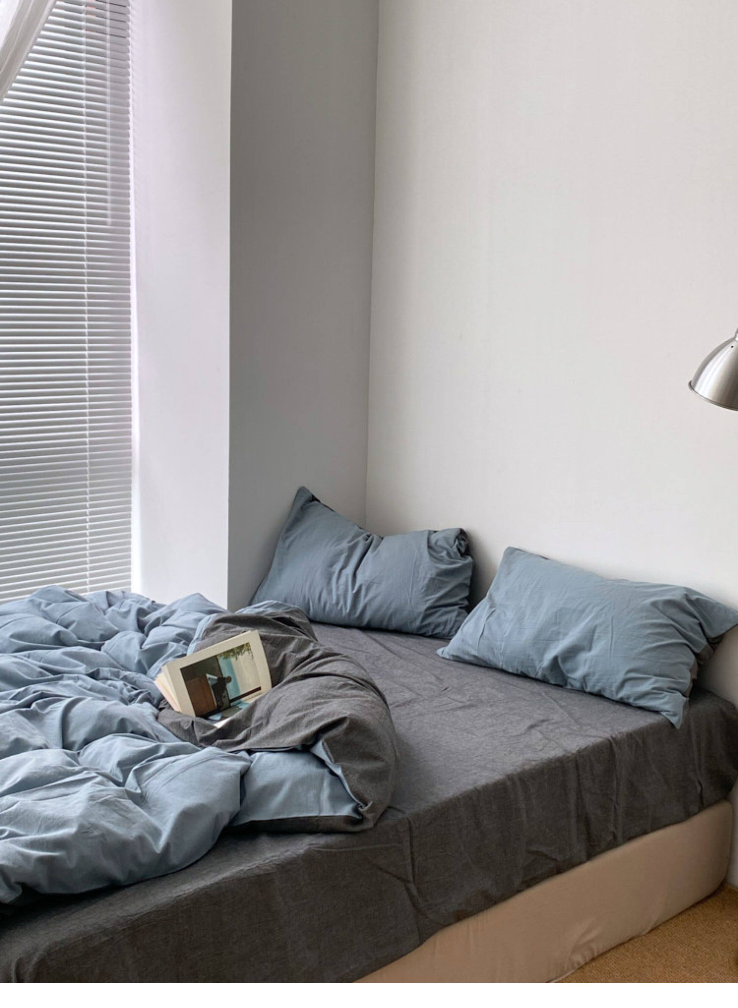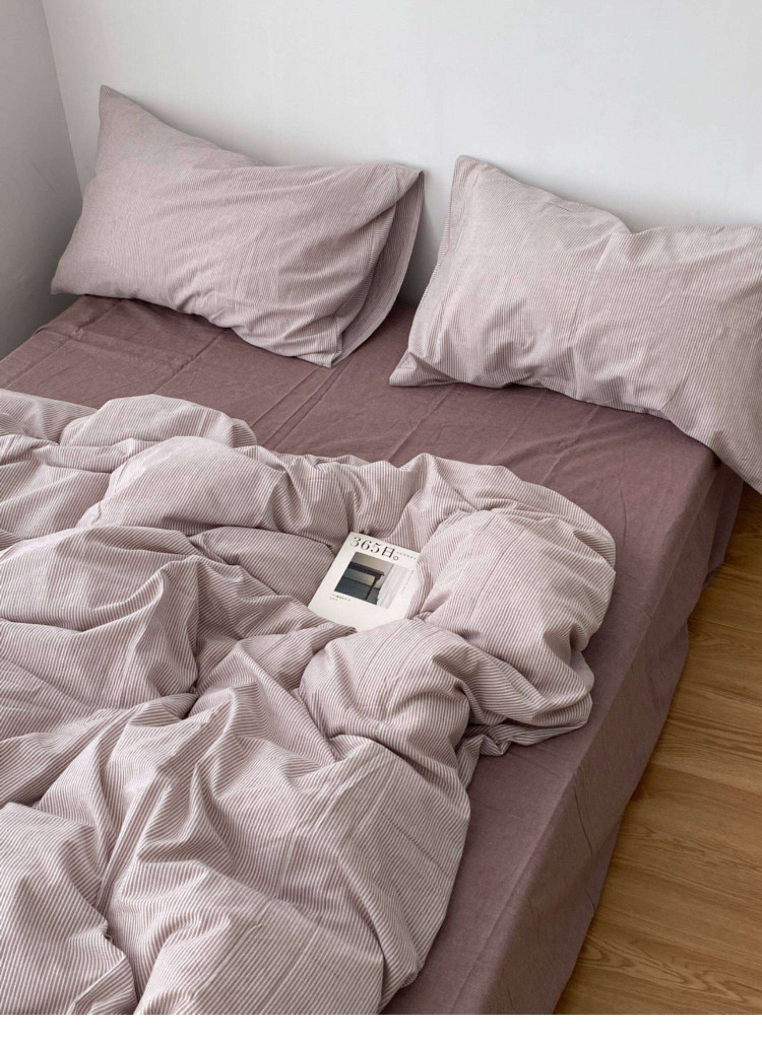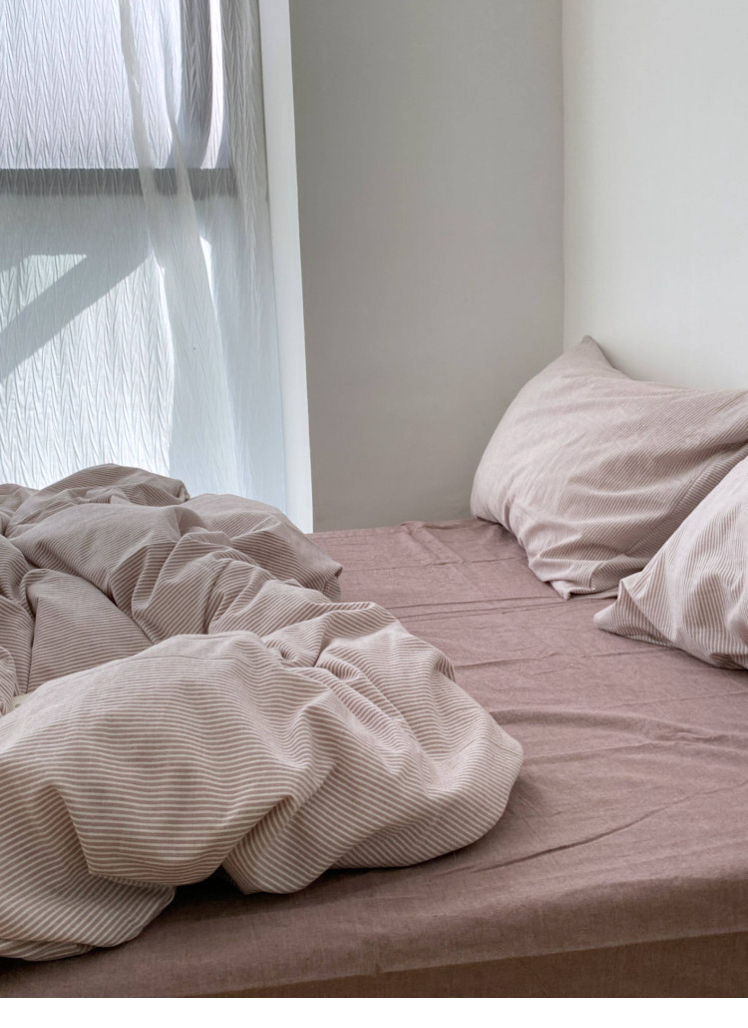 VEINSTUDIO高級冷淡風黑色條紋四件套純棉全棉床單被套床上用品