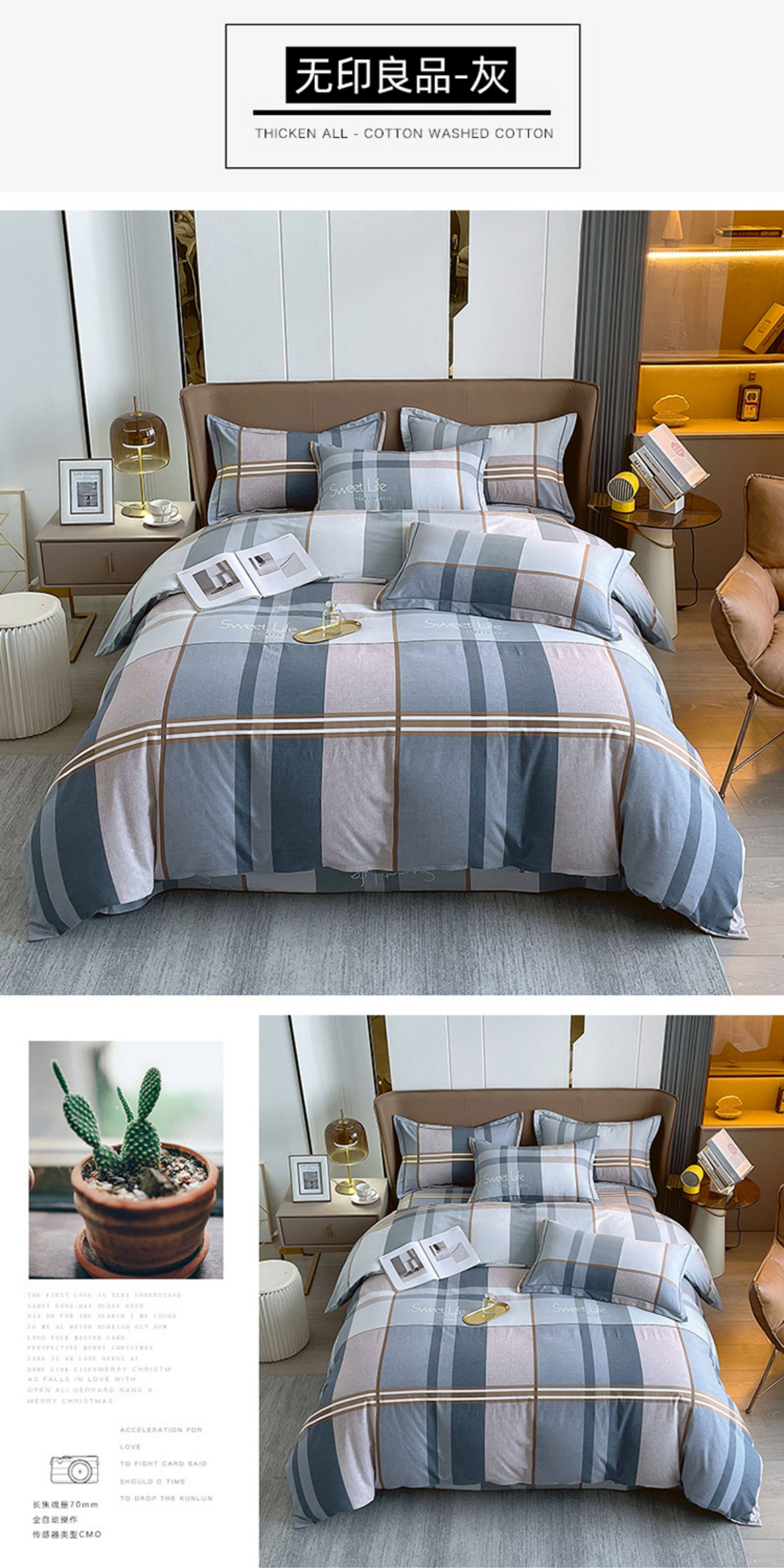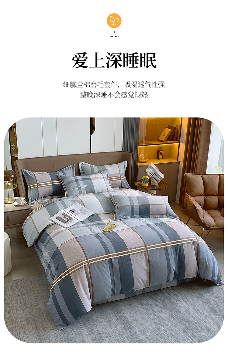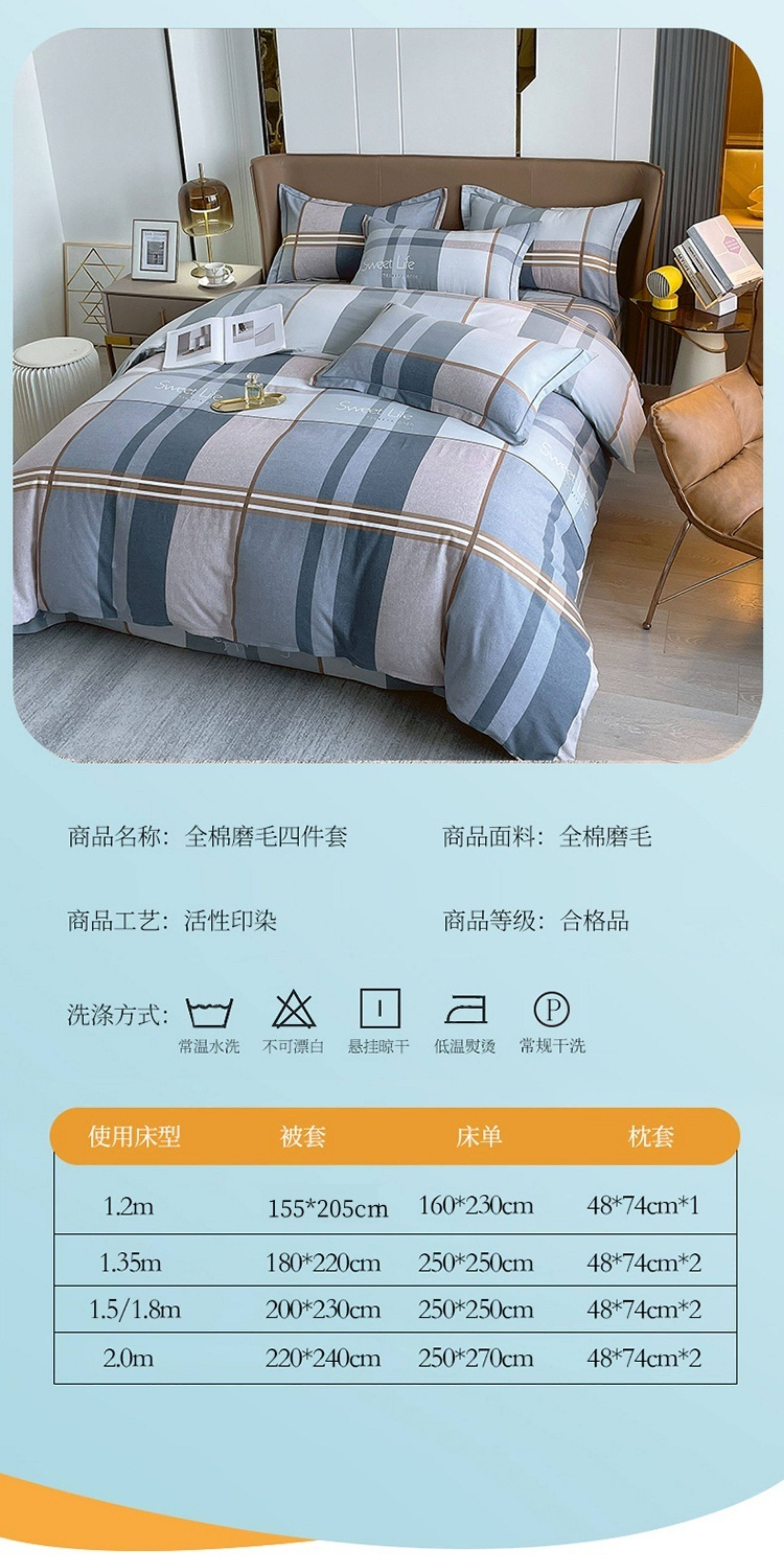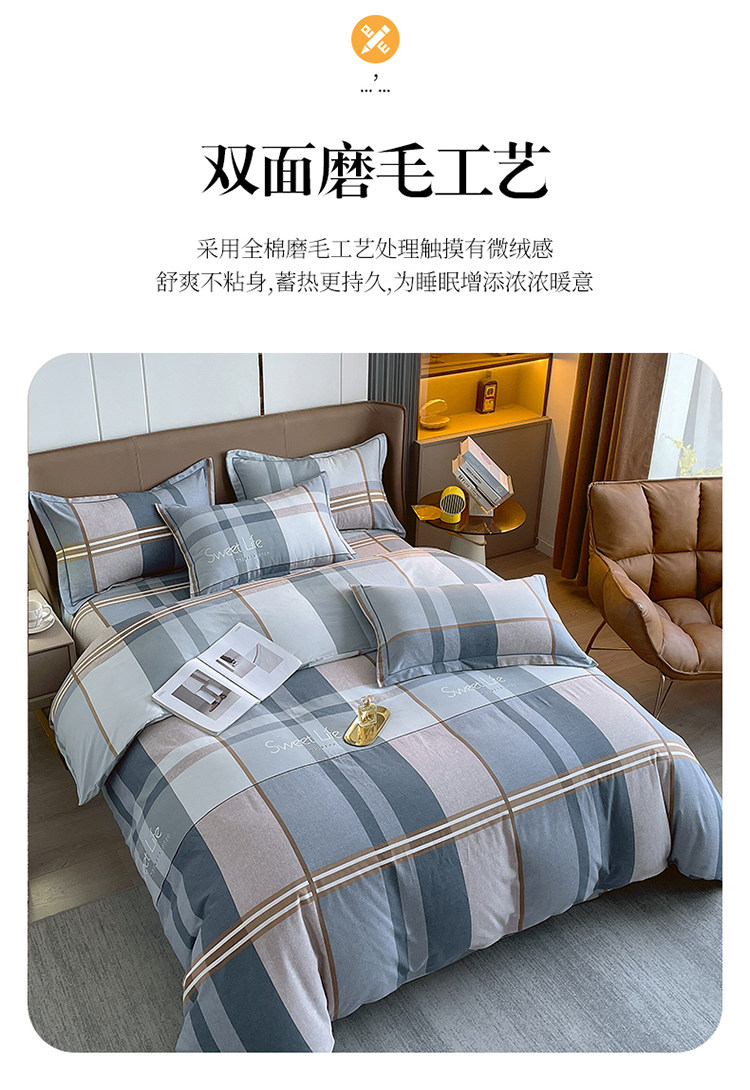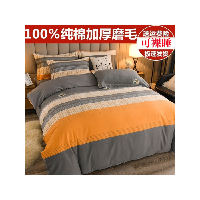 加厚純棉磨毛四件套100全棉床單被套床包床上用品宿捨三件套被罩4