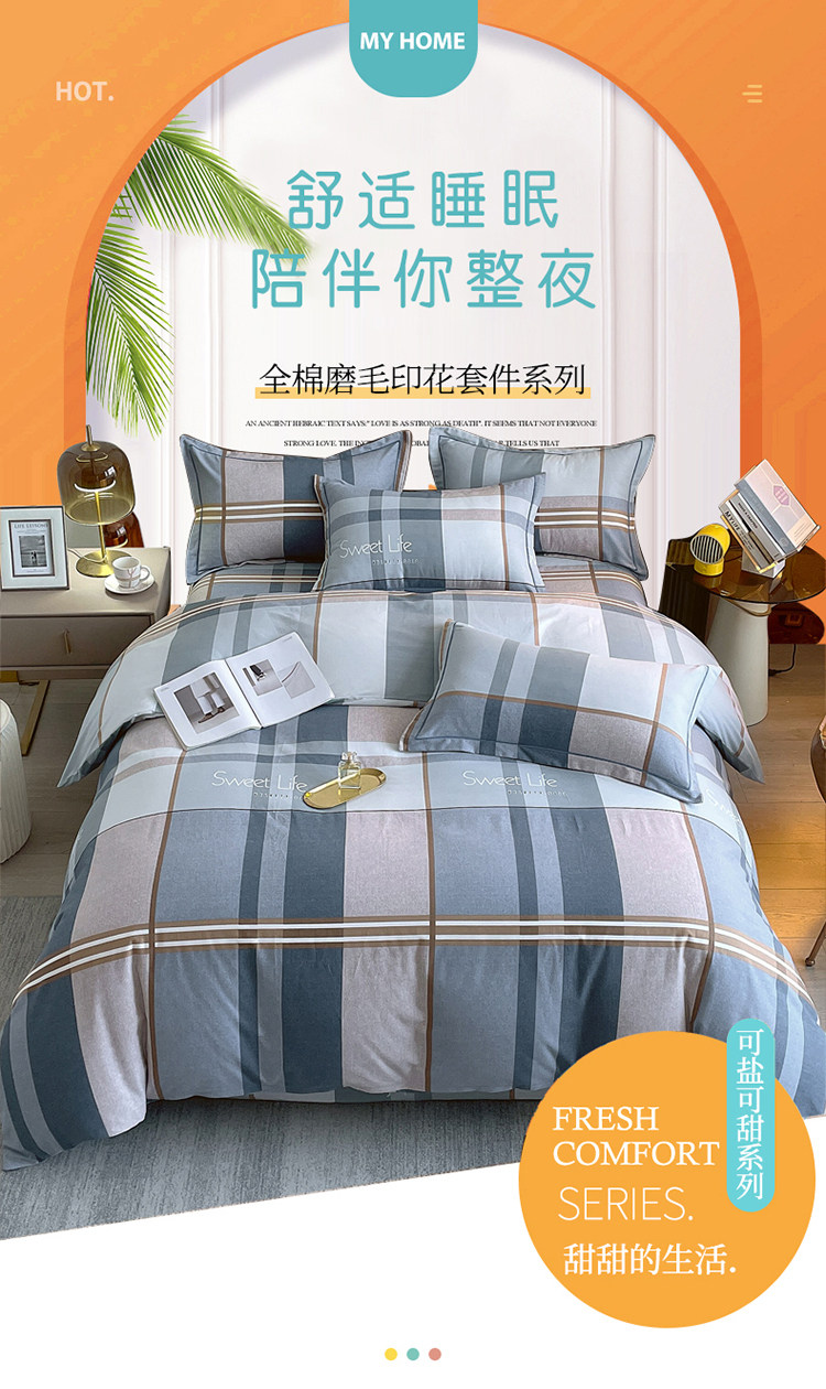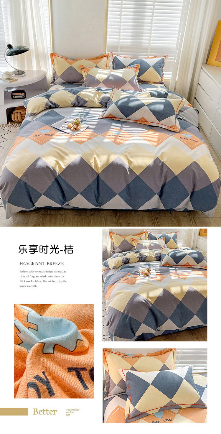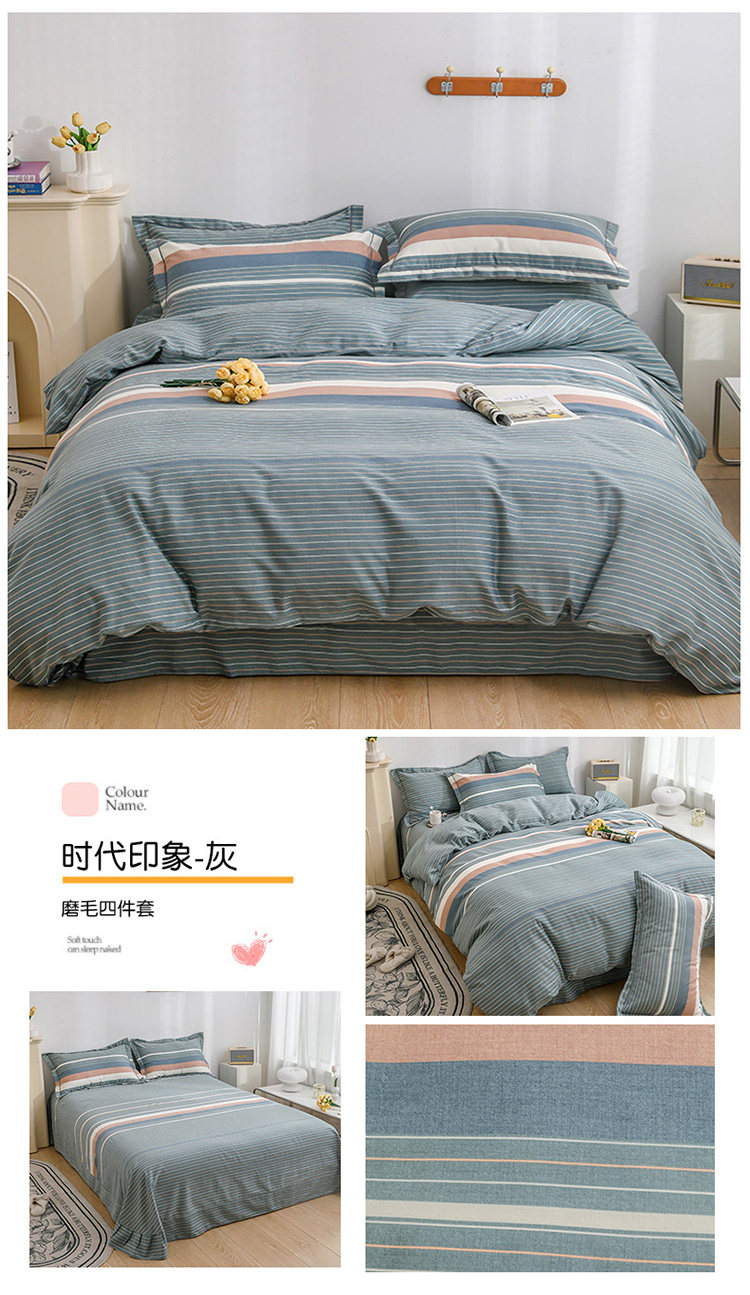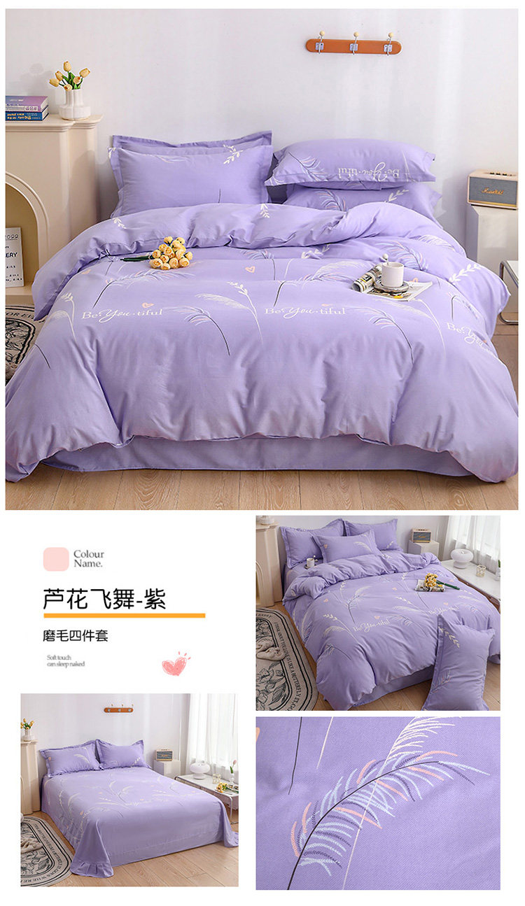 加厚純棉磨毛四件套100全棉床單被套床包床上用品宿捨三件套被罩4