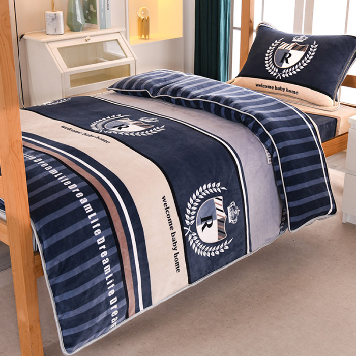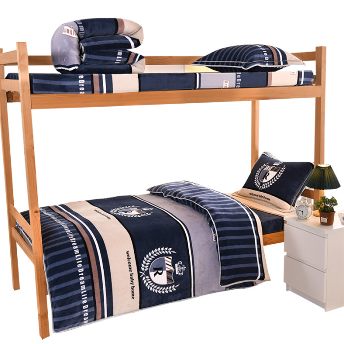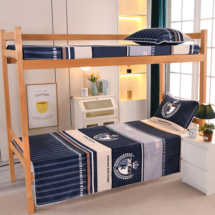 冬天單人學生宿捨床上三件套牛奶絨加絨床單被套150x200珊瑚毛絨3