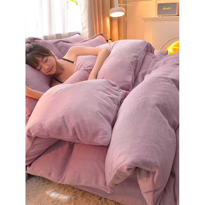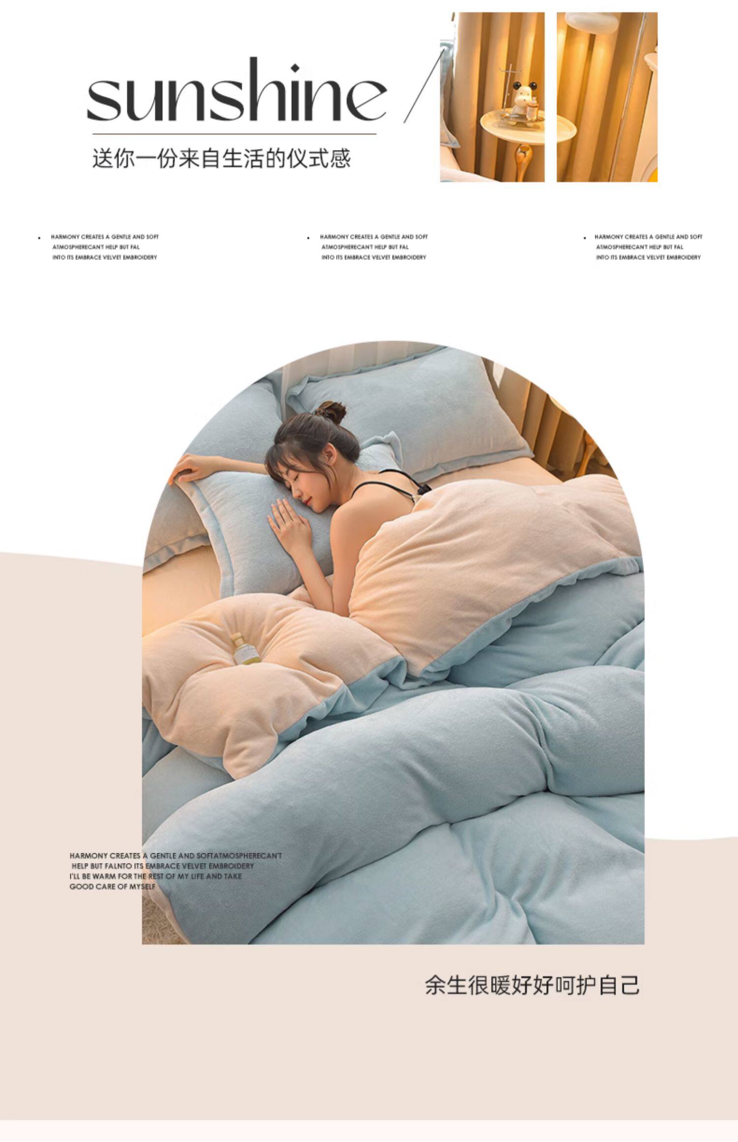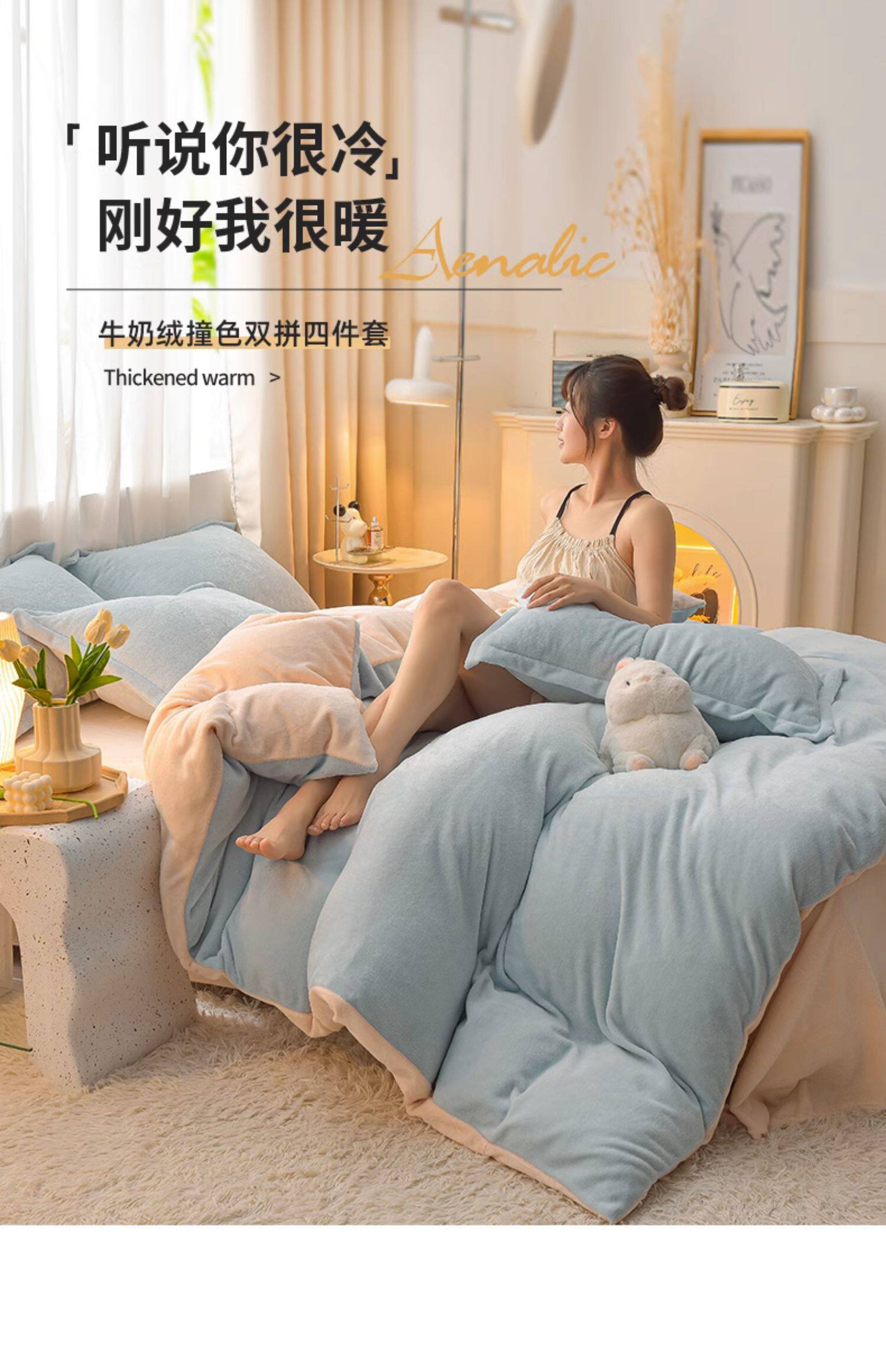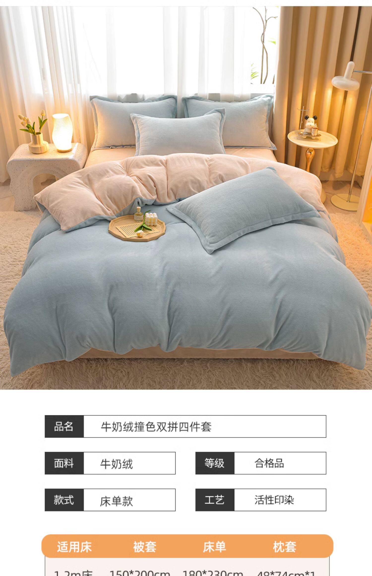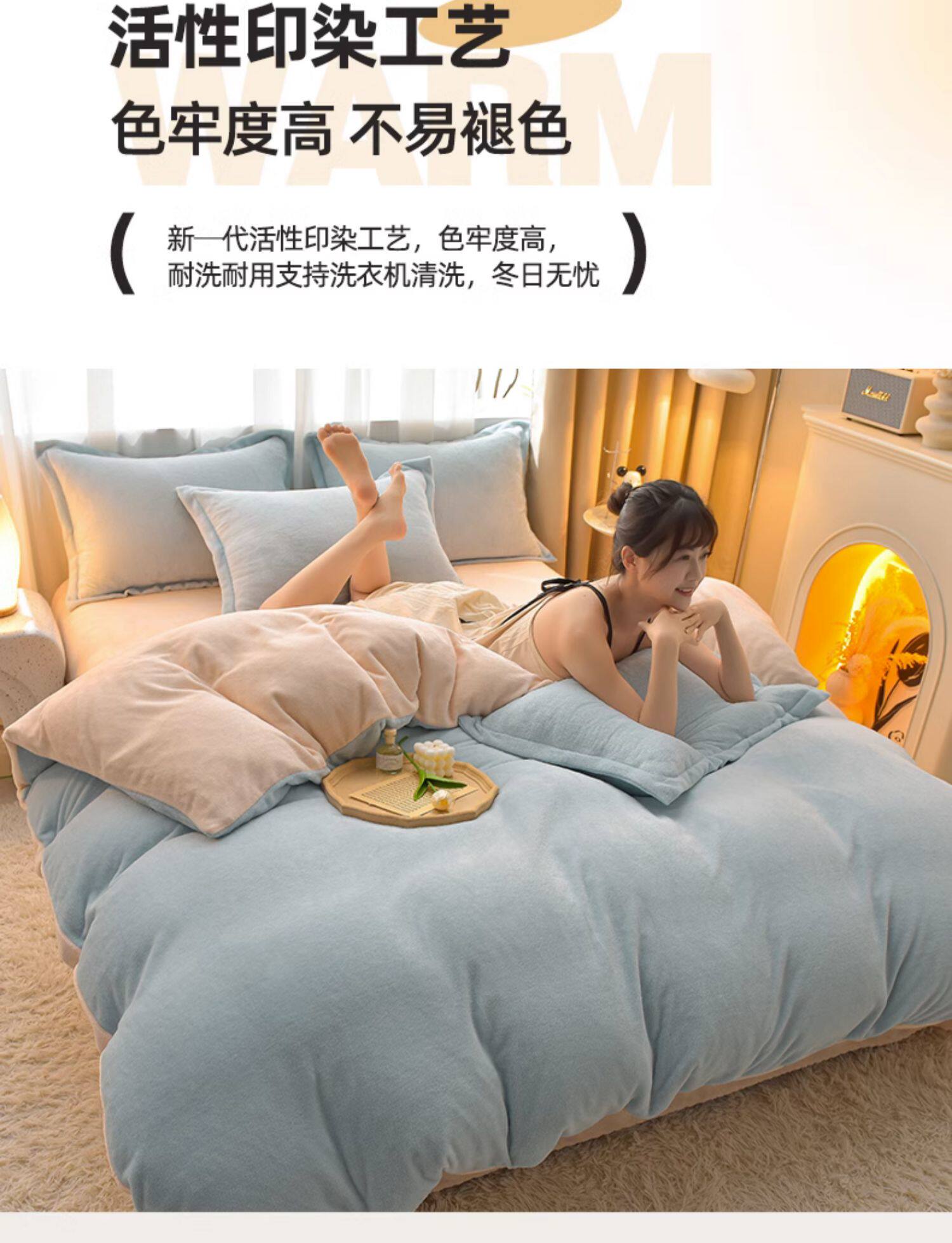 純色雙面牛奶絨冬季床上四件套加厚珊瑚絨被套法蘭絨加絨床單床包
