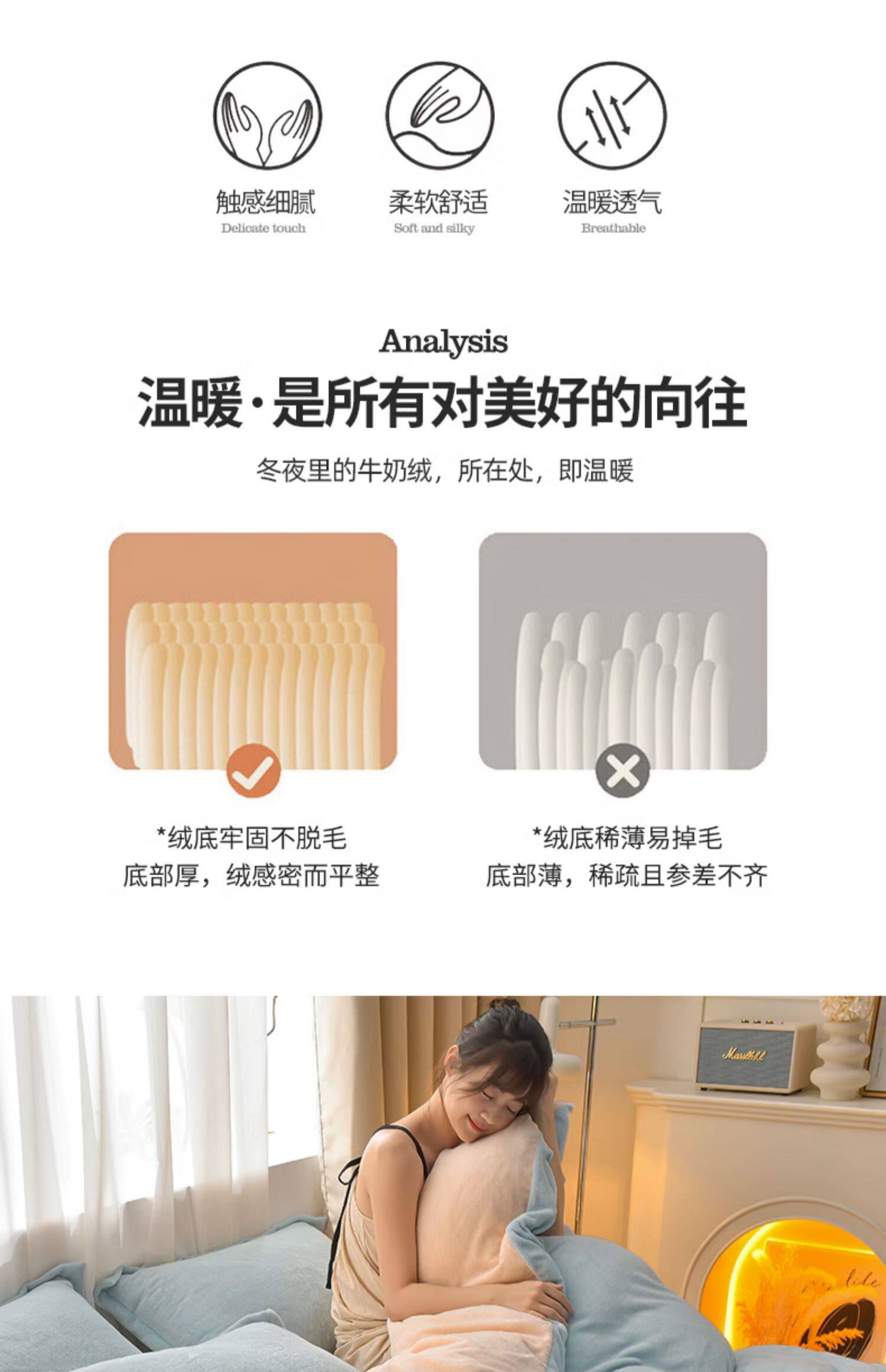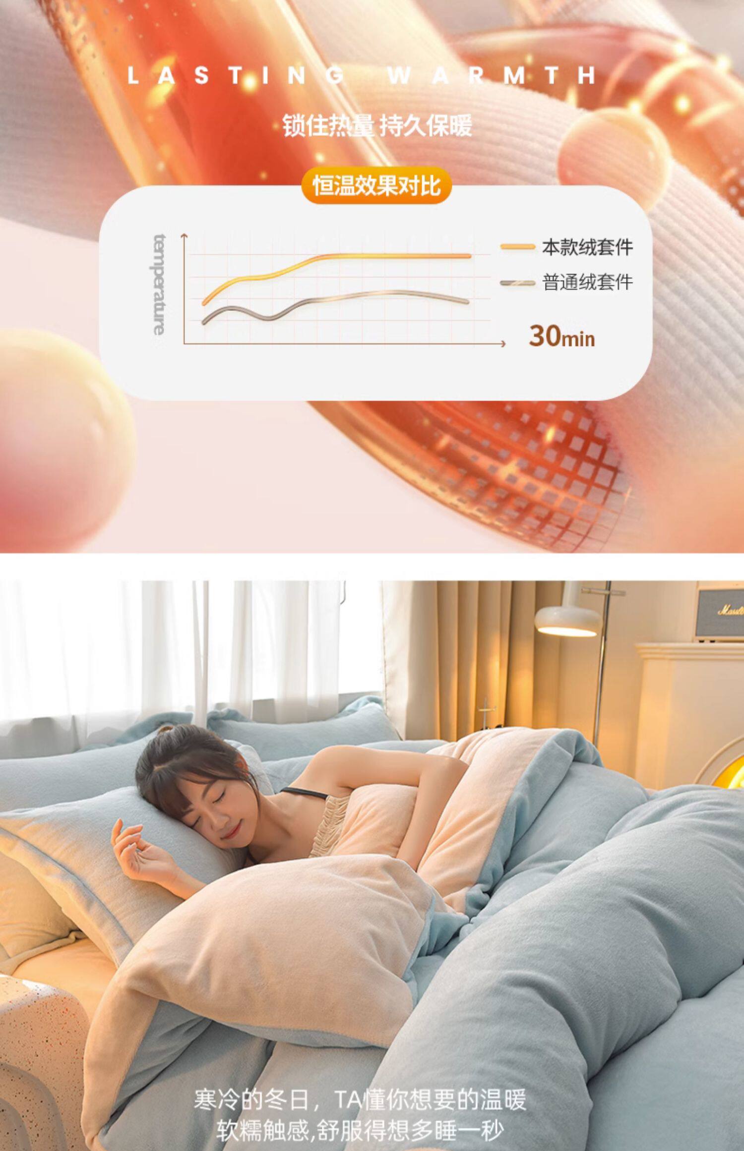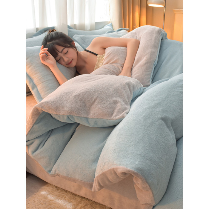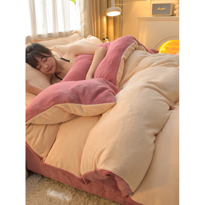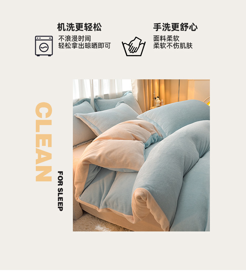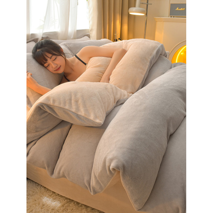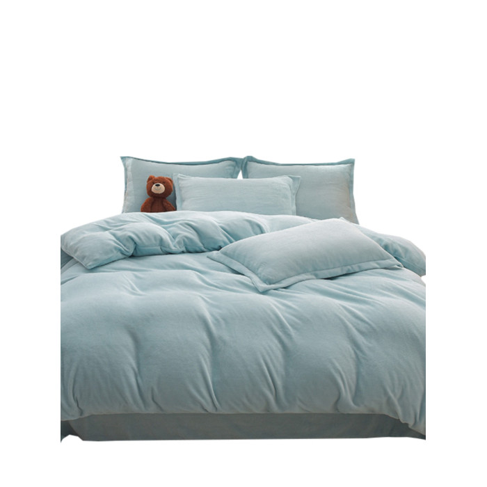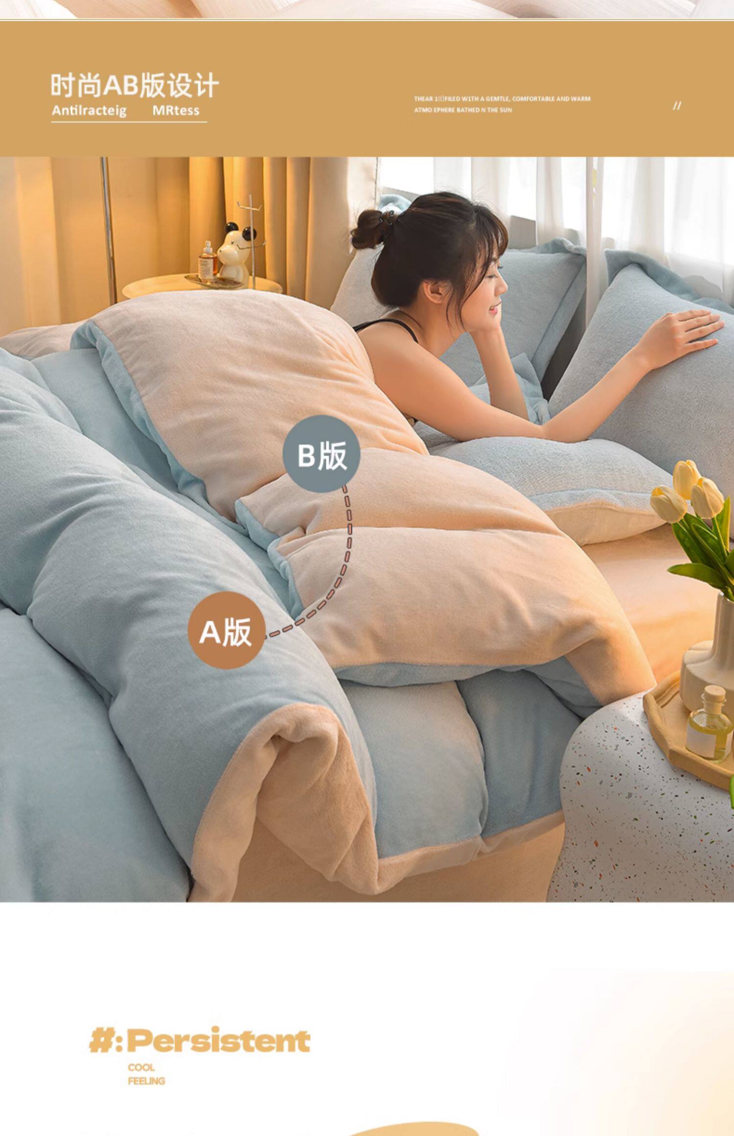 純色雙面牛奶絨冬季床上四件套加厚珊瑚絨被套法蘭絨加絨床單床包