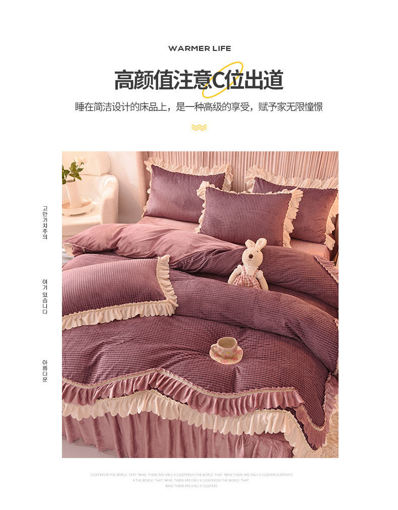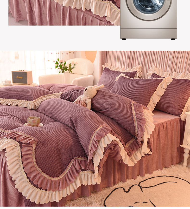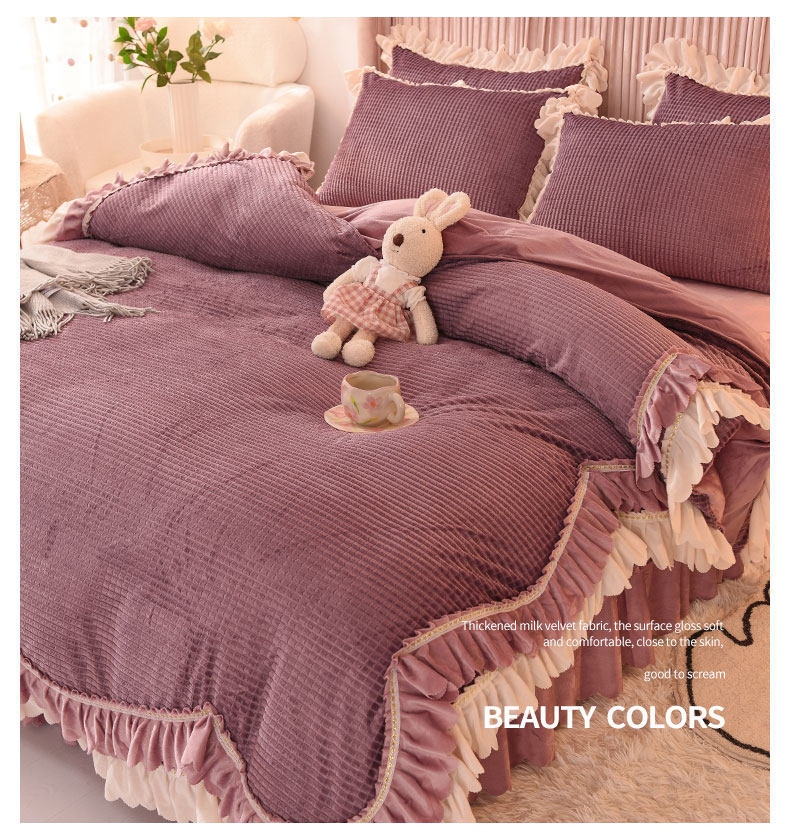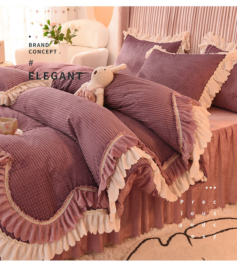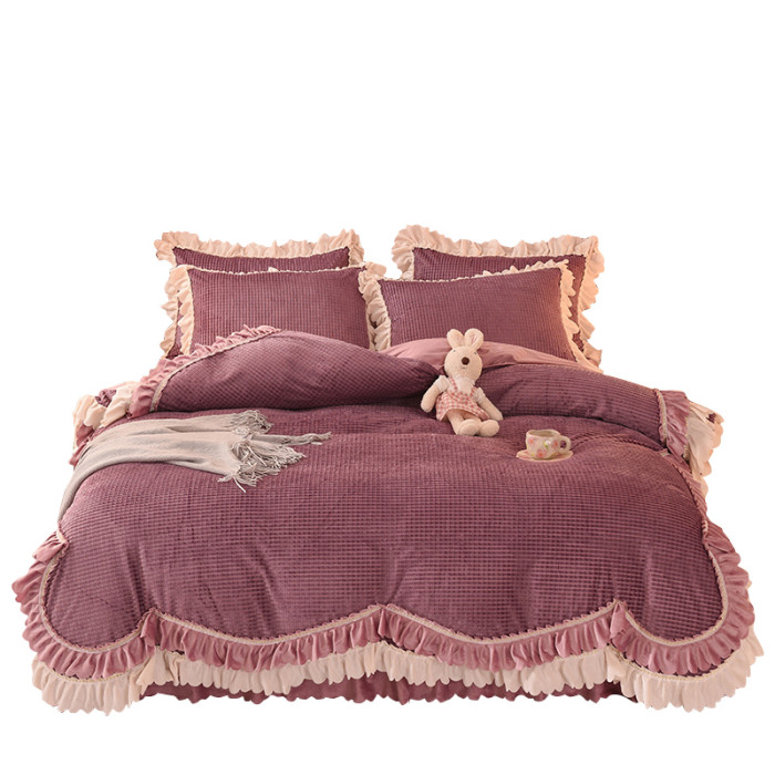 出口澳洲公主加厚牛奶絨床裙四件套雙面絨被套保暖珊瑚絨床上冬季