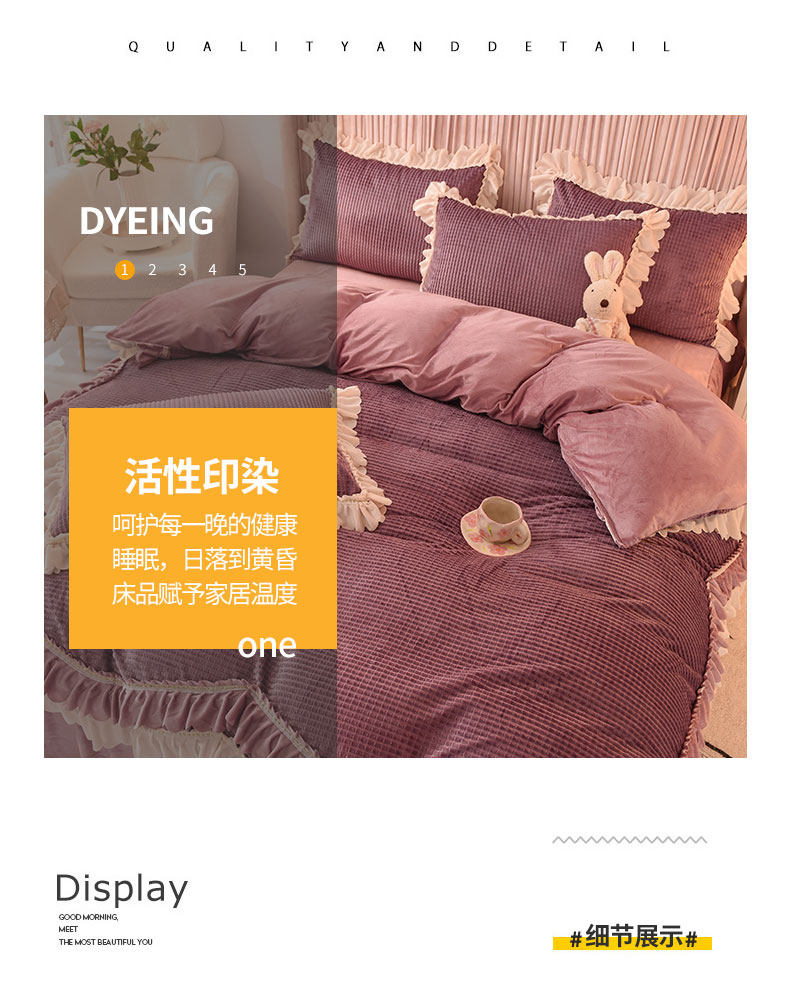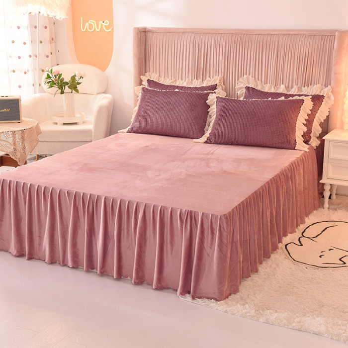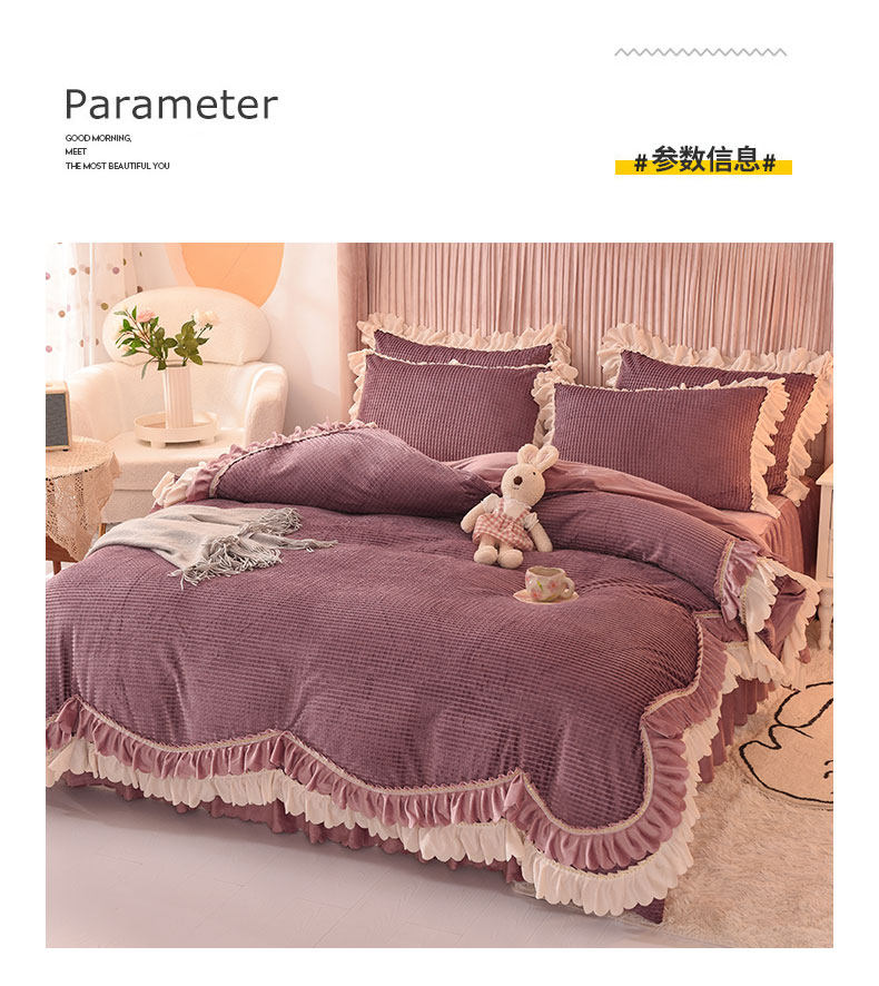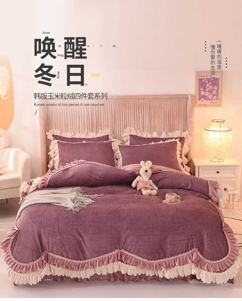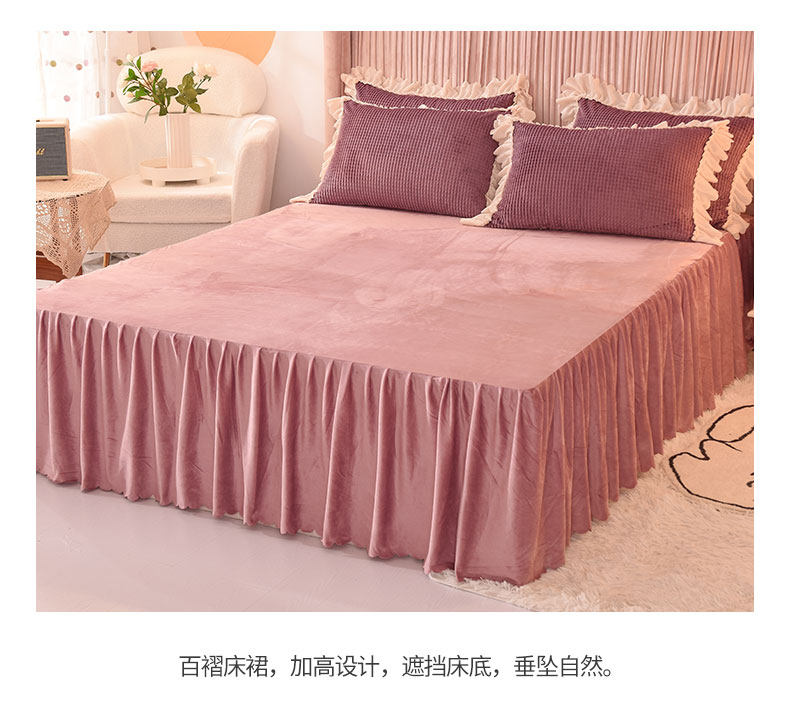 出口澳洲公主加厚牛奶絨床裙四件套雙面絨被套保暖珊瑚絨床上冬季