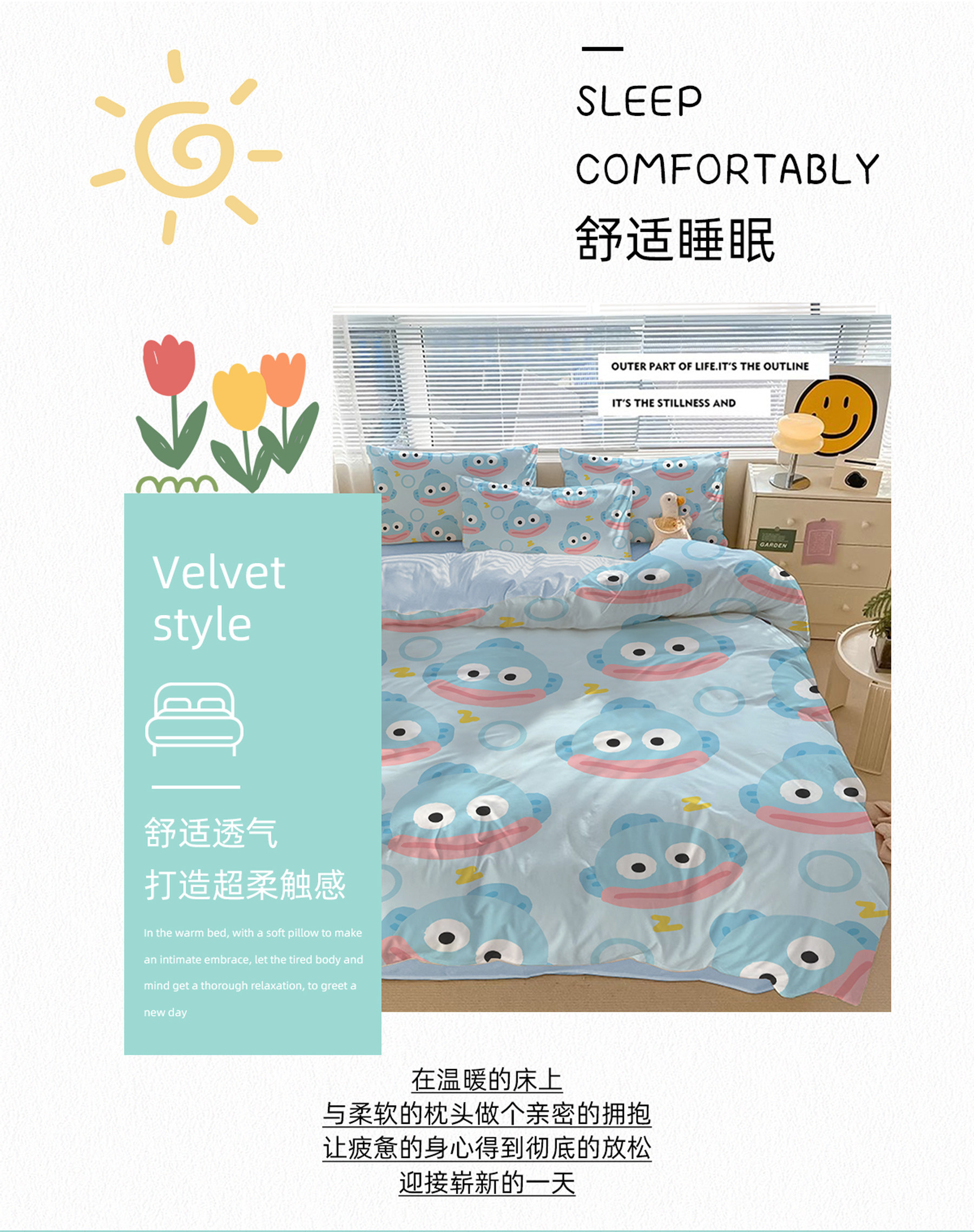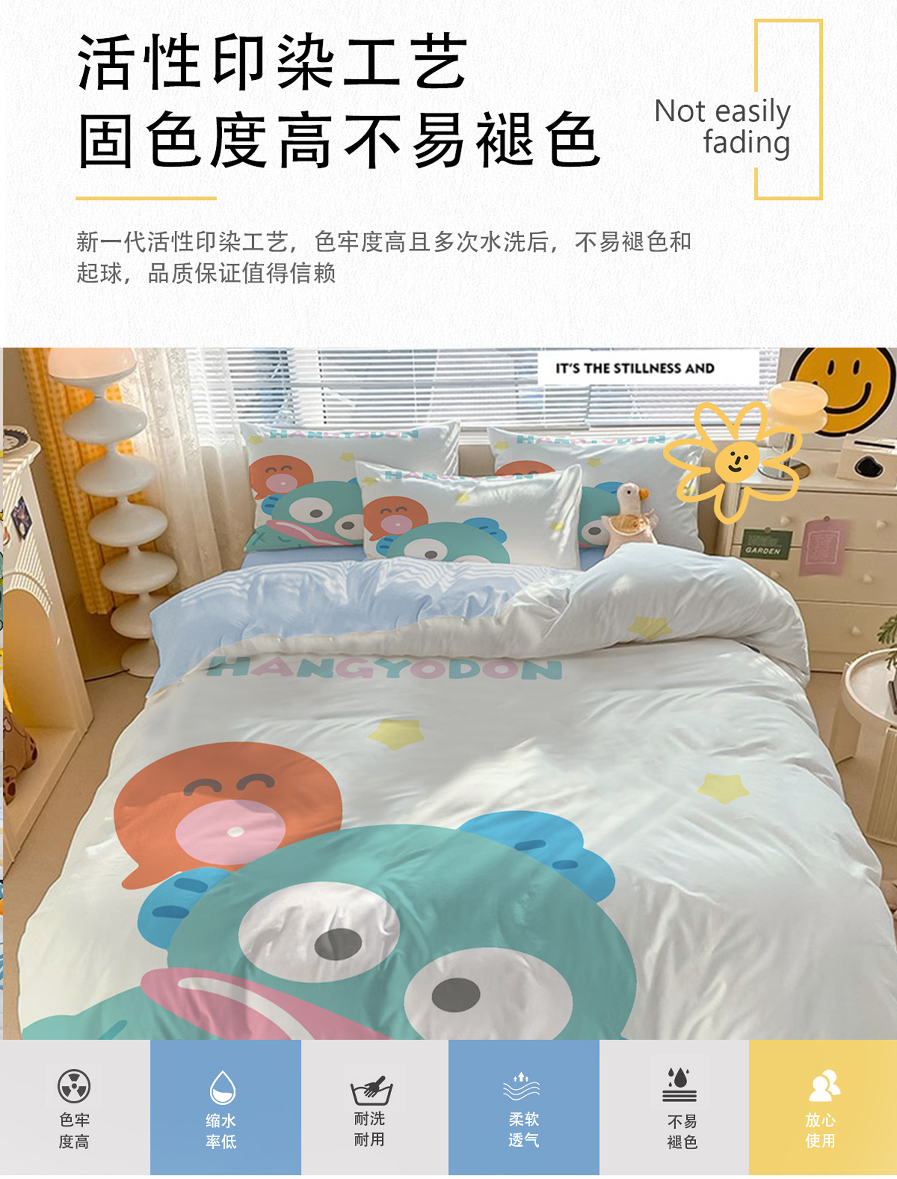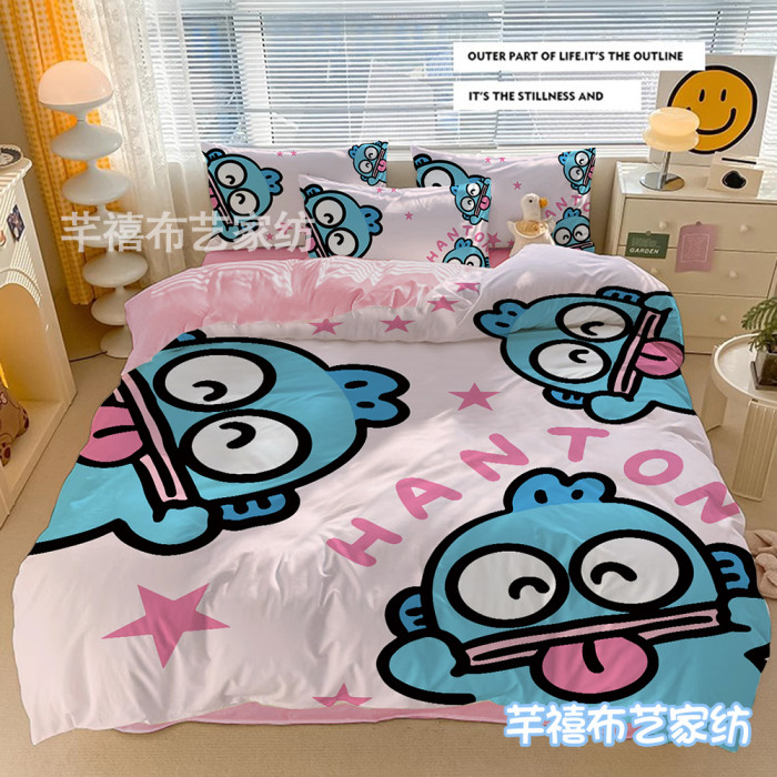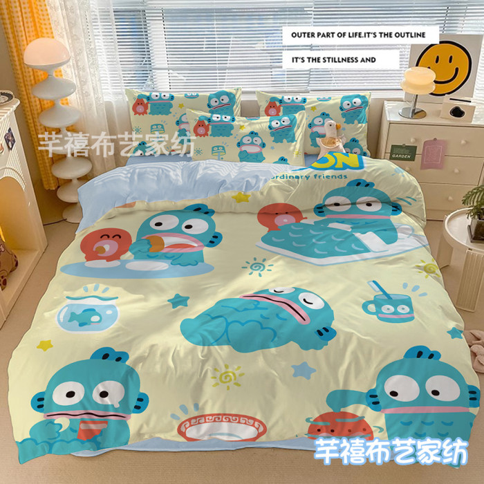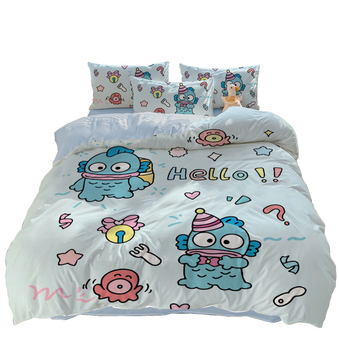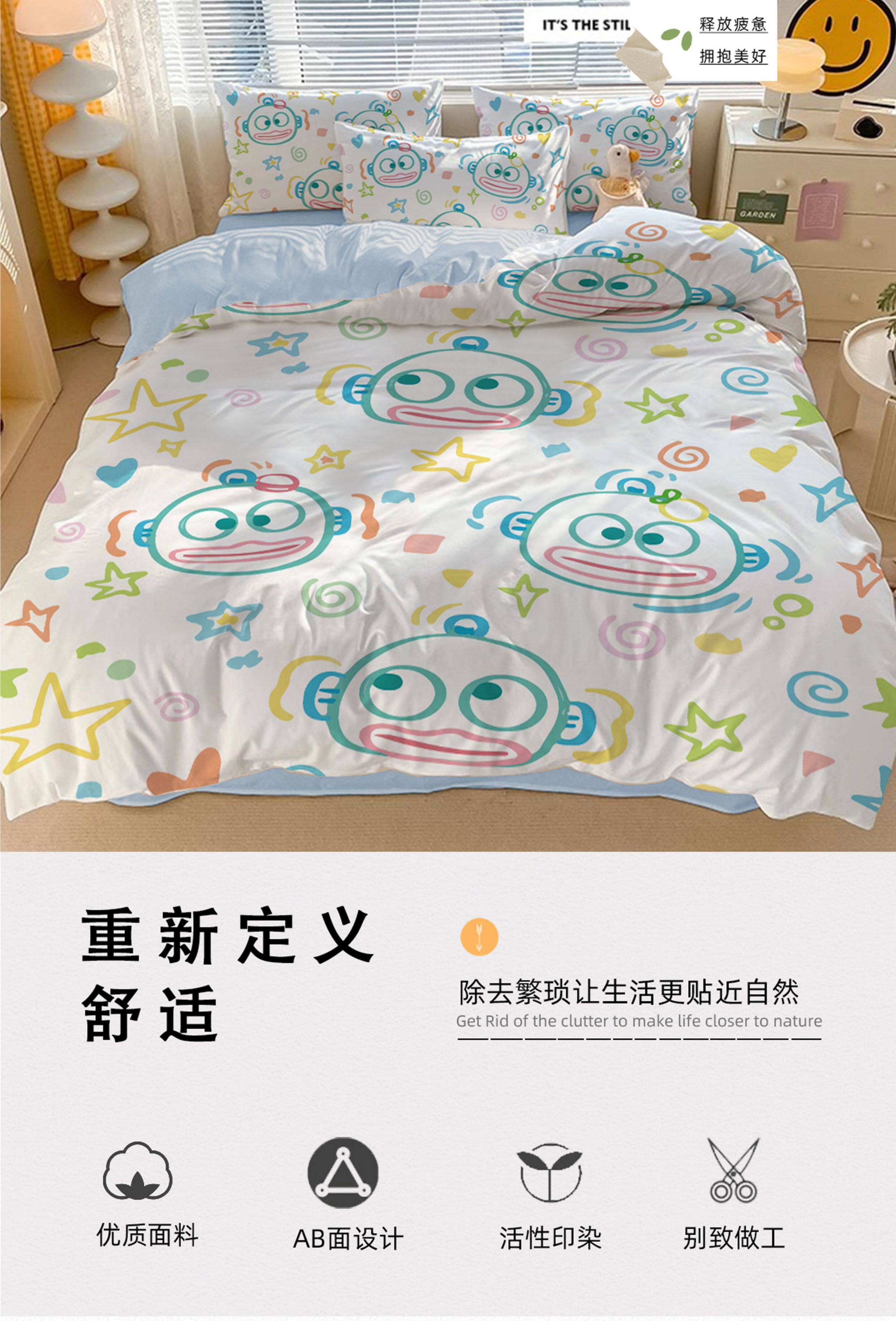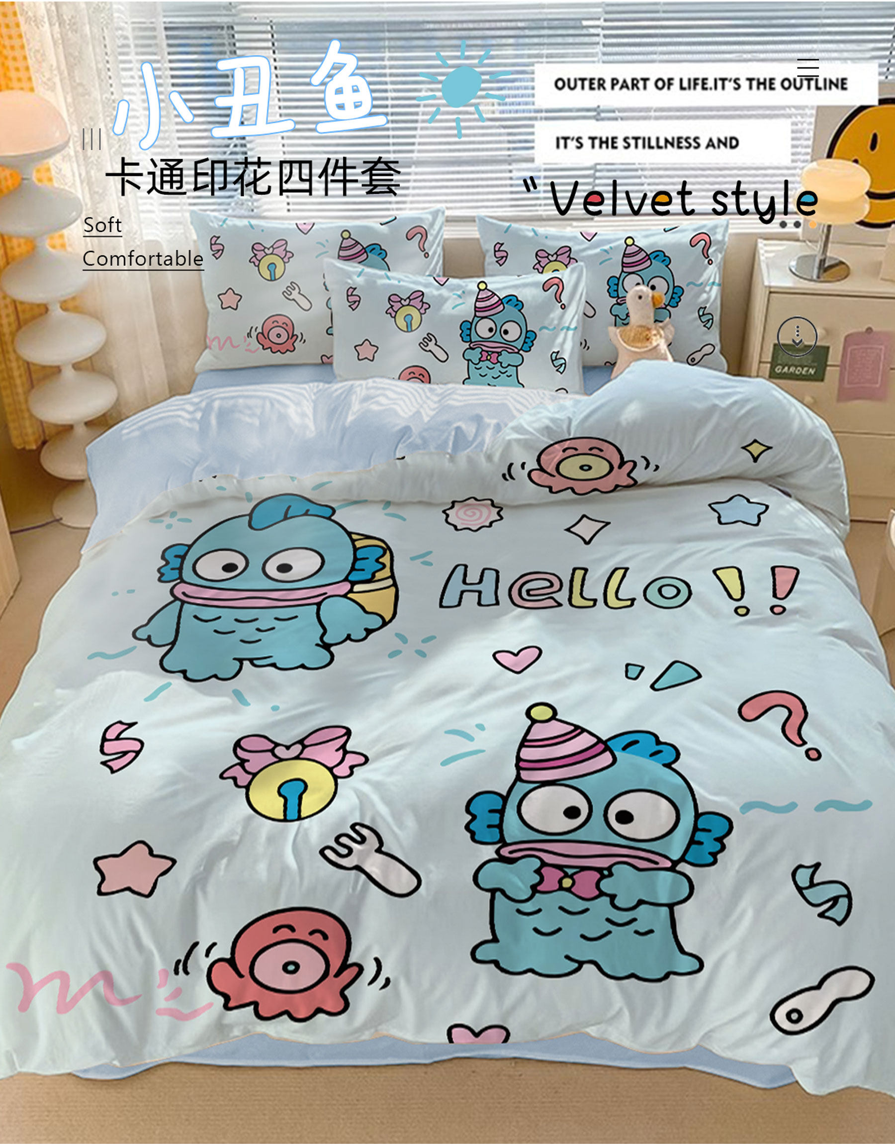 卡通小醜魚兒童可愛床包式四件套學生宿捨床上用品被套床單三件套