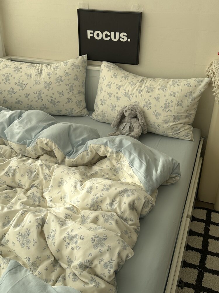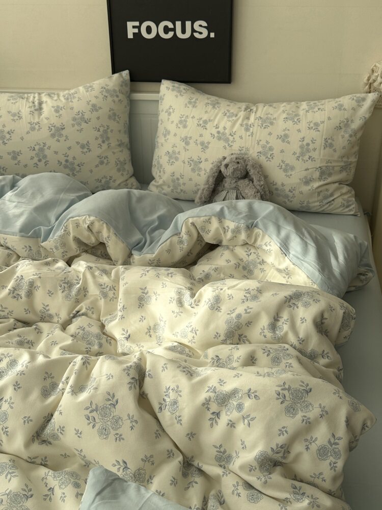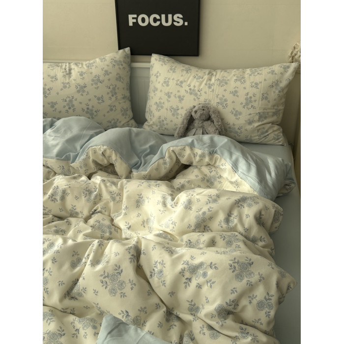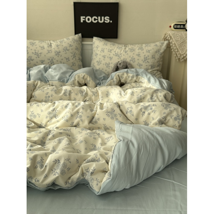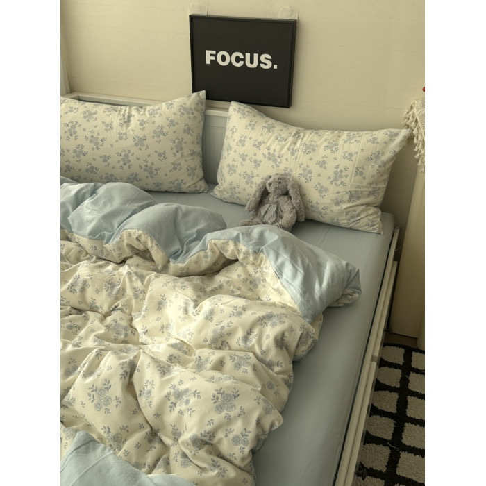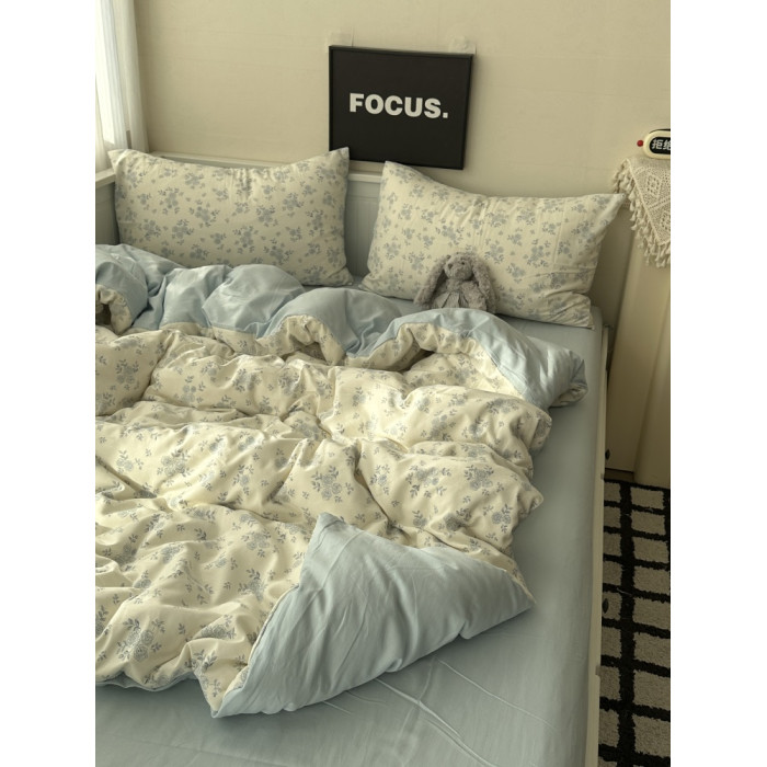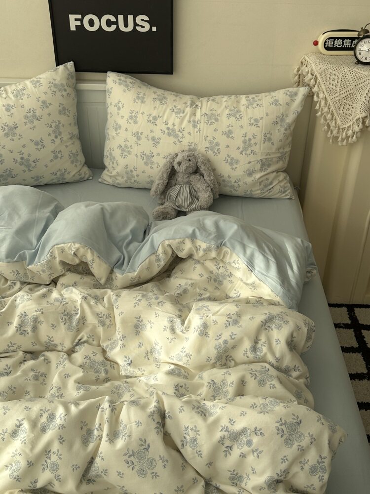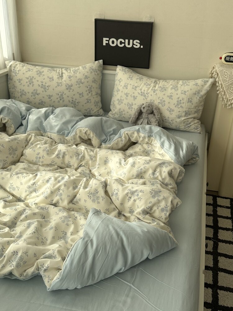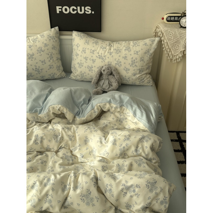 ins少女小清新藍色小碎花針織水洗棉四件套床上用品床單三件套1.8