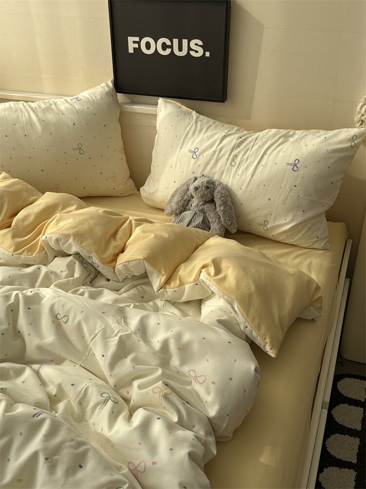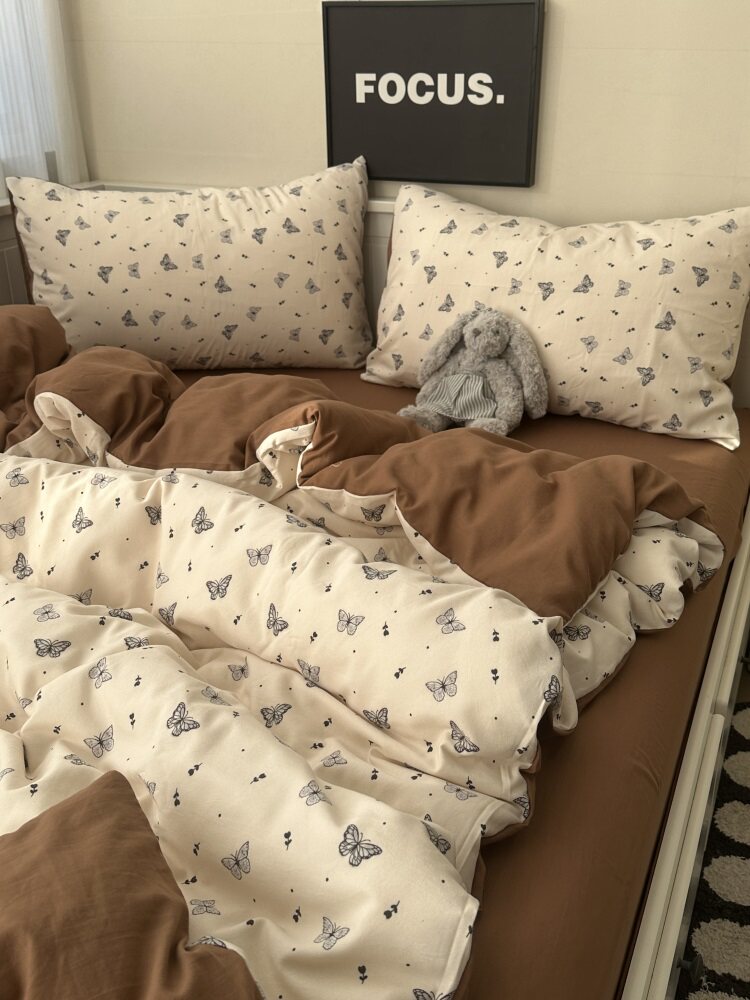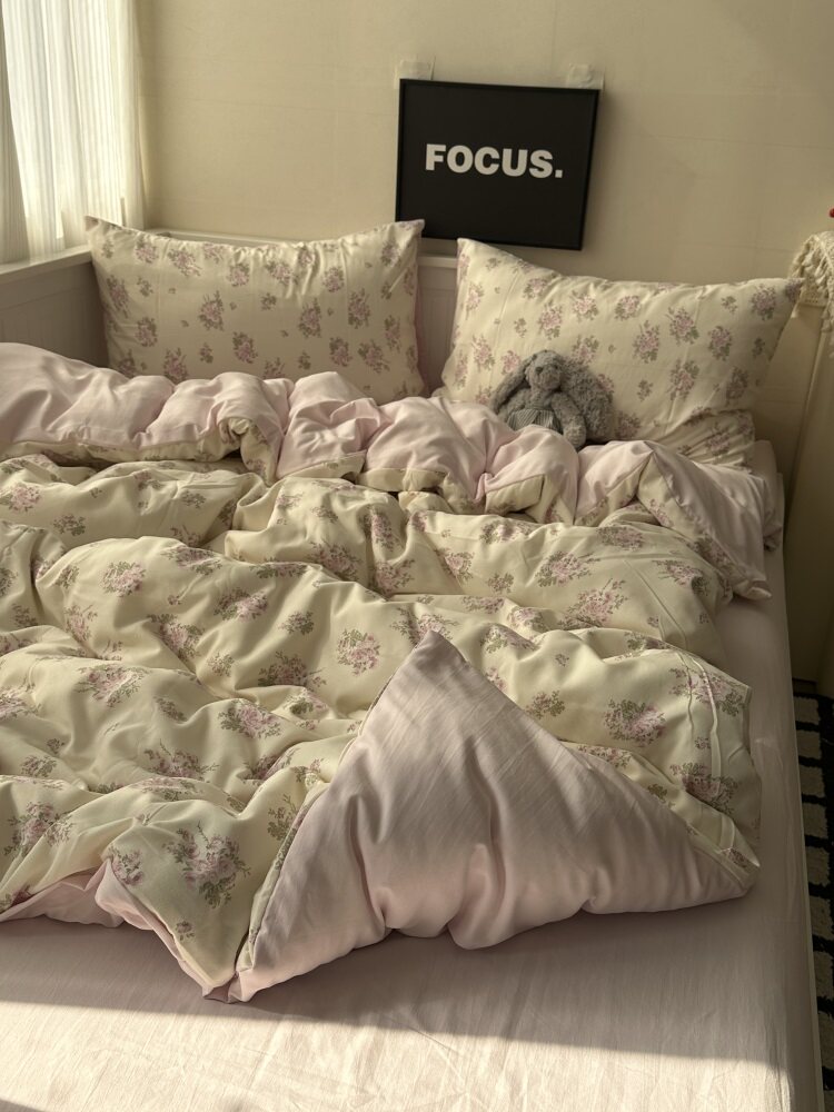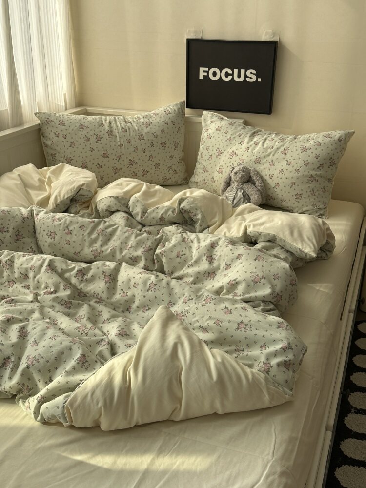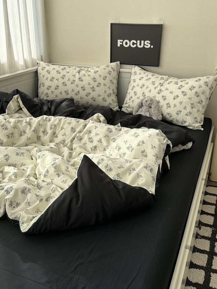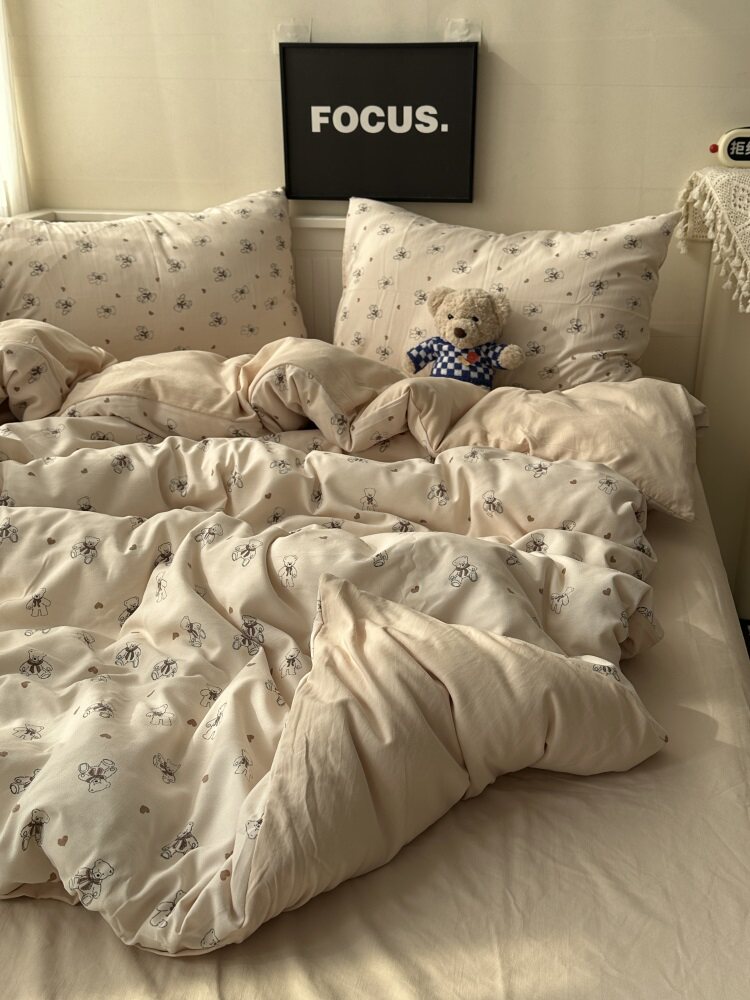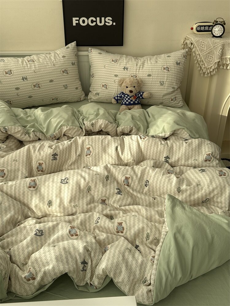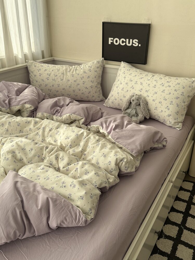 ins少女小清新藍色小碎花針織水洗棉四件套床上用品床單三件套1.8
