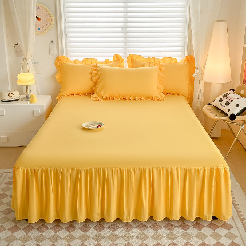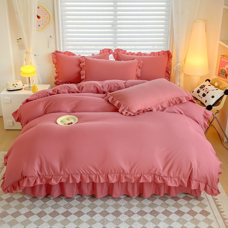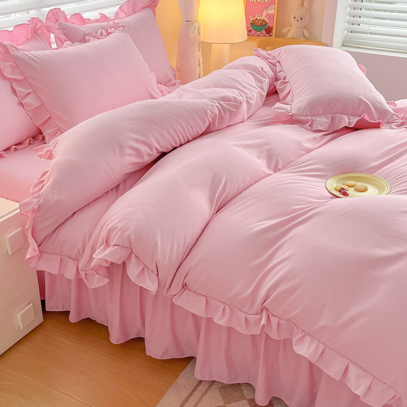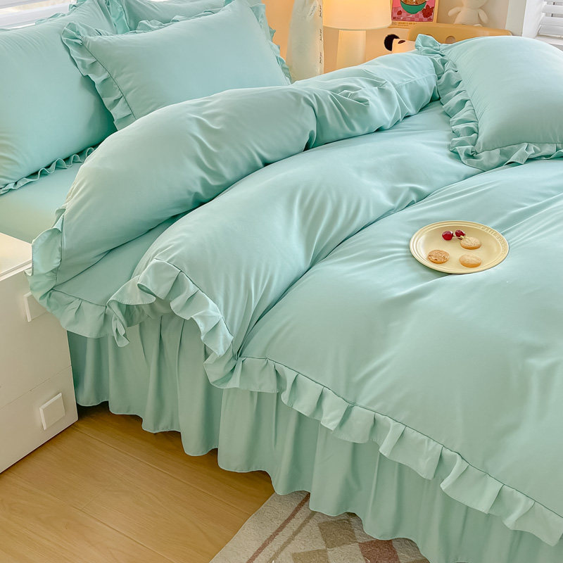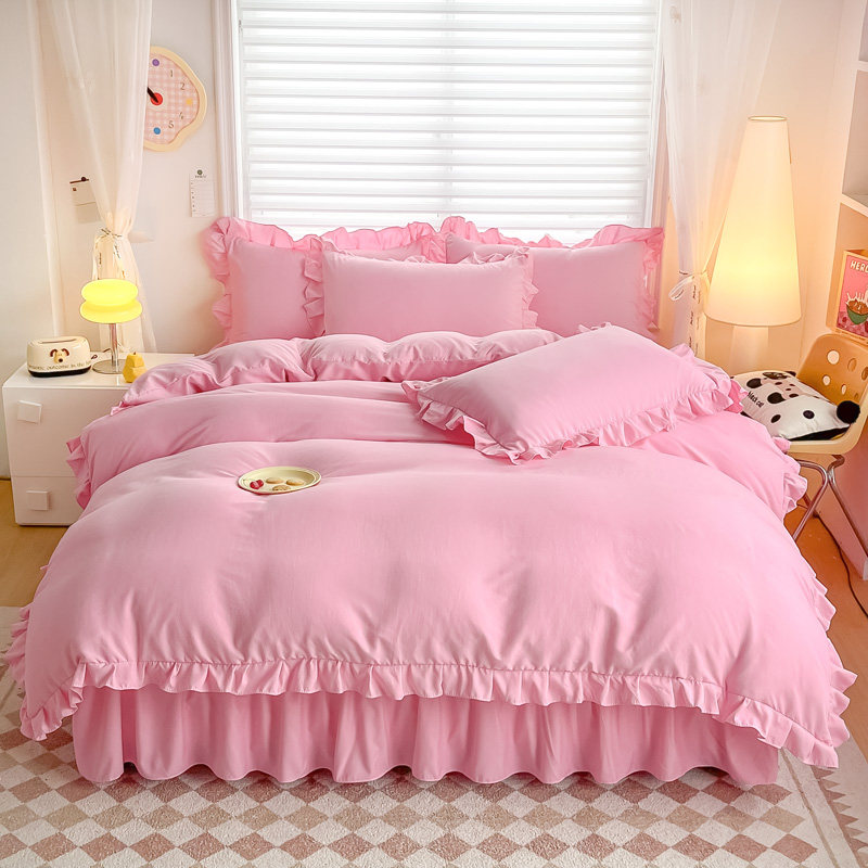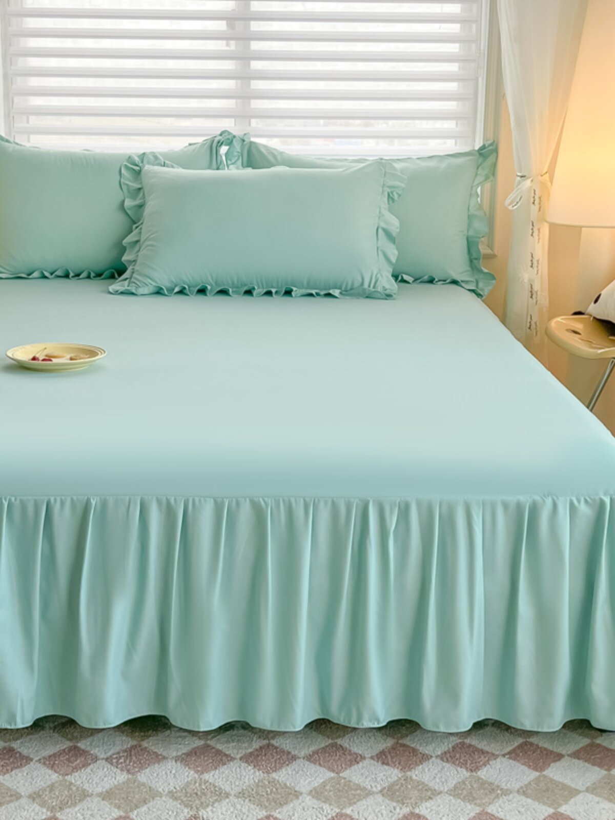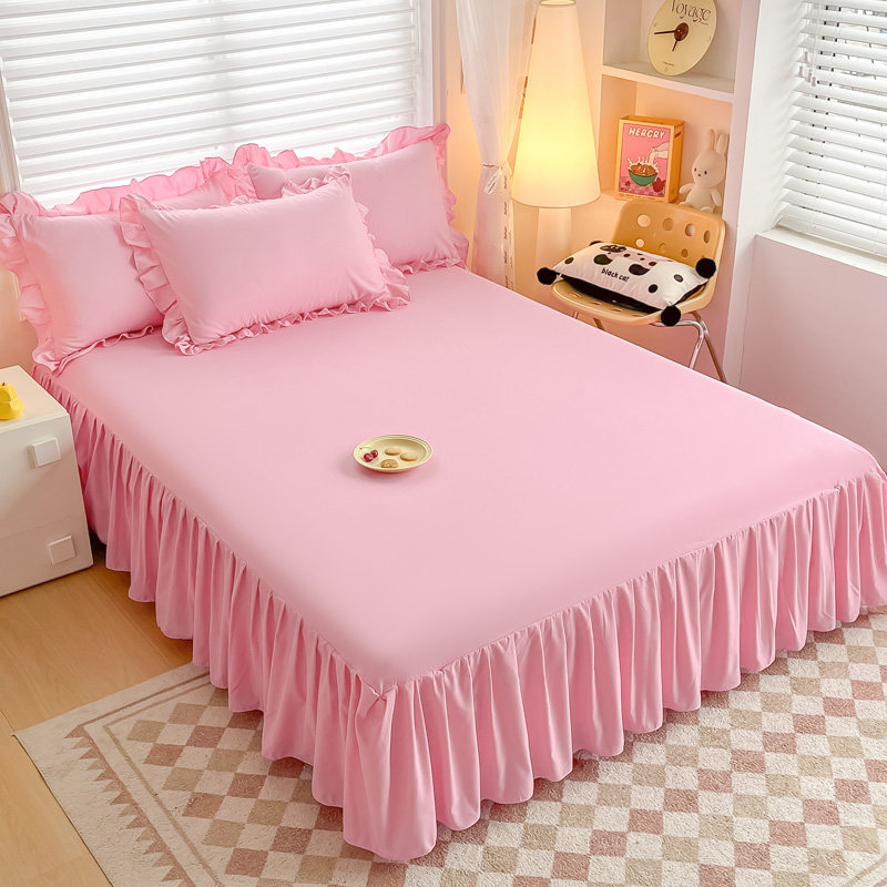 %100純色學生三件套四件套親膚透氣韓版荷葉花邊床裙款床單款