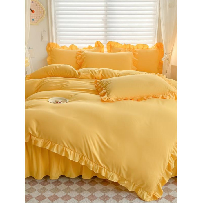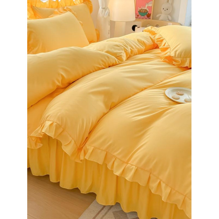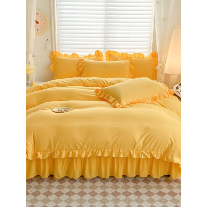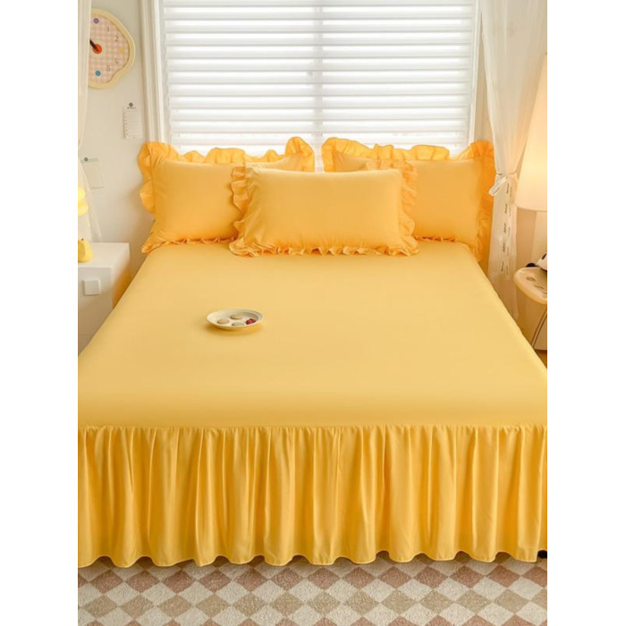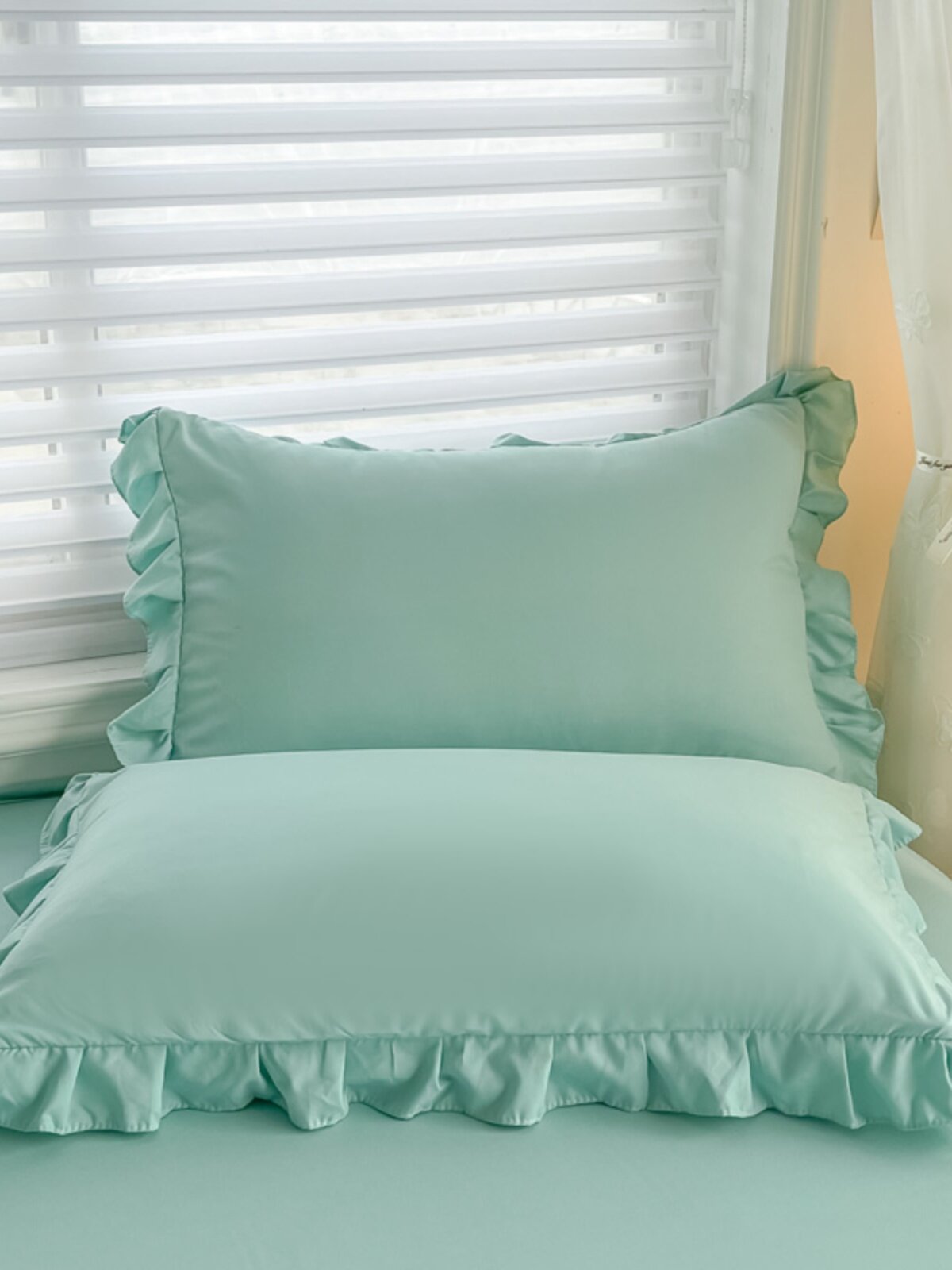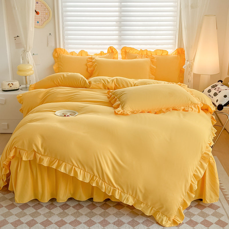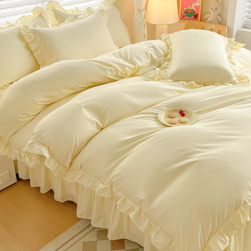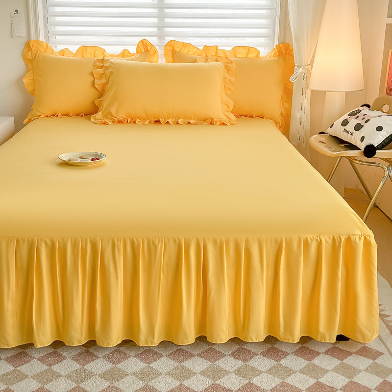 %100純色學生三件套四件套親膚透氣韓版荷葉花邊床裙款床單款
