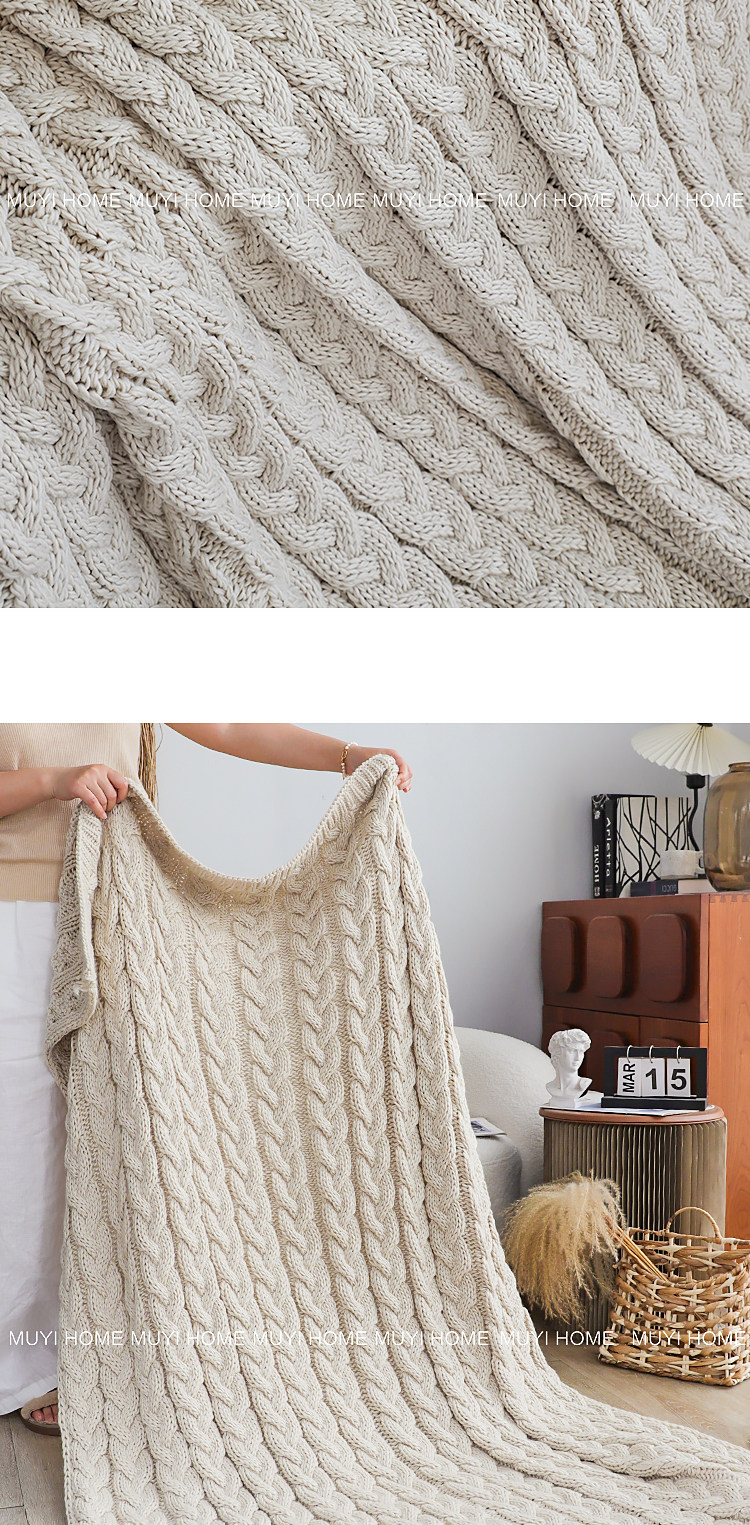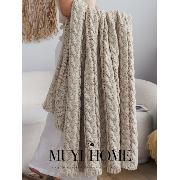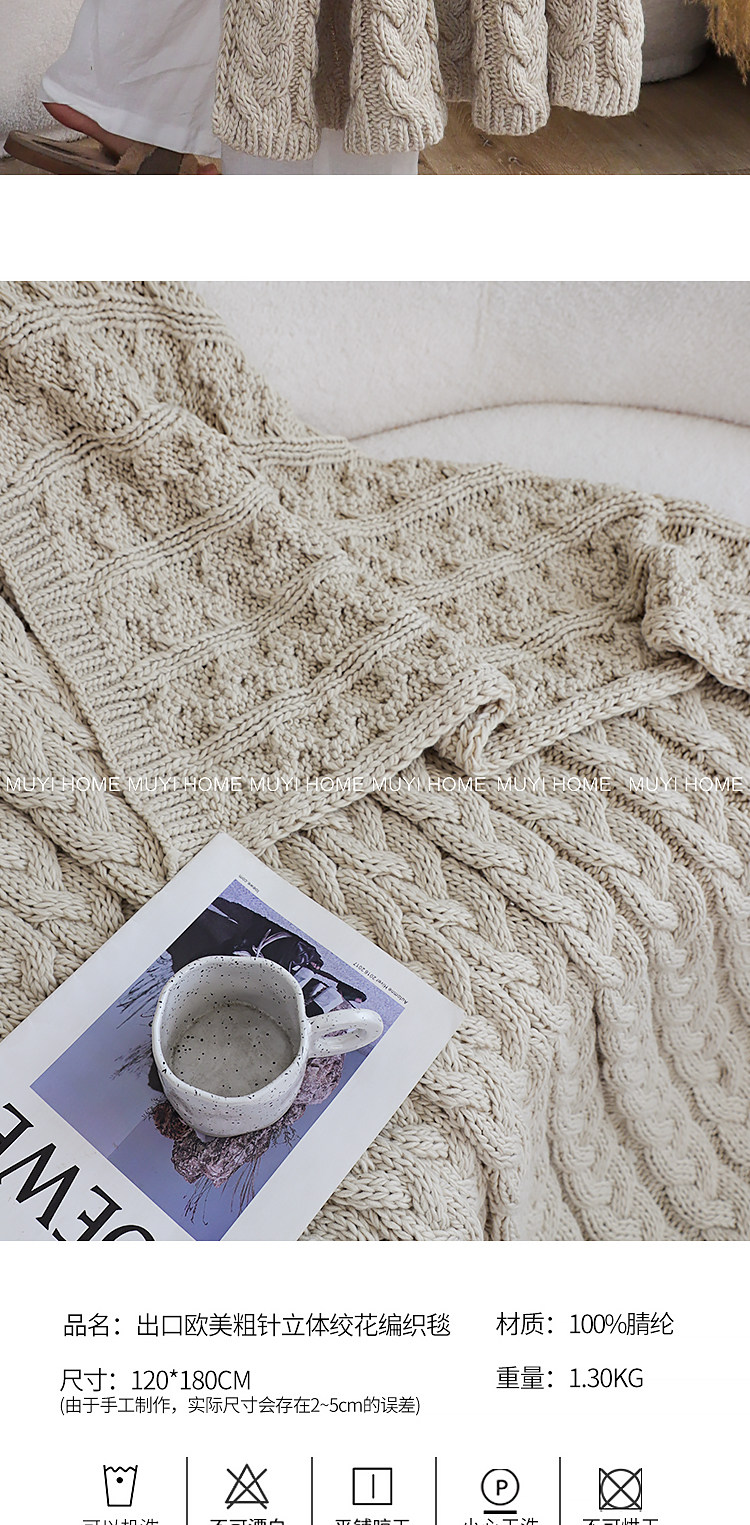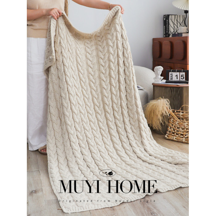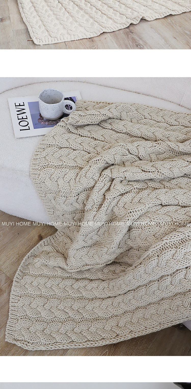 出口歐美奶油色粗針立體絞花編織毯棒針休閒蓋毯沙發毯床尾毯搭毯