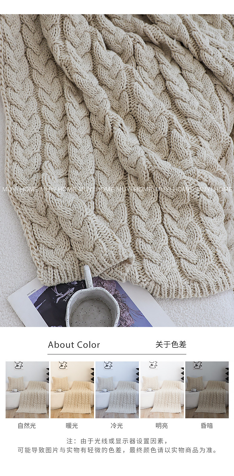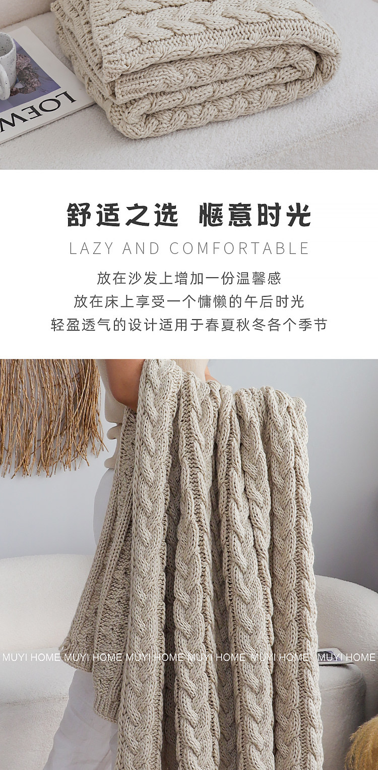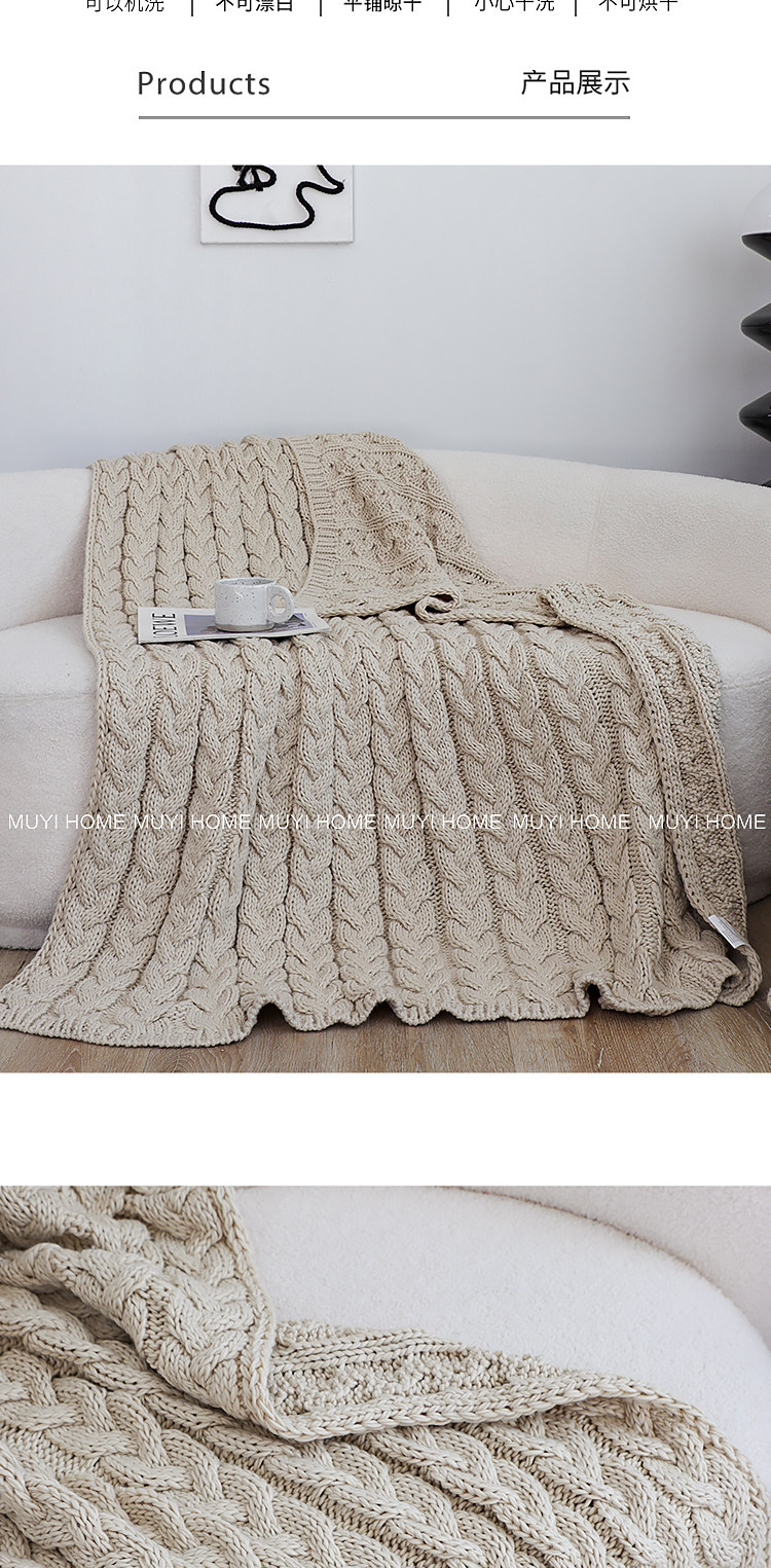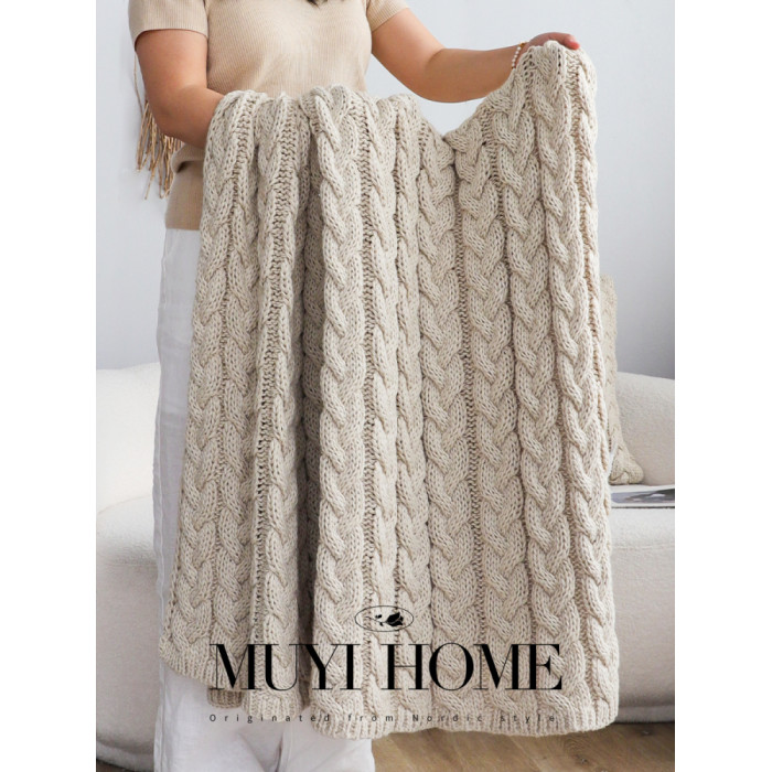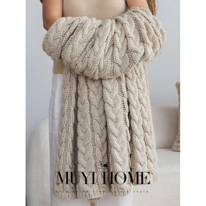 出口歐美奶油色粗針立體絞花編織毯棒針休閒蓋毯沙發毯床尾毯搭毯