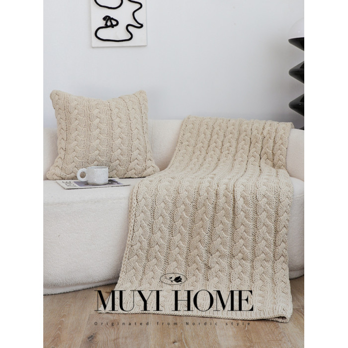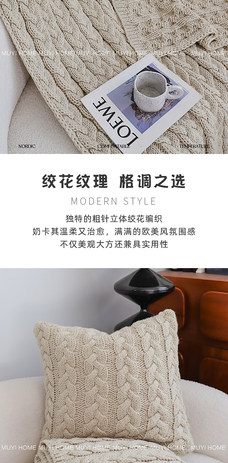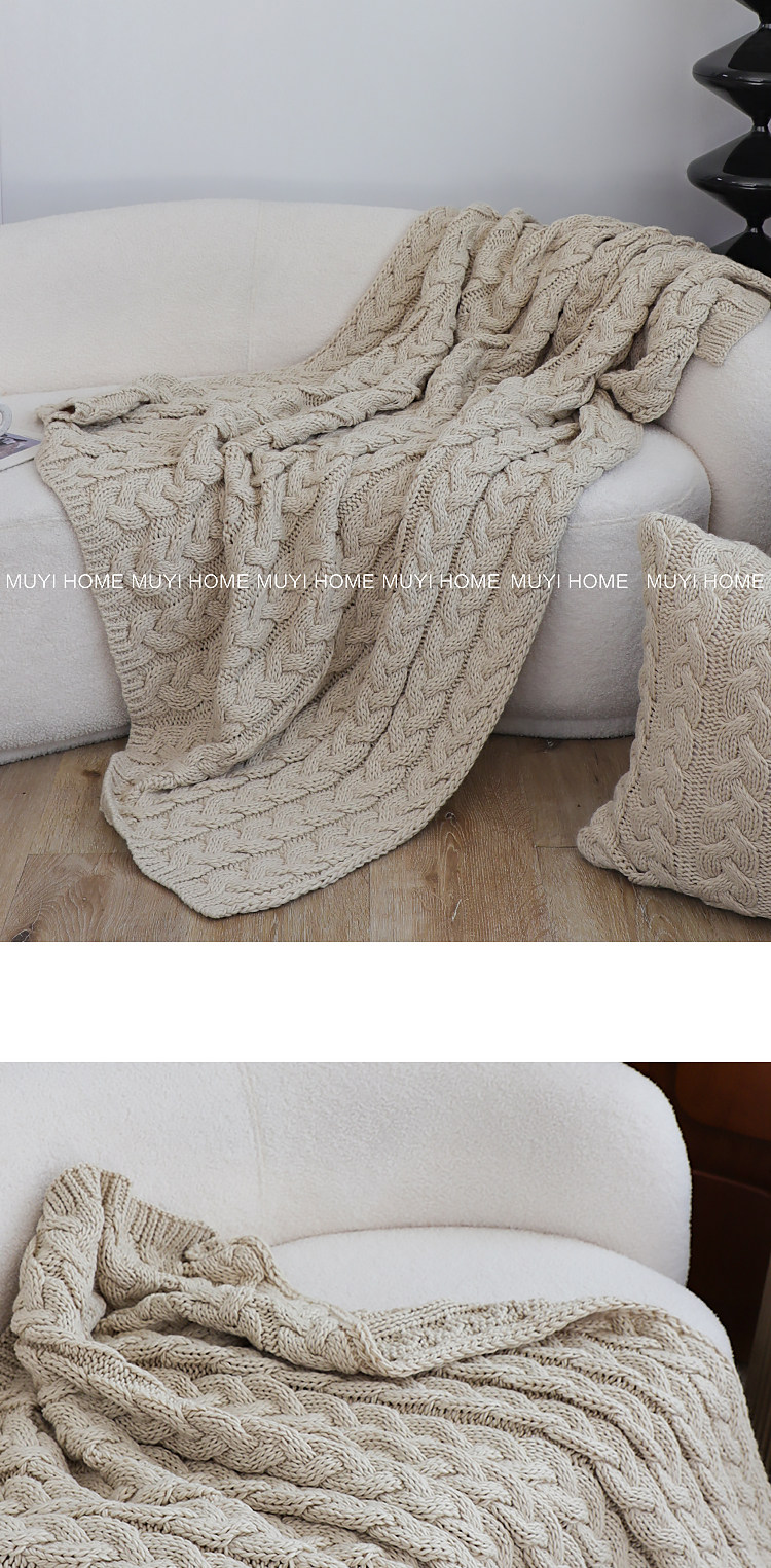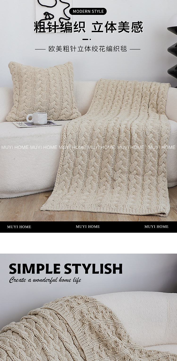 出口歐美奶油色粗針立體絞花編織毯棒針休閒蓋毯沙發毯床尾毯搭毯