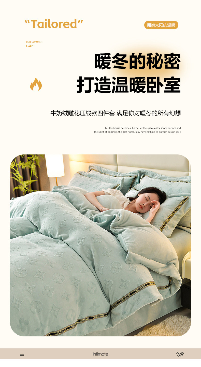 冬季澳洲輕奢高級感牛奶絨四件套被罩雙面絨加厚保暖珊瑚絨床單式