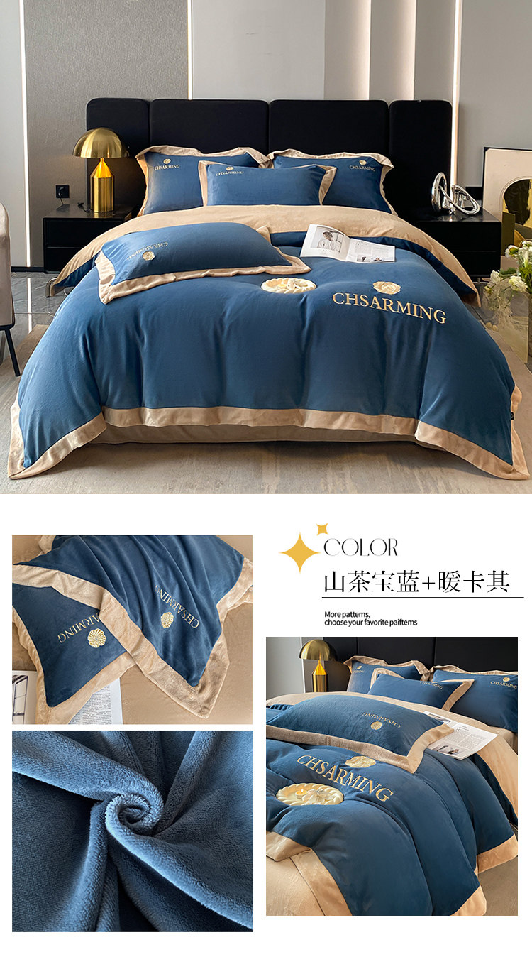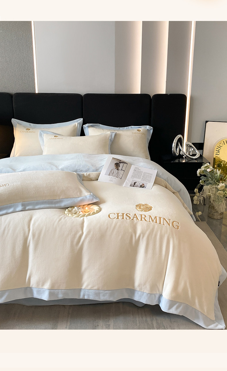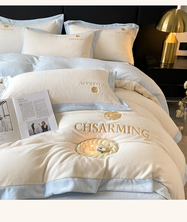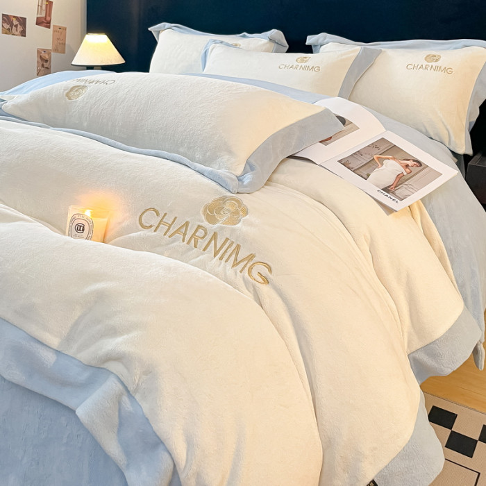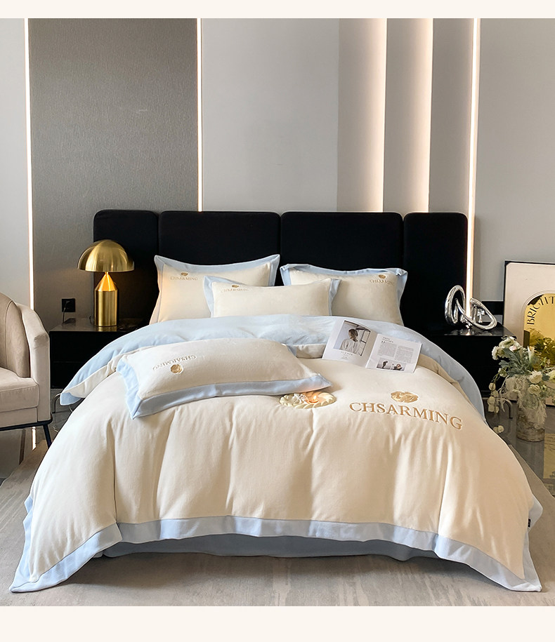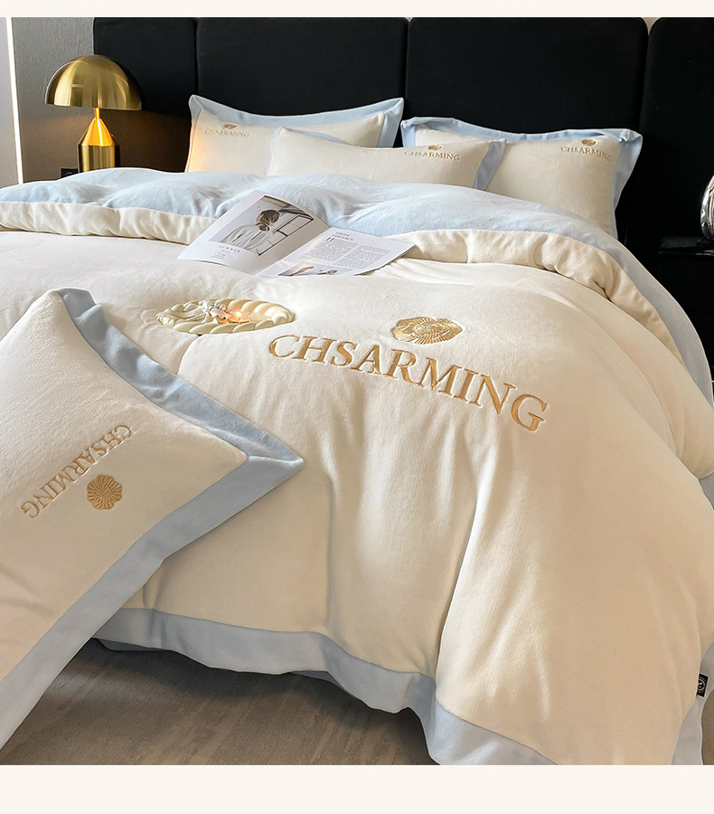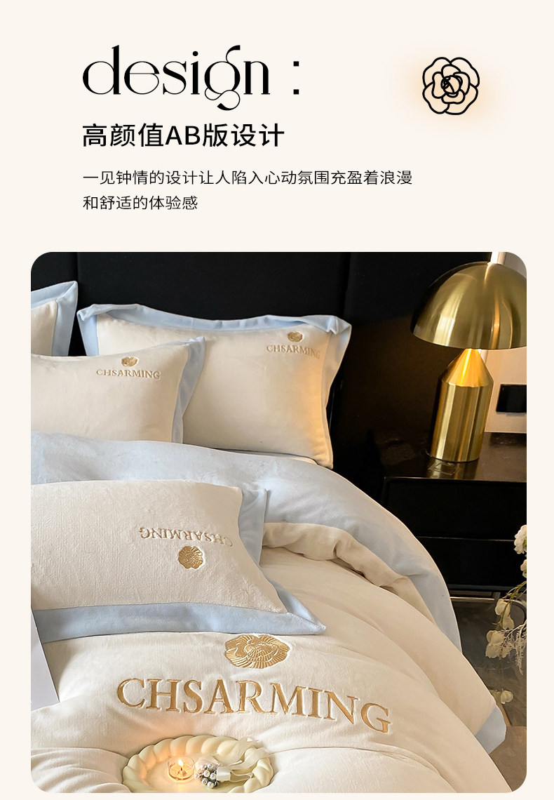 A類輕奢刺綉牛奶絨被套床上四件套冬季雙面絨被罩珊瑚絨床單床包