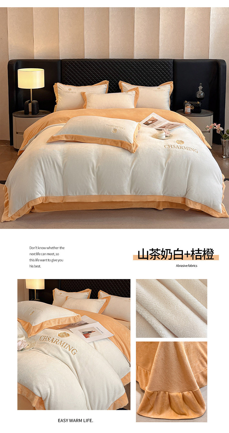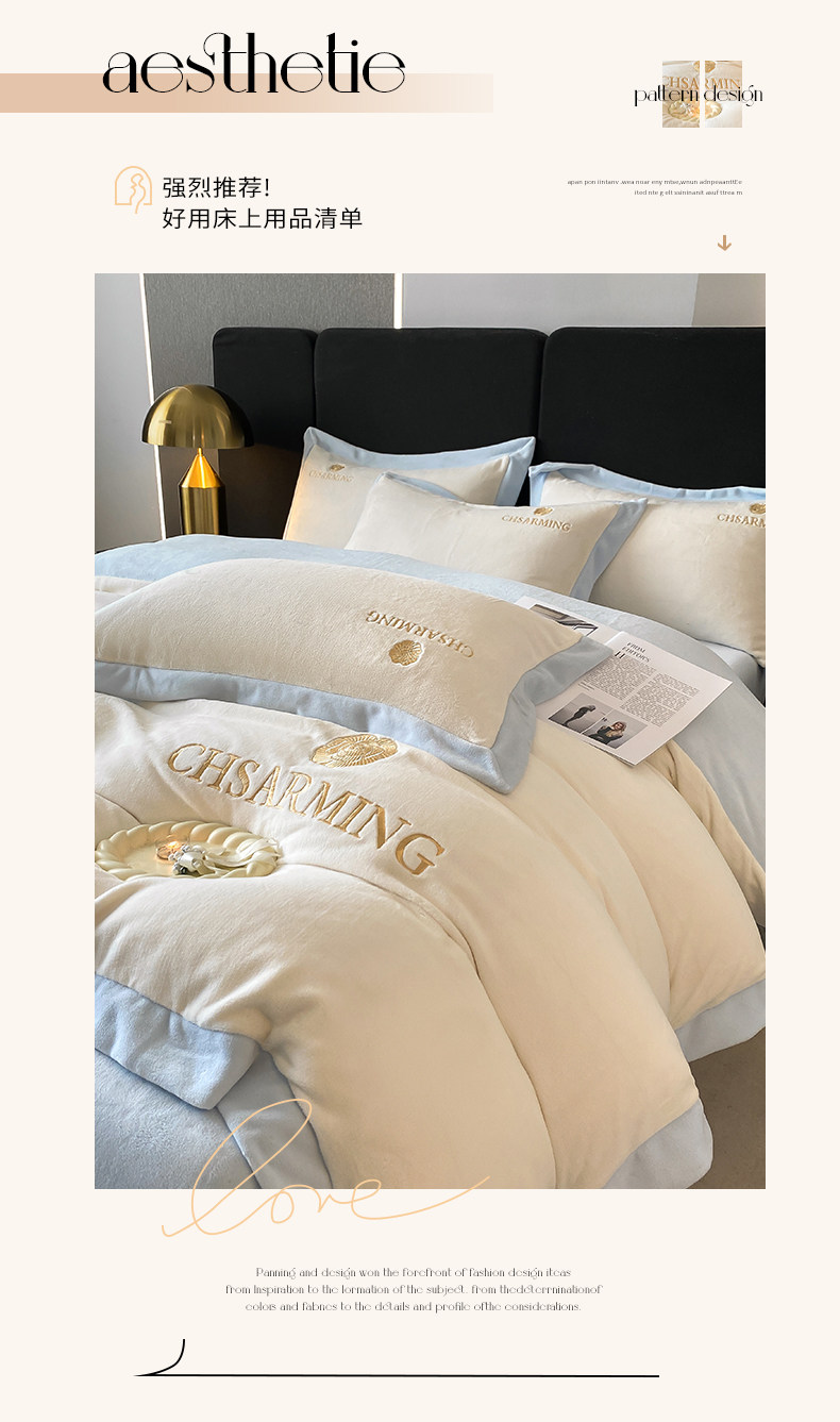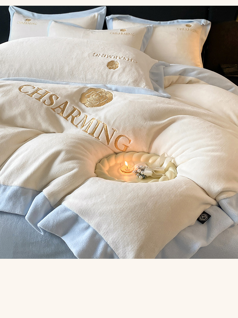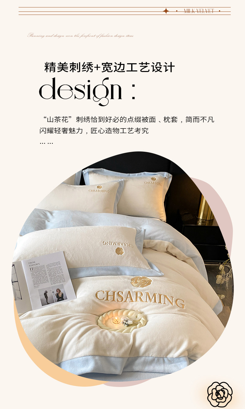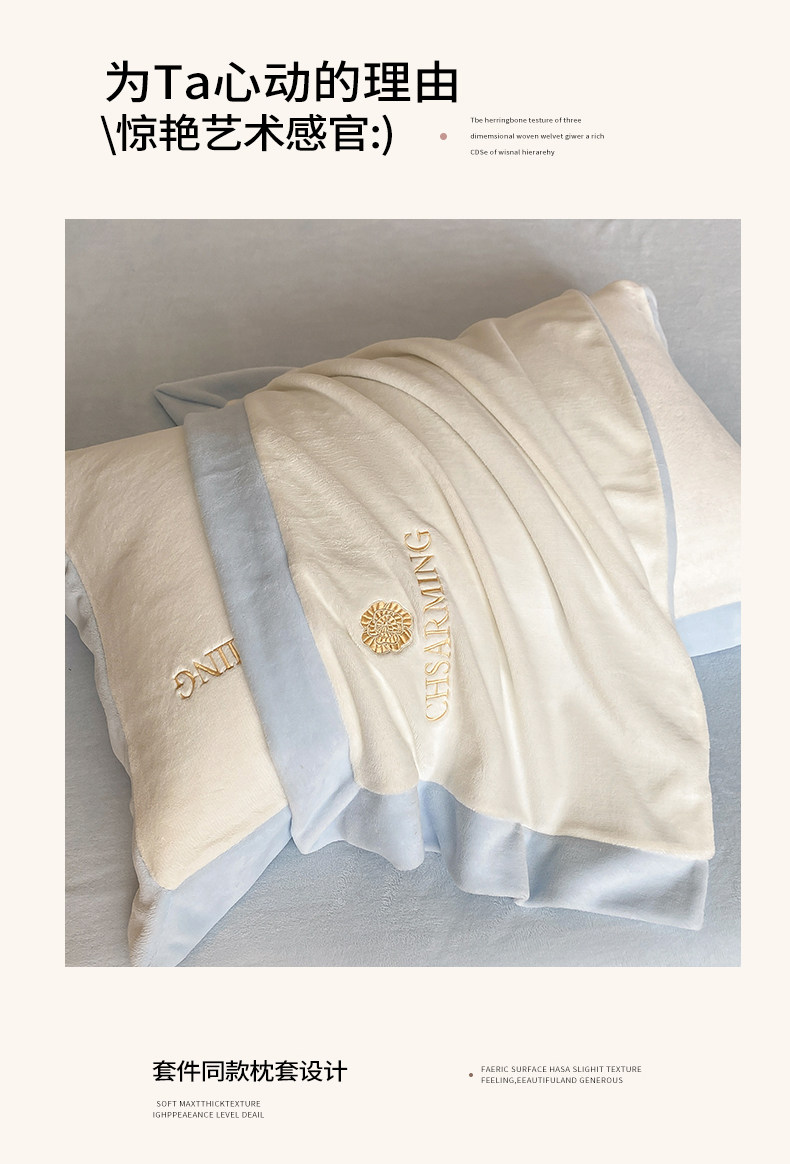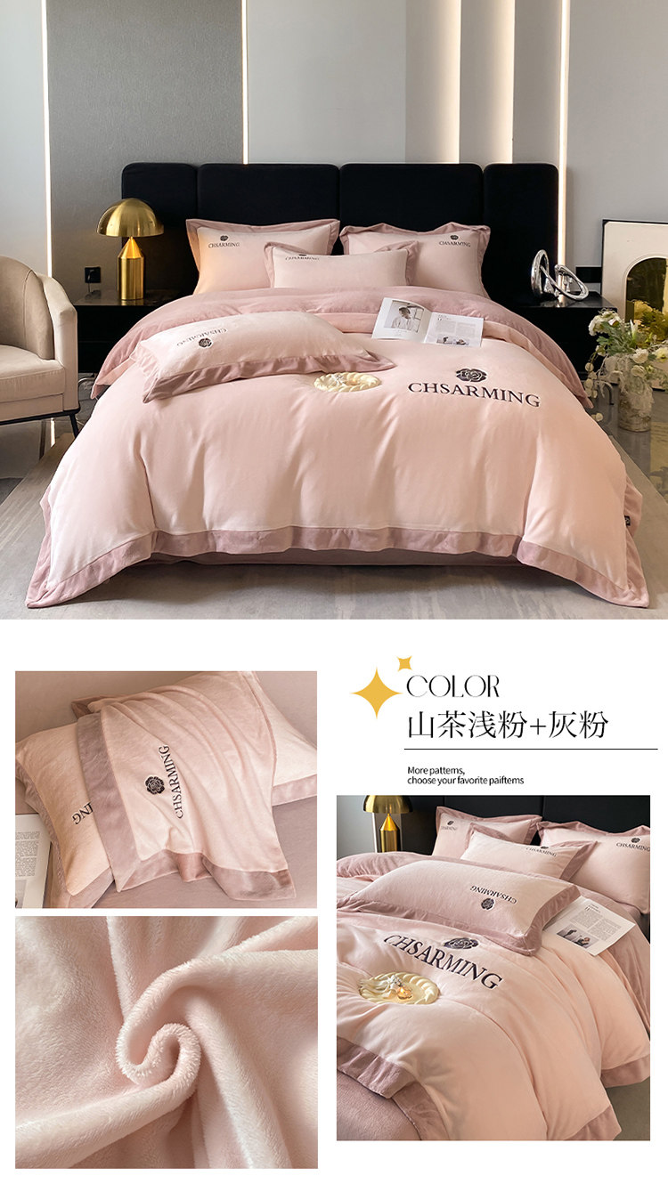A類輕奢刺綉牛奶絨被套床上四件套冬季雙面絨被罩珊瑚絨床單床包