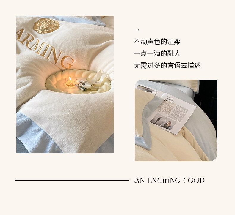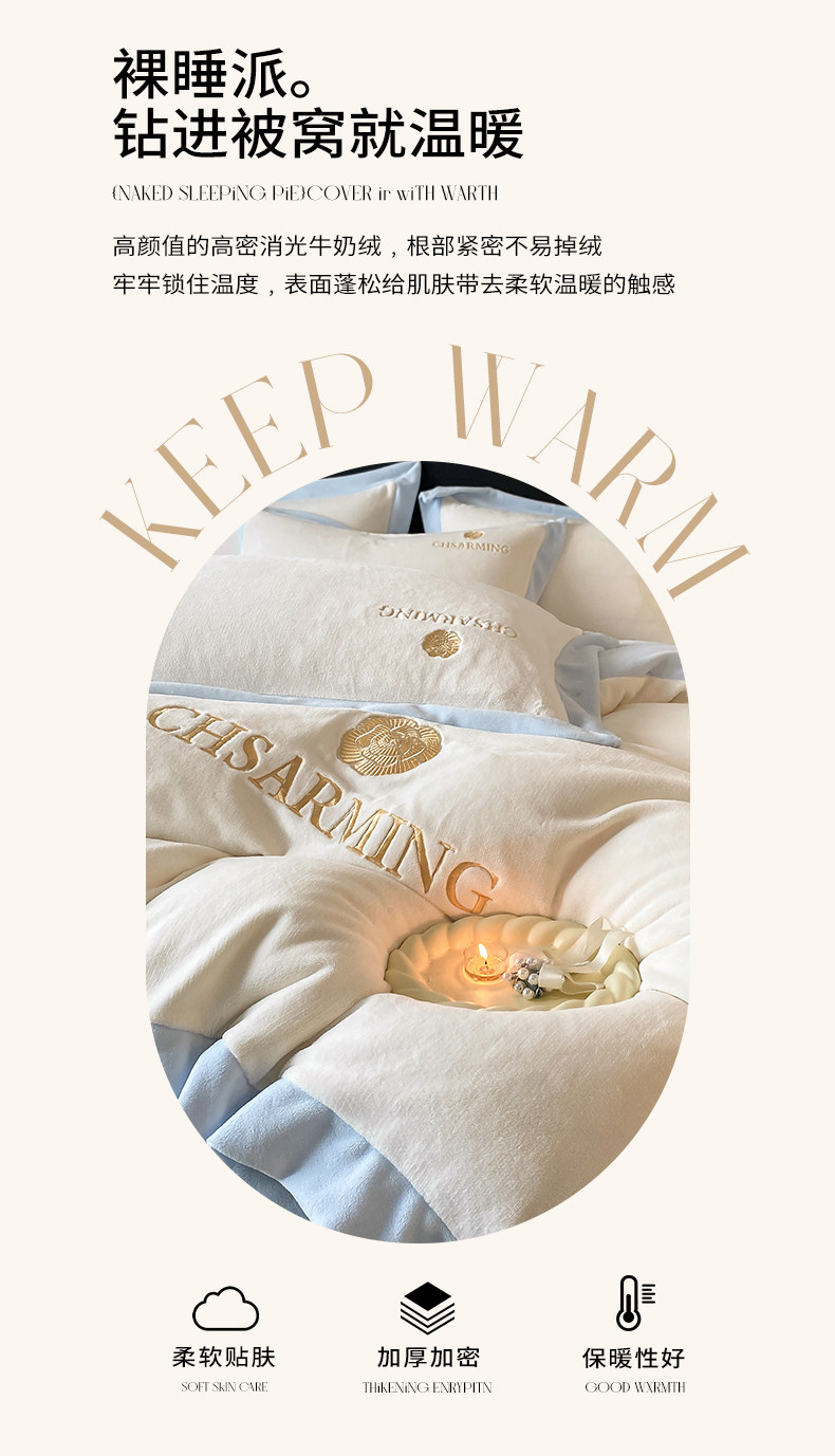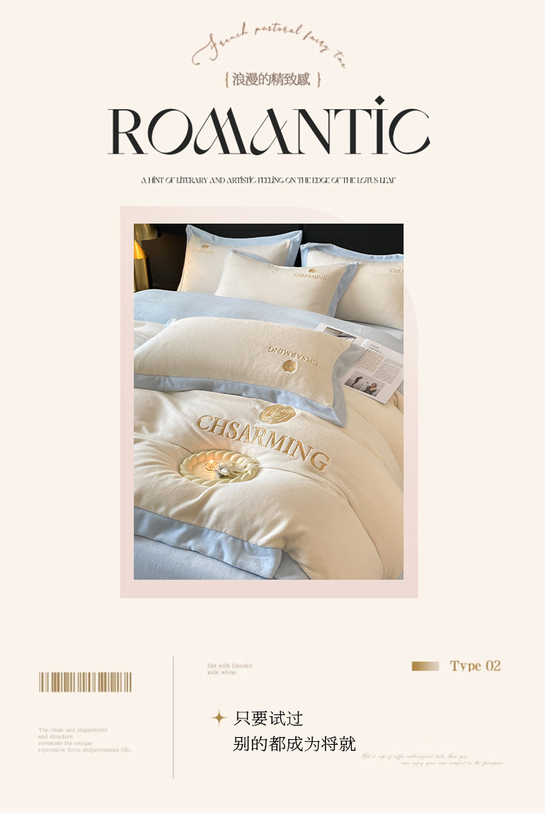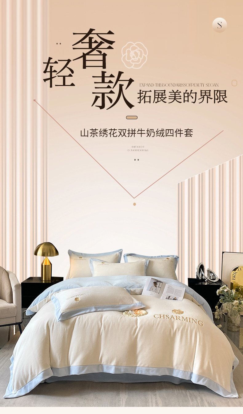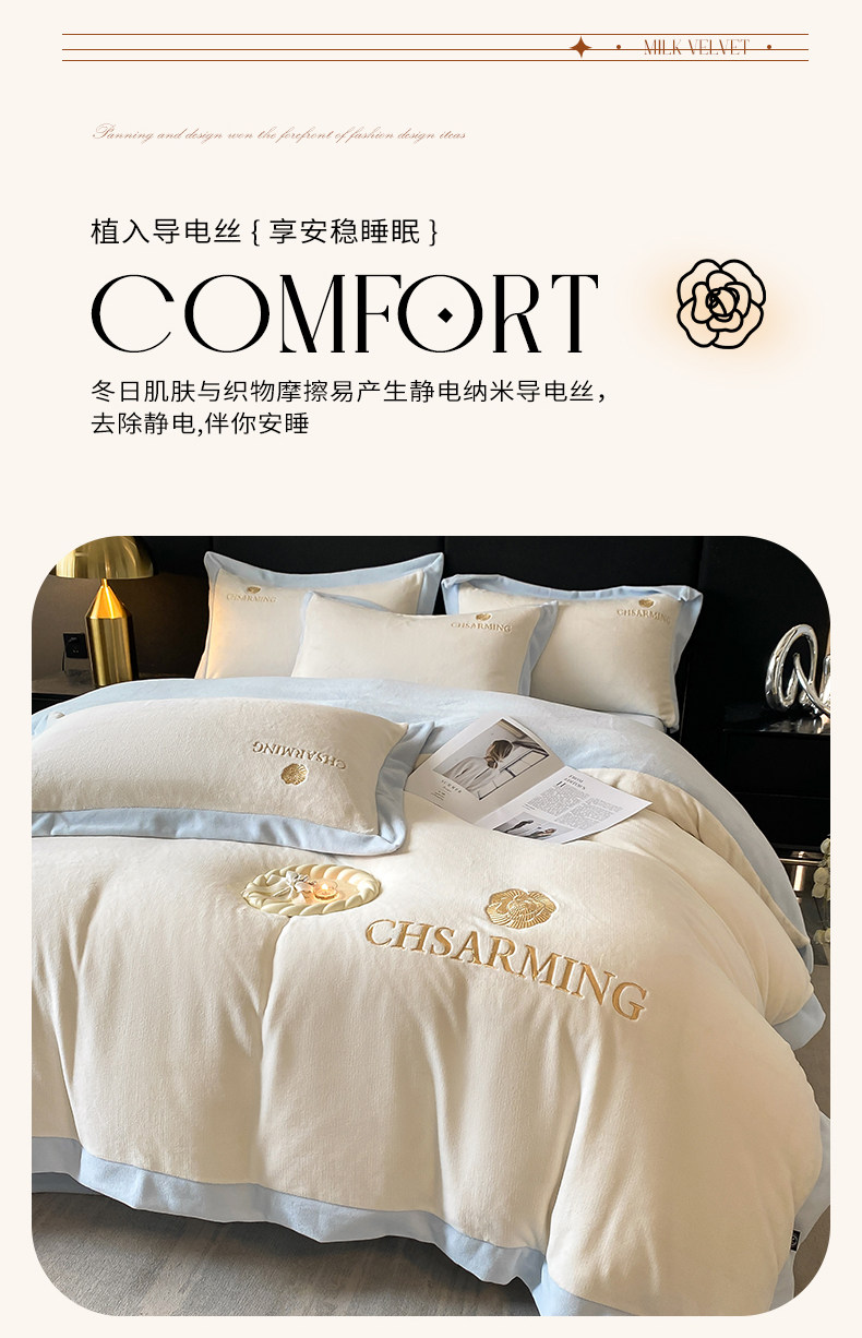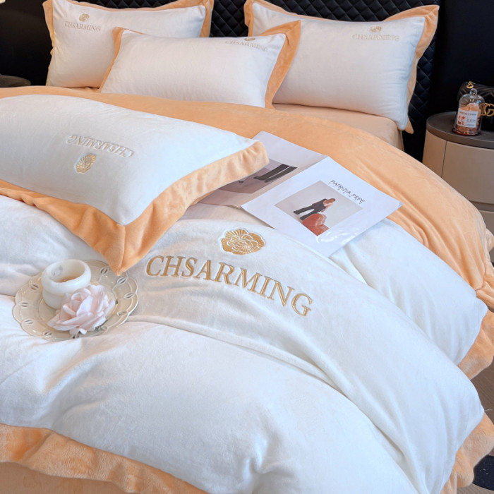 A類輕奢刺綉牛奶絨被套床上四件套冬季雙面絨被罩珊瑚絨床單床包