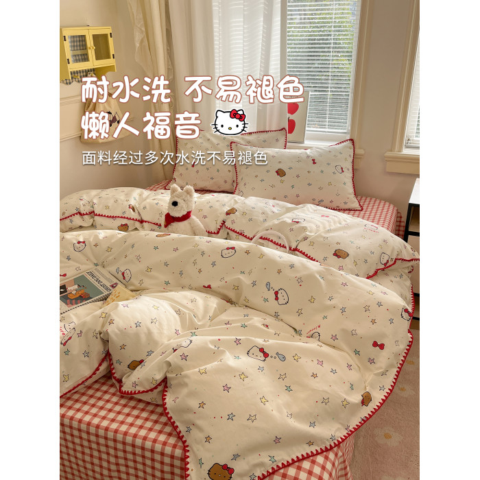 可愛貓咪純棉床上四件套全棉2026新款被套學生宿捨床單三件套床品