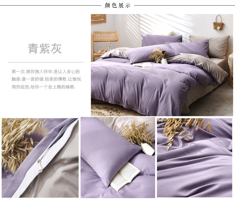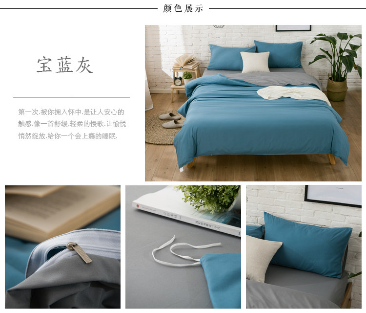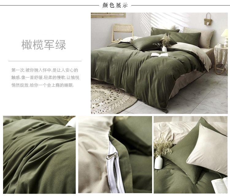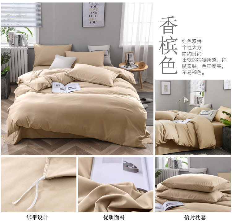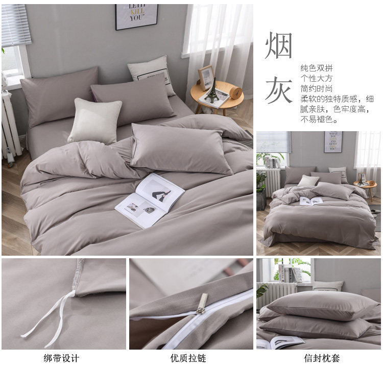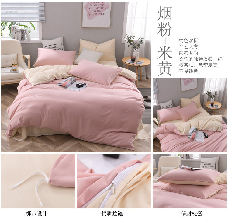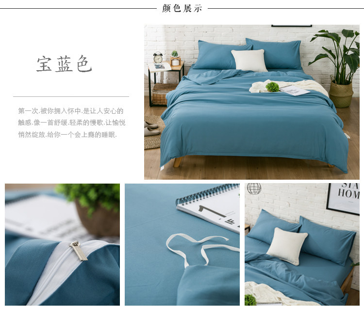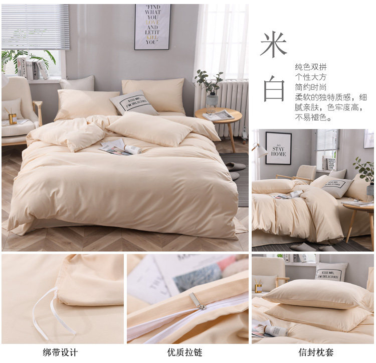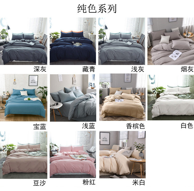 簡約純色純棉磨毛四件套床上床單被套床包全棉學生宿捨三件套床品