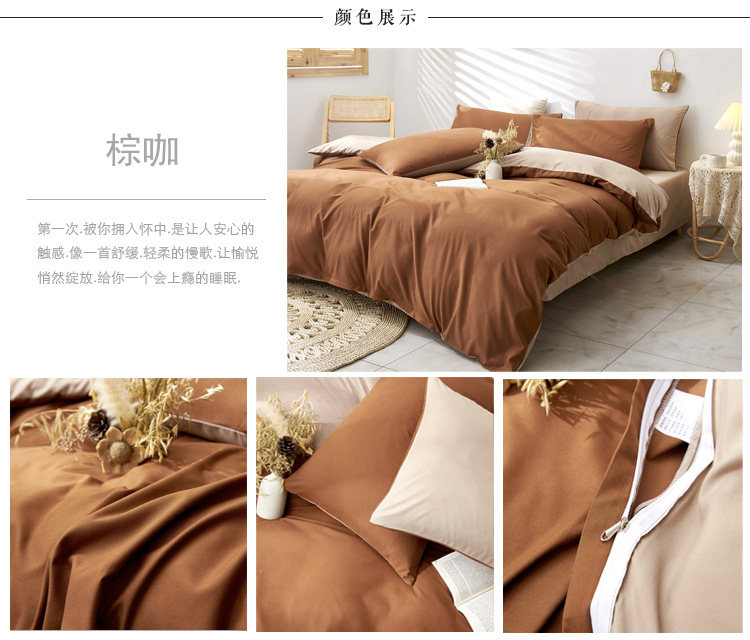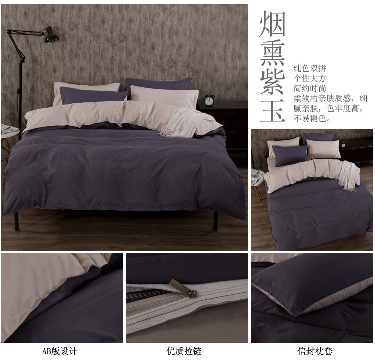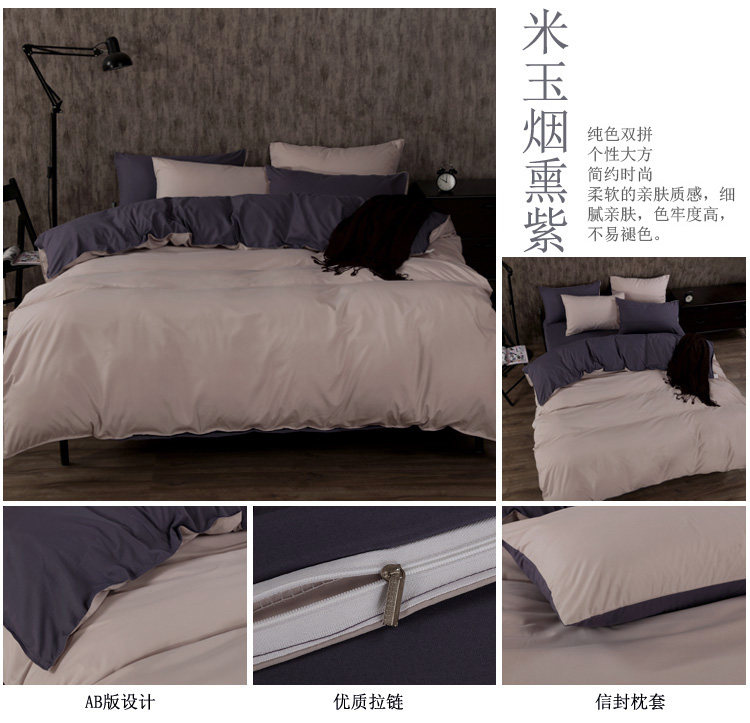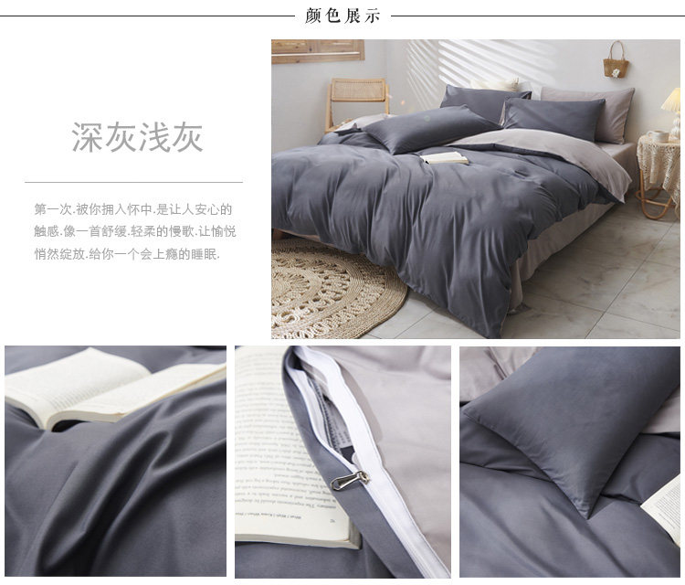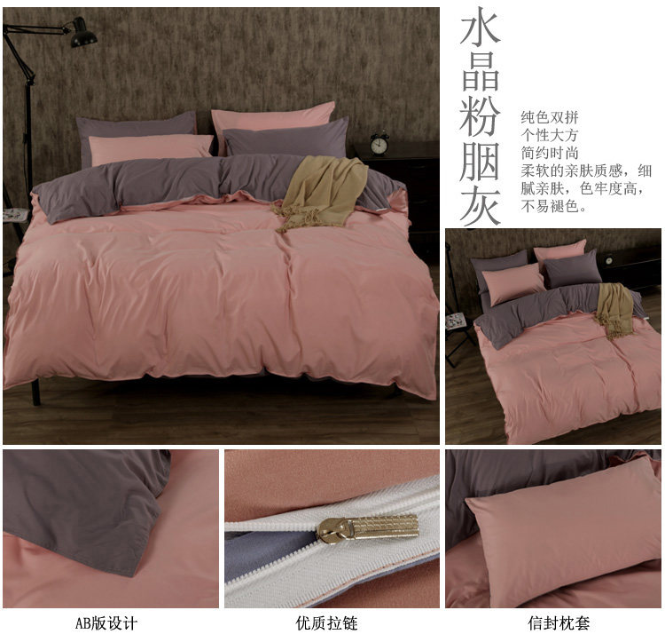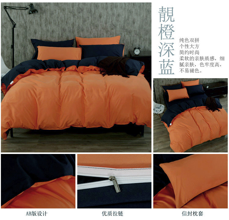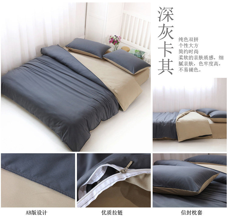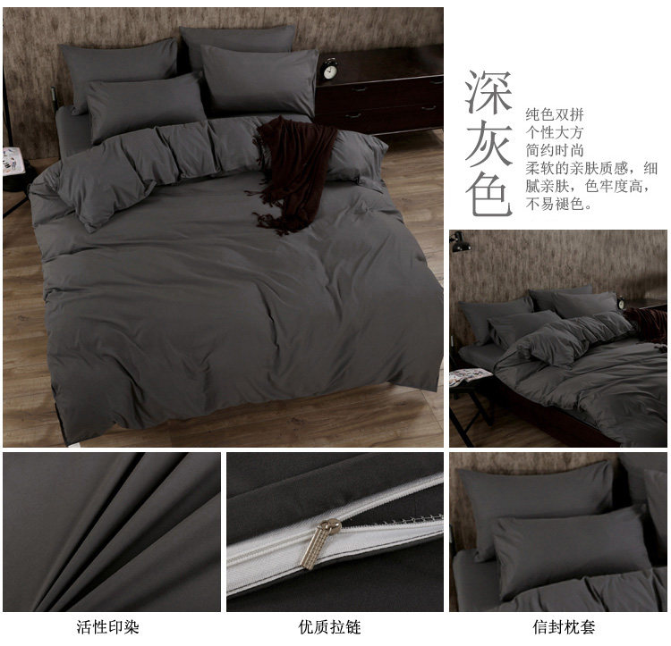 簡約純色純棉磨毛四件套床上床單被套床包全棉學生宿捨三件套床品