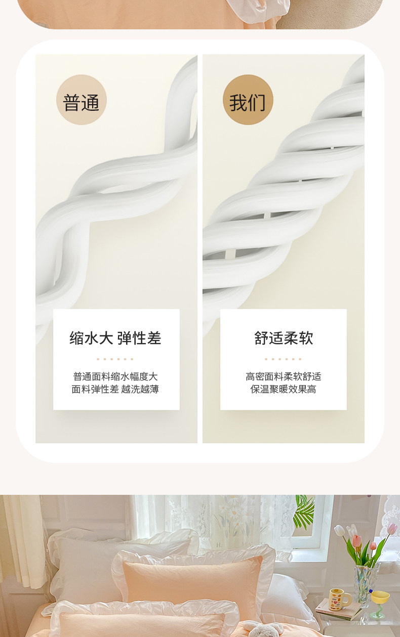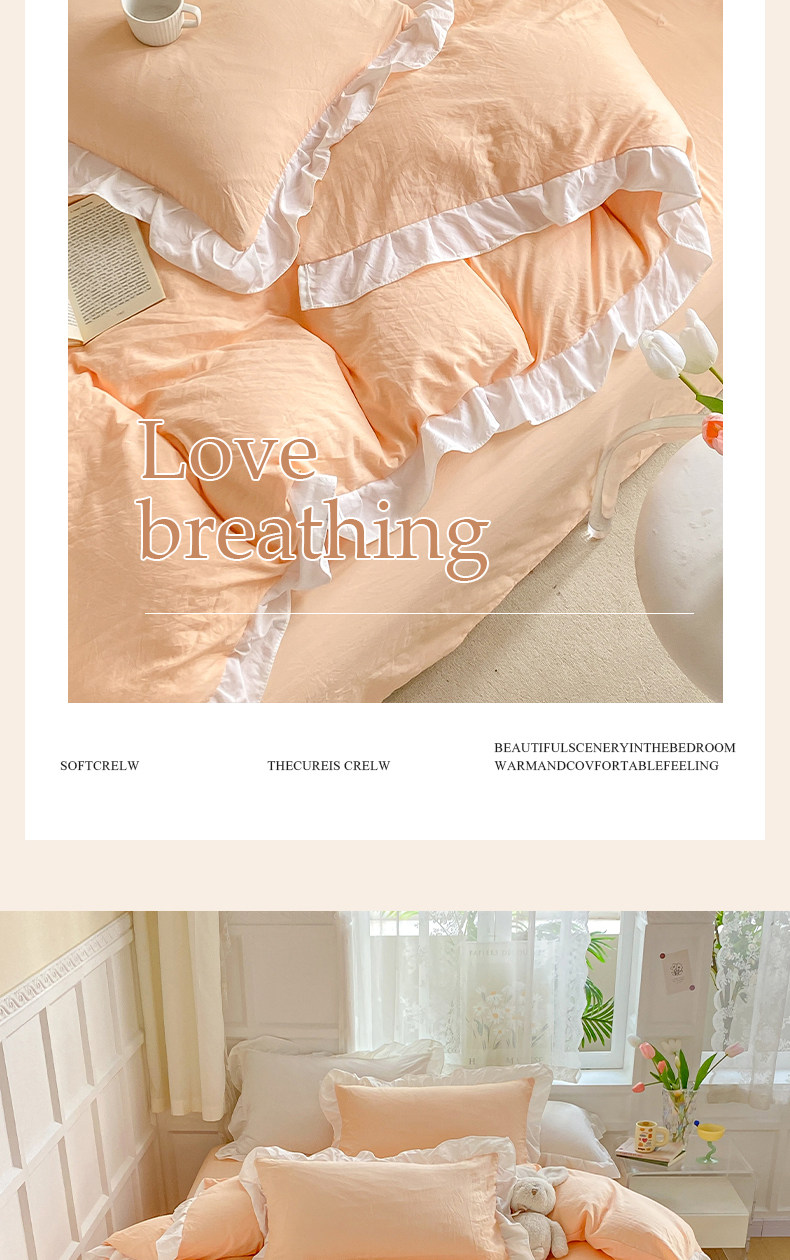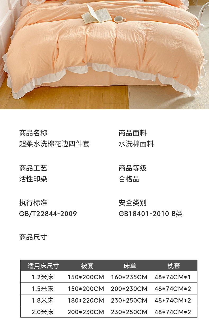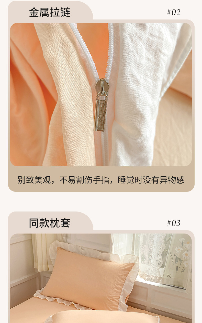 公主風水洗棉純色床單被套四件套花邊床上用品大學生宿捨三件套女
