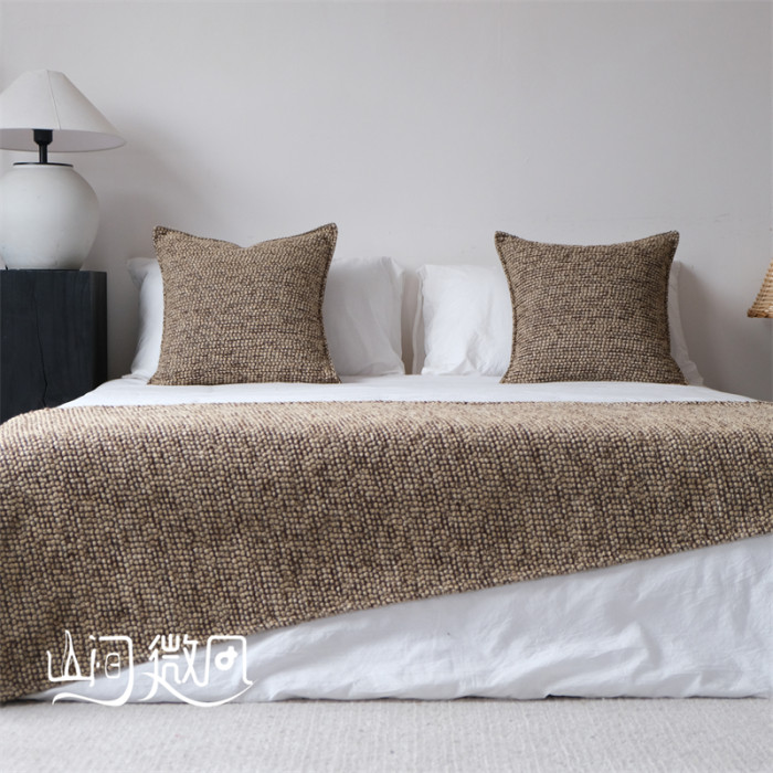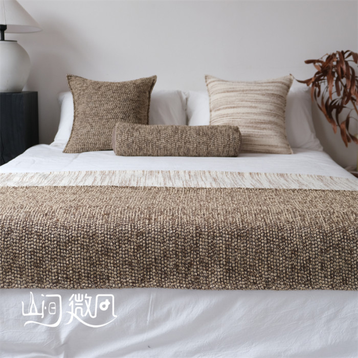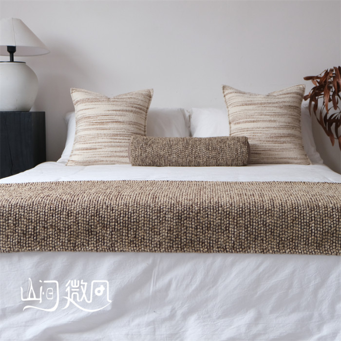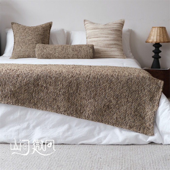 咖色中古風床尾毯新中式床尾巾侘寂風搭毯搭巾民宿酒店樣板間床旗