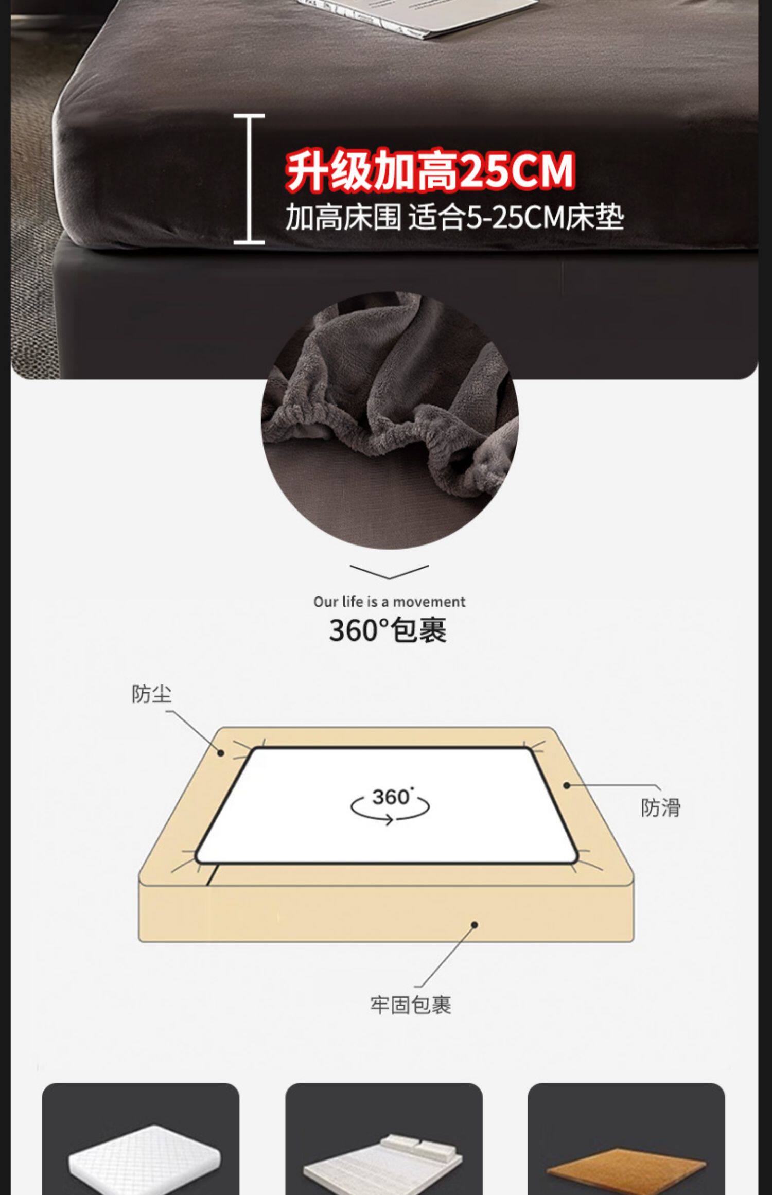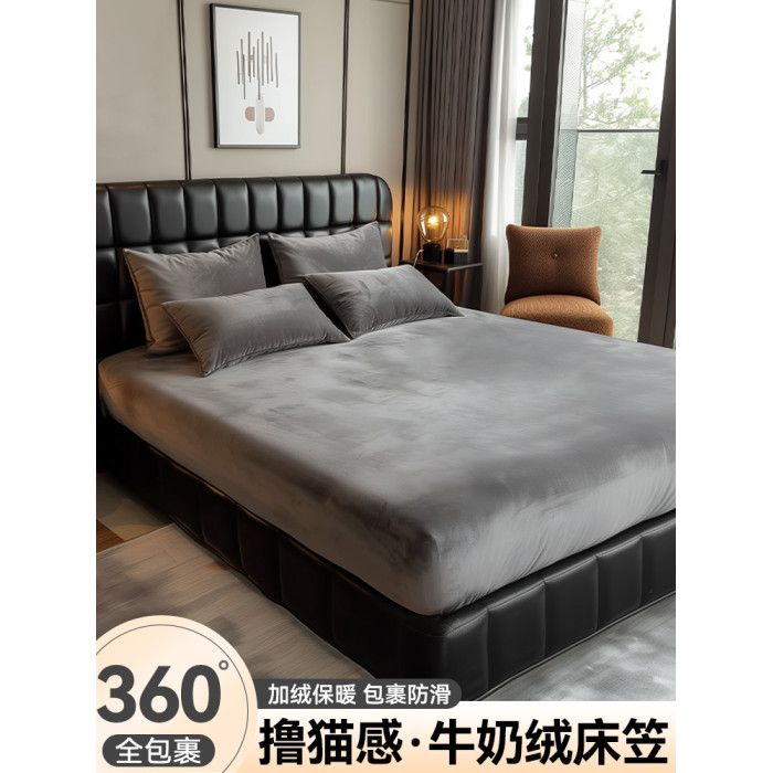 牛奶絨床包罩冬季加絨床墊保證罩2024新款四季通用珊瑚絨單人床單