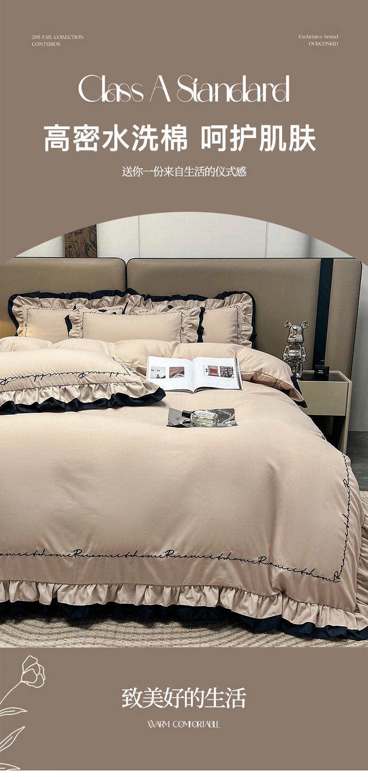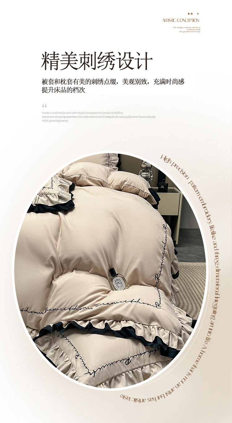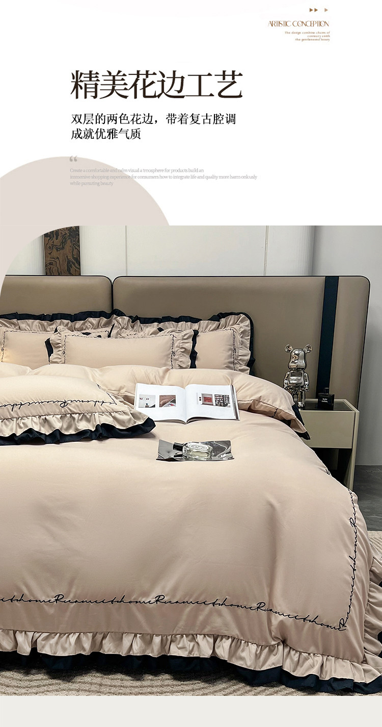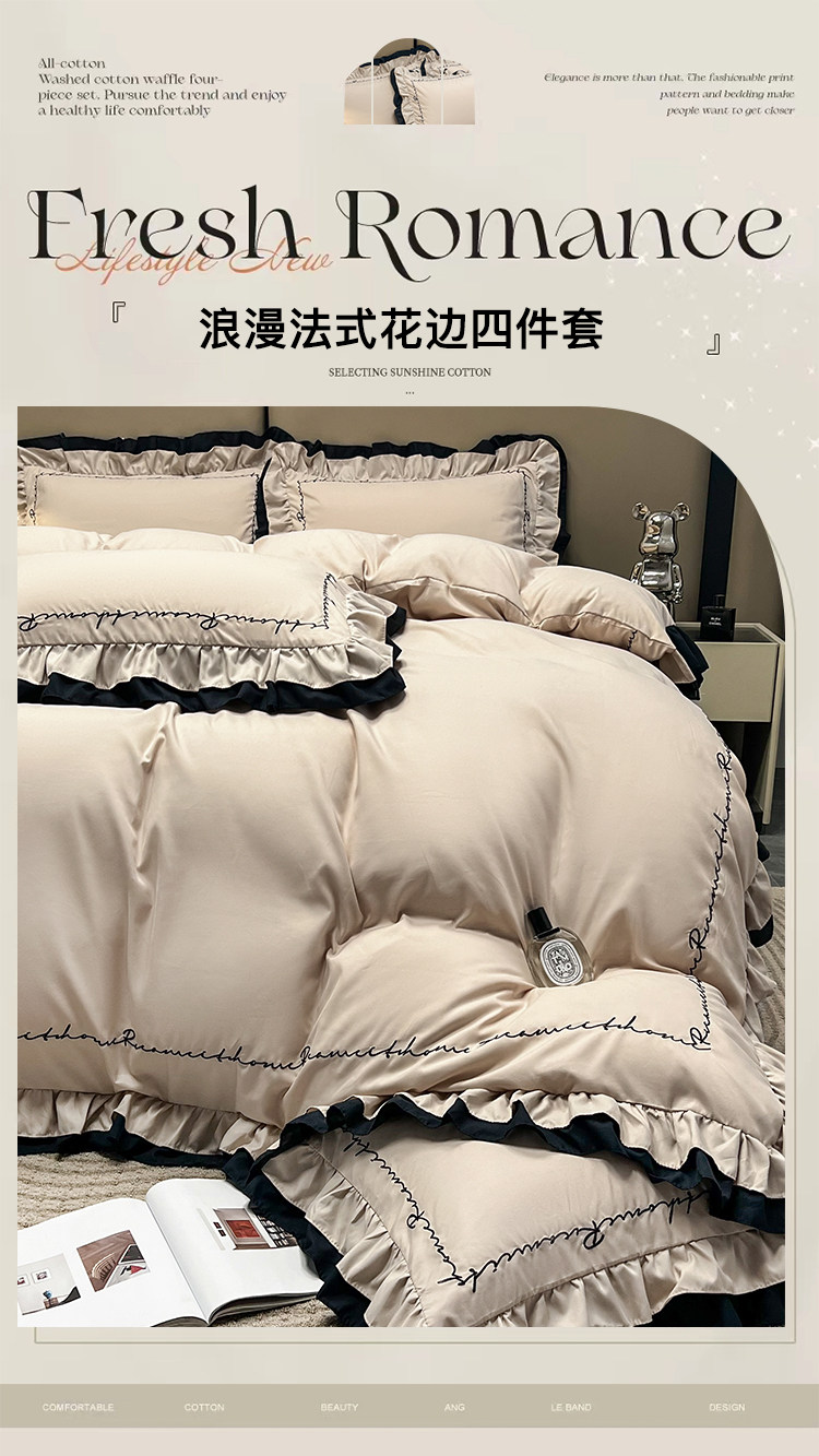 2025新全棉法式輕奢風雙層花邊被套立體刺綉四件套純棉公主水洗棉