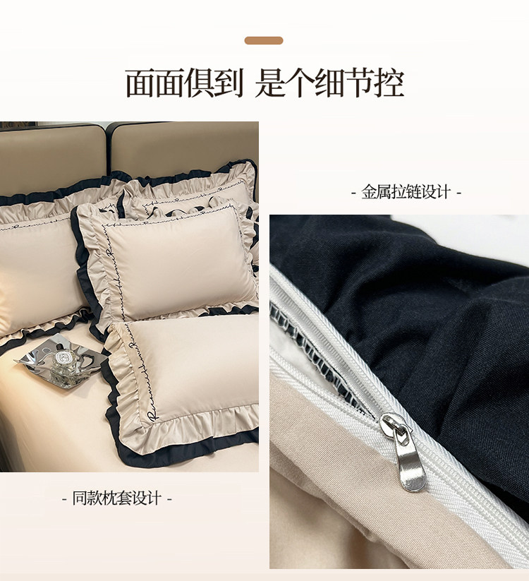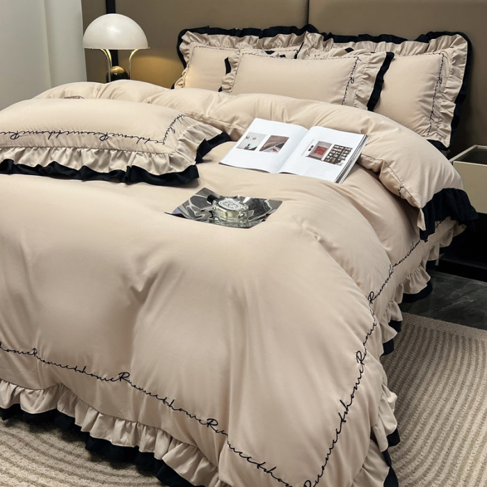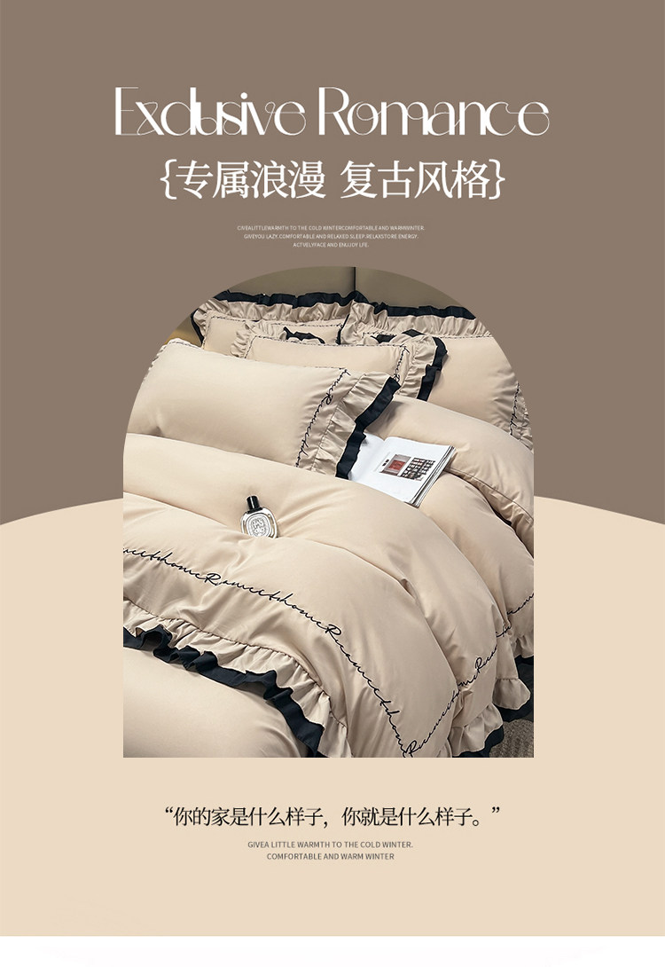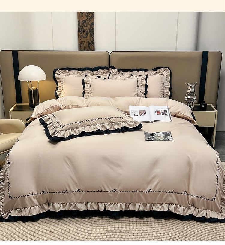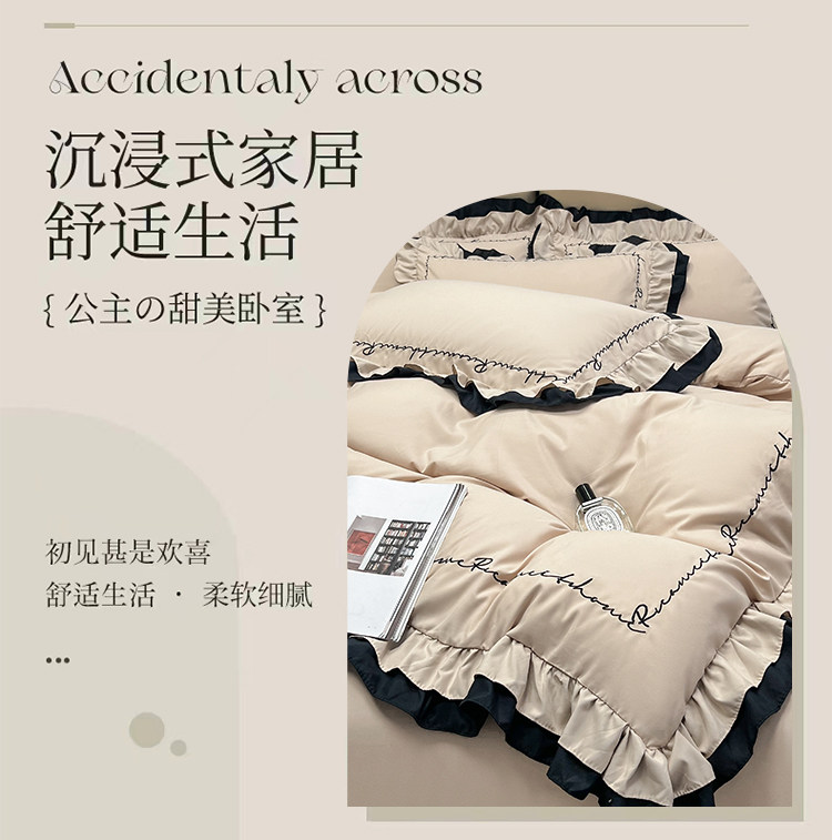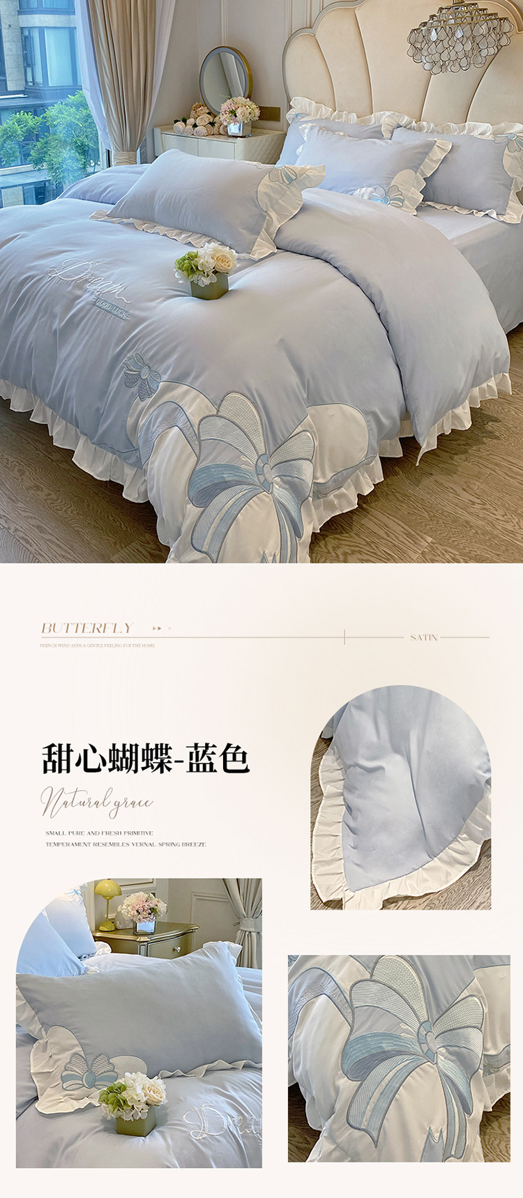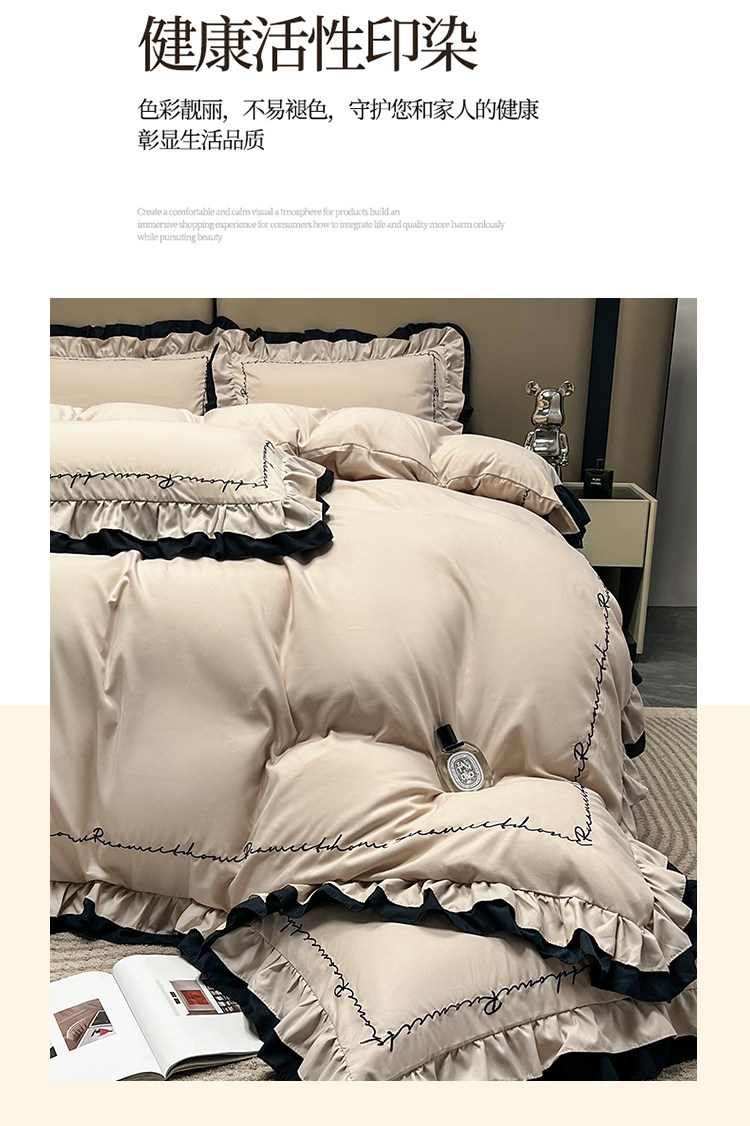 2025新全棉法式輕奢風雙層花邊被套立體刺綉四件套純棉公主水洗棉