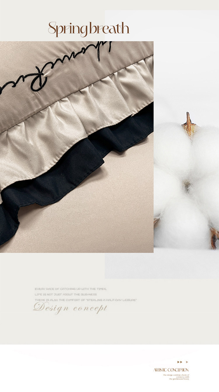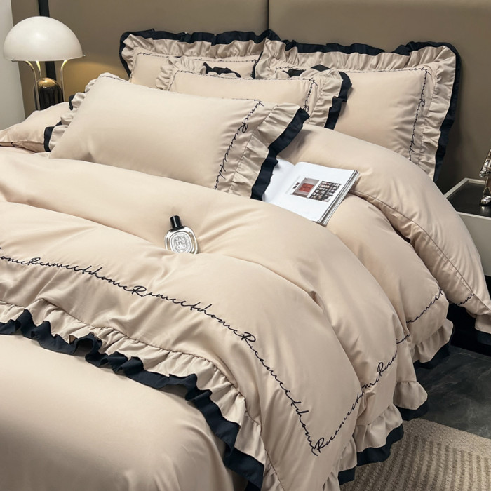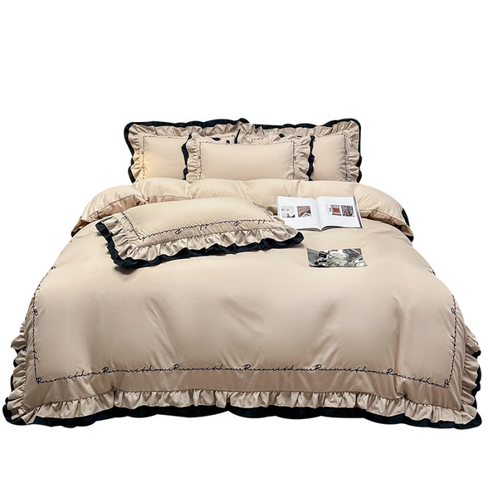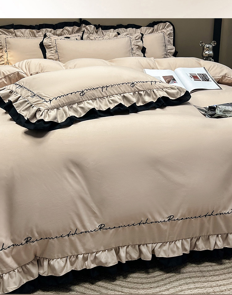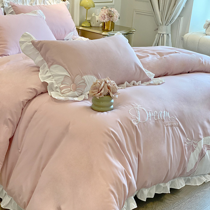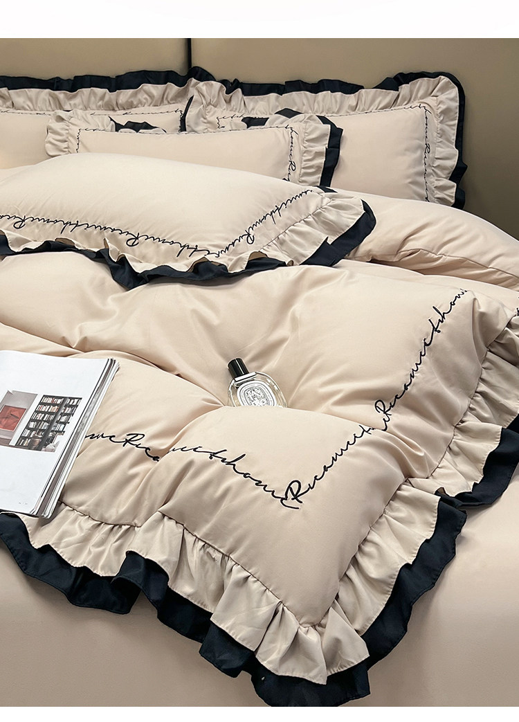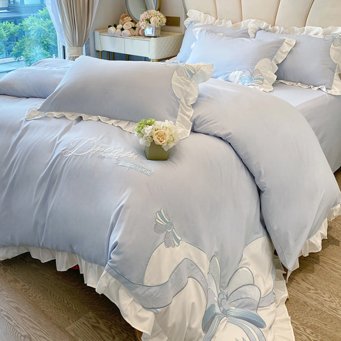 2025新全棉法式輕奢風雙層花邊被套立體刺綉四件套純棉公主水洗棉