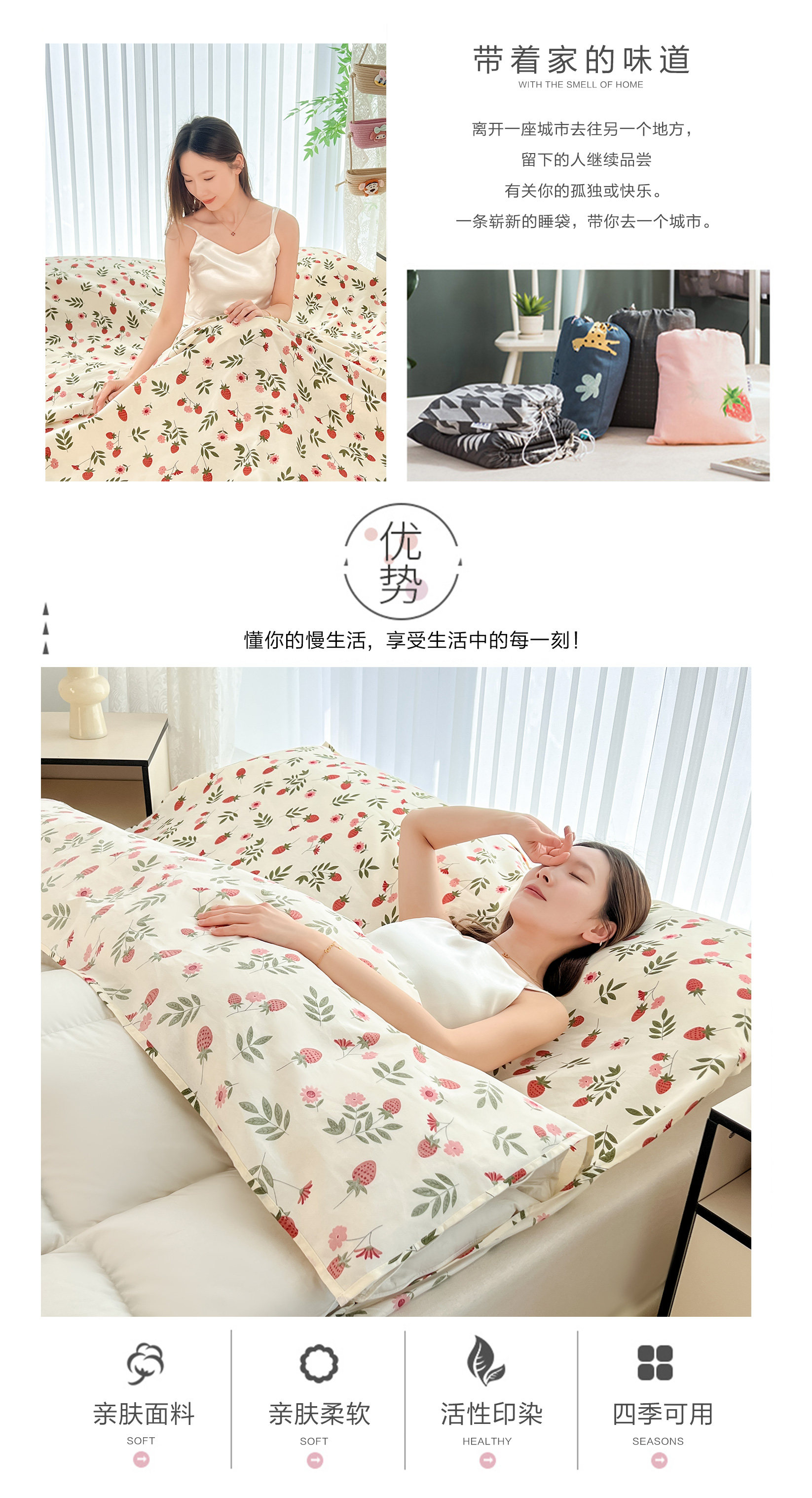 富歌娜睡袋旅行成人床單被罩三件套外出差可攜式臥鋪非全棉純棉