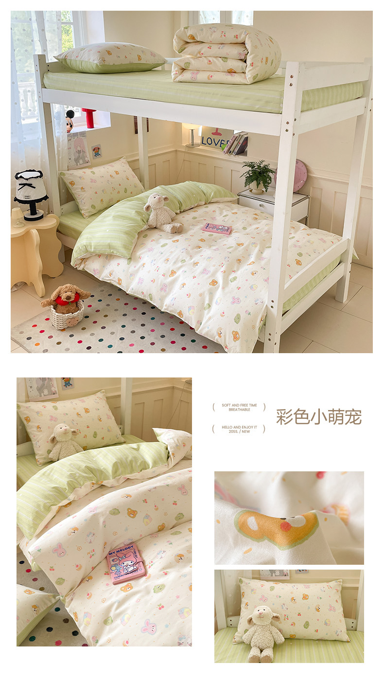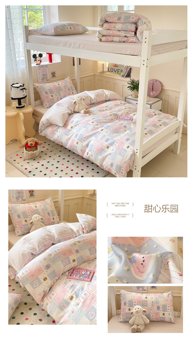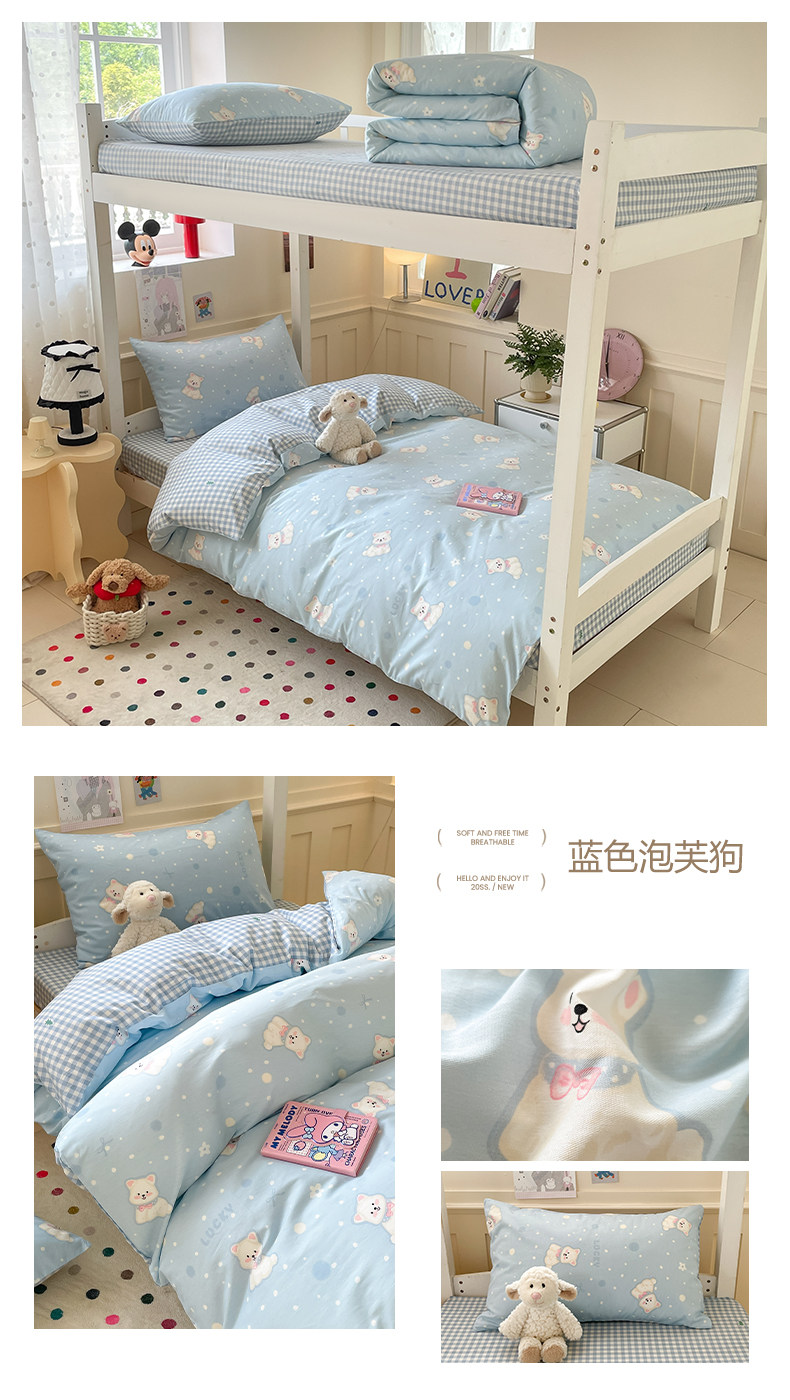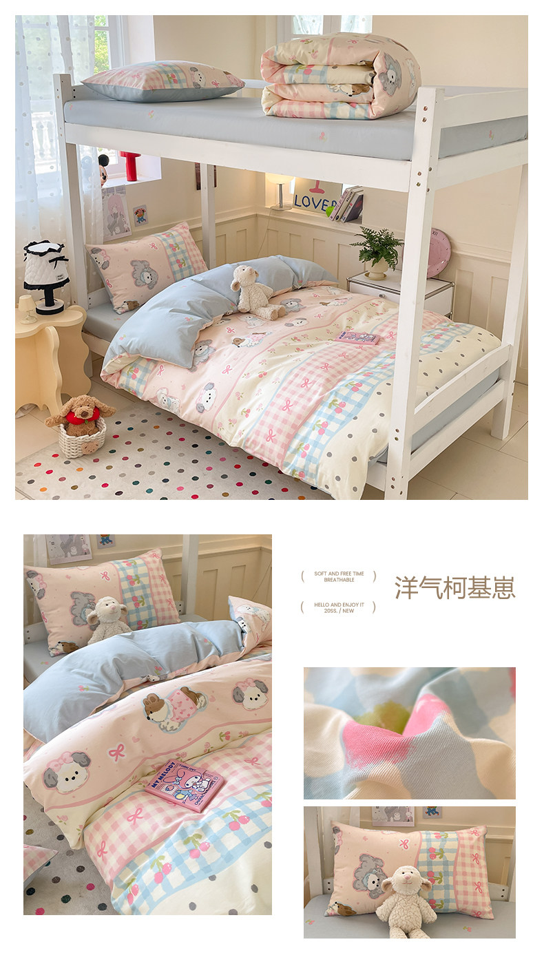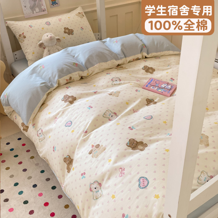 小清新全棉學生宿捨床品三件套少女心床單被套100%純棉卡通四件套