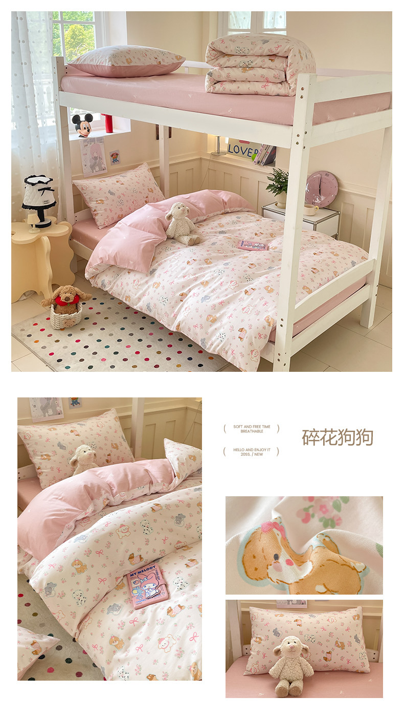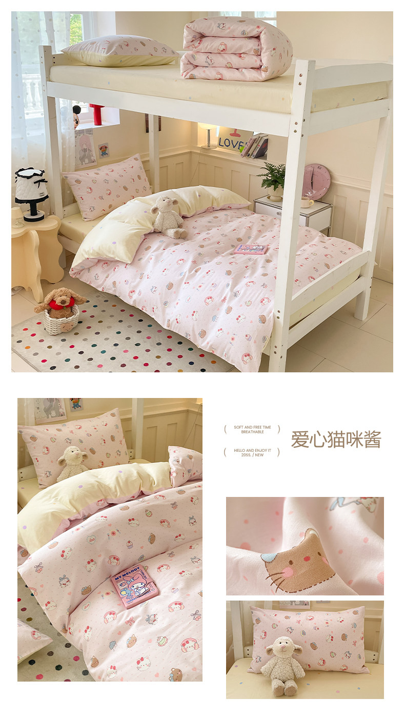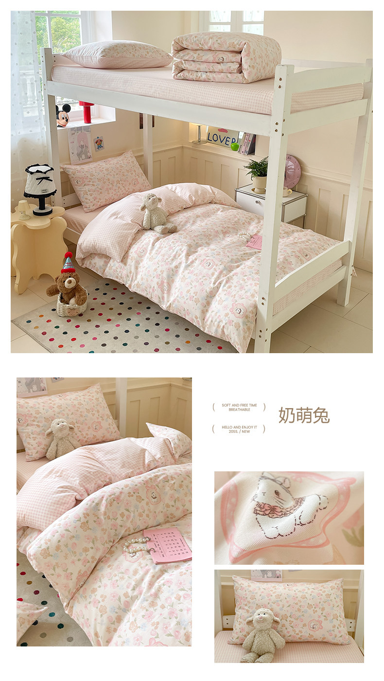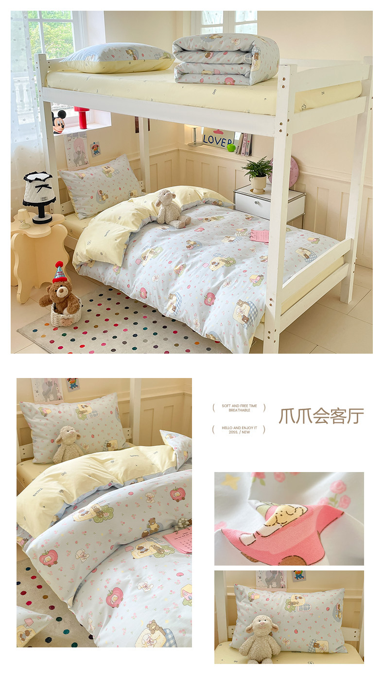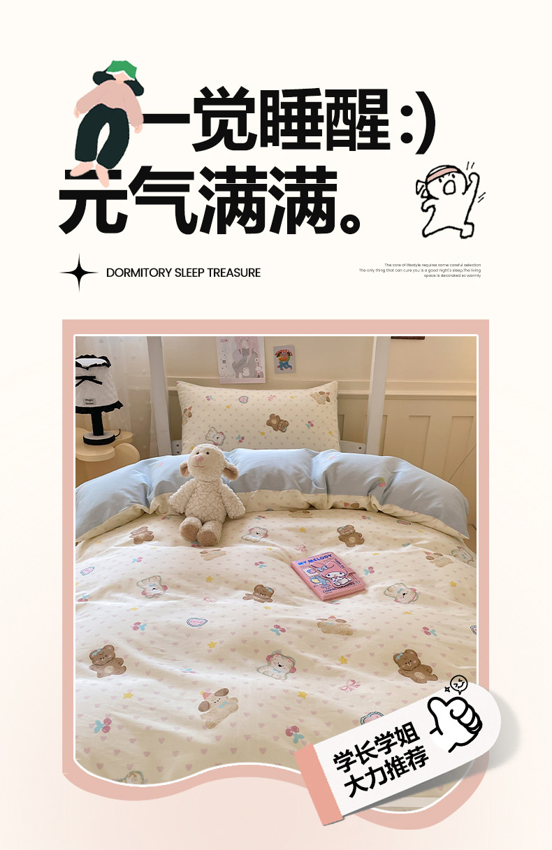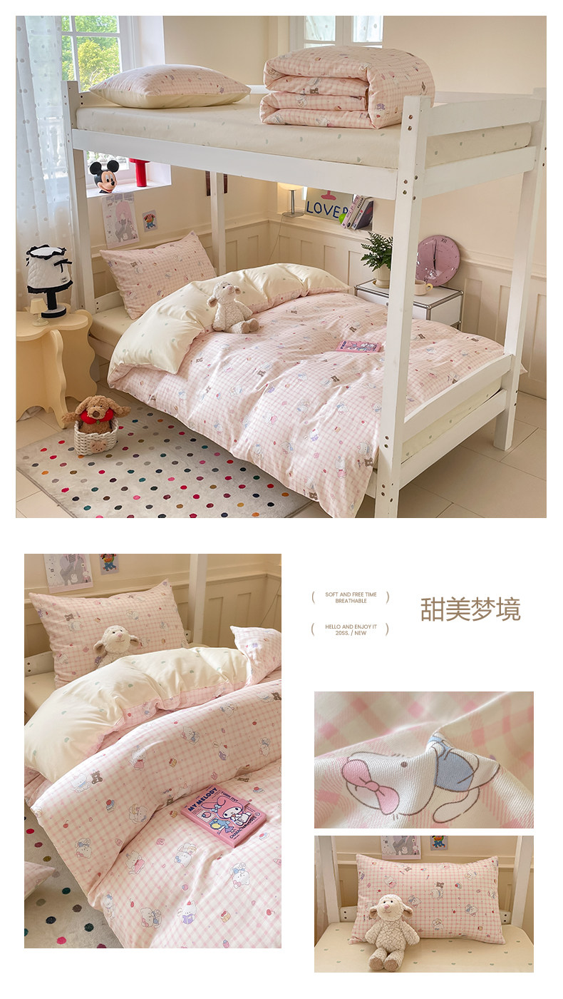 小清新全棉學生宿捨床品三件套少女心床單被套100%純棉卡通四件套