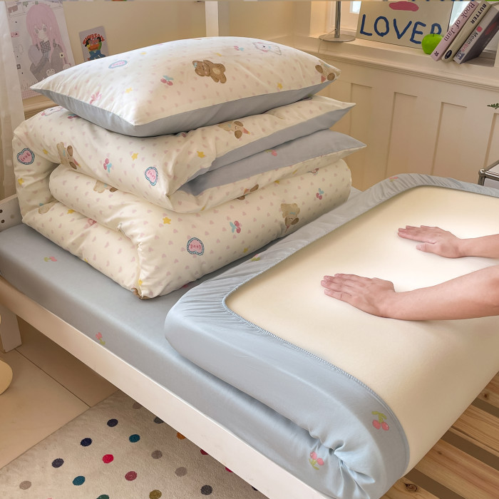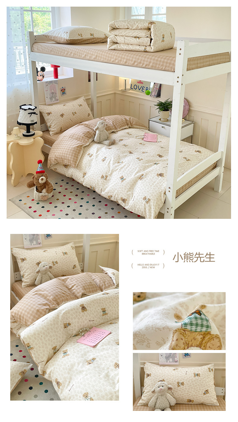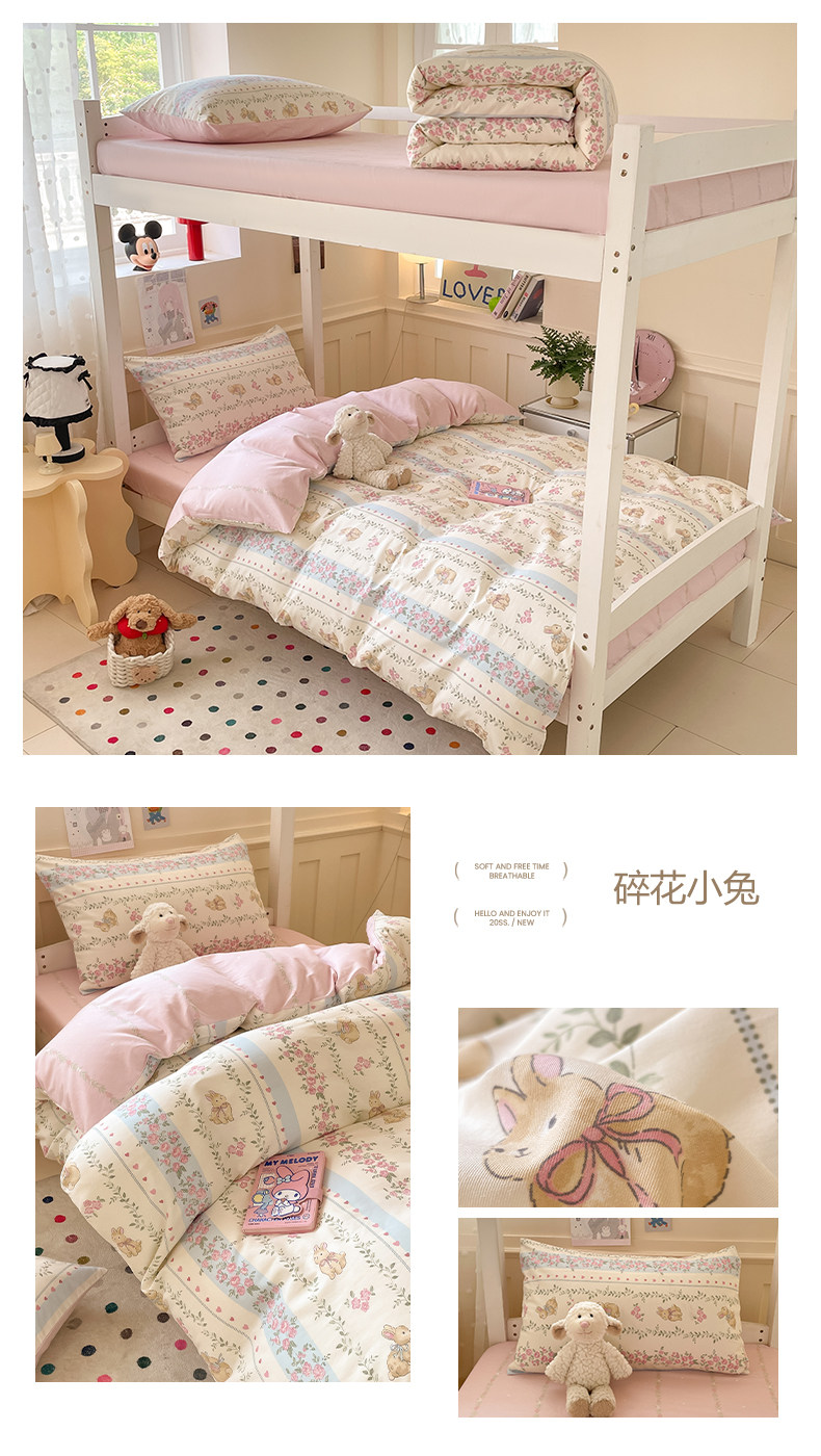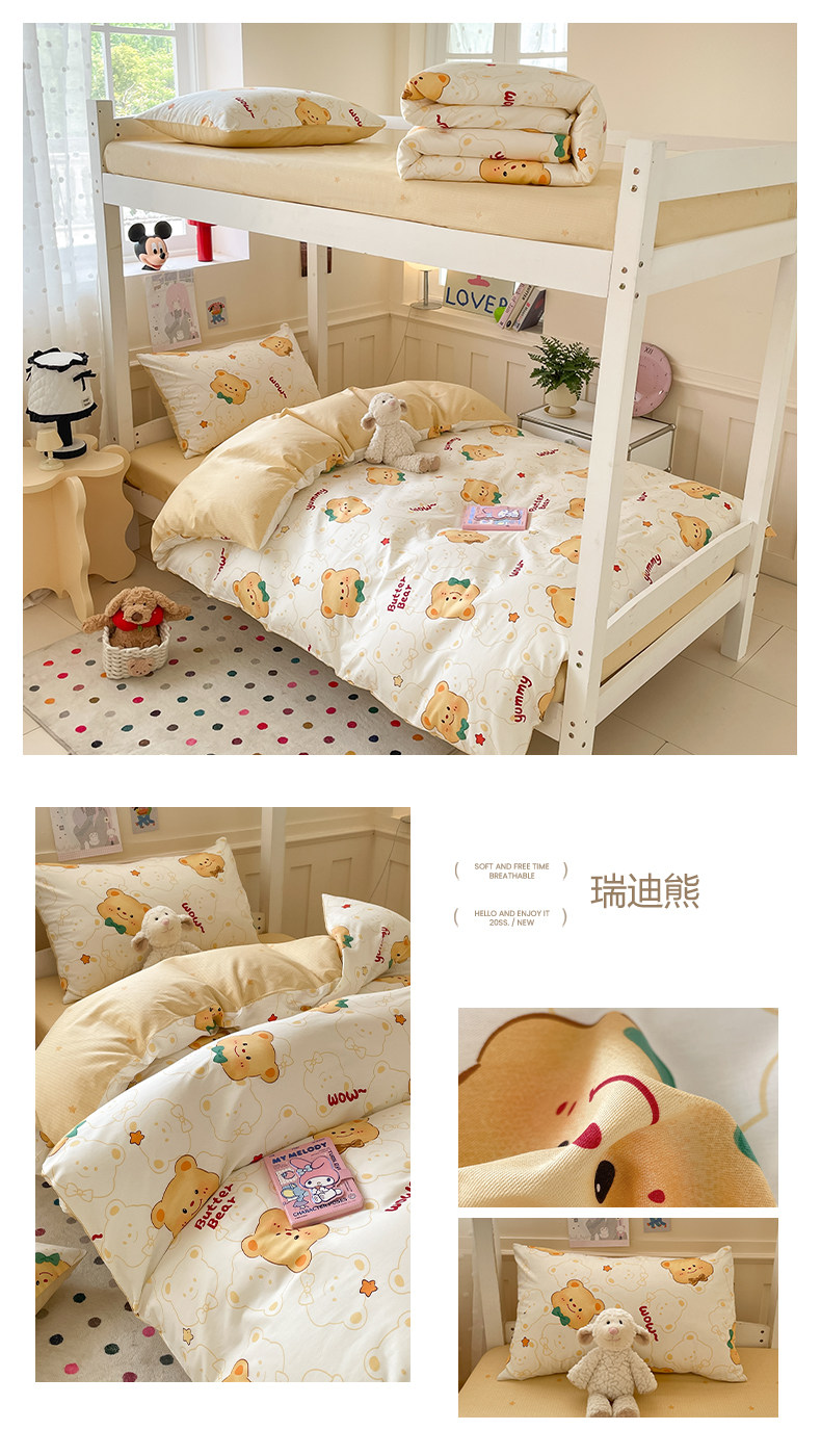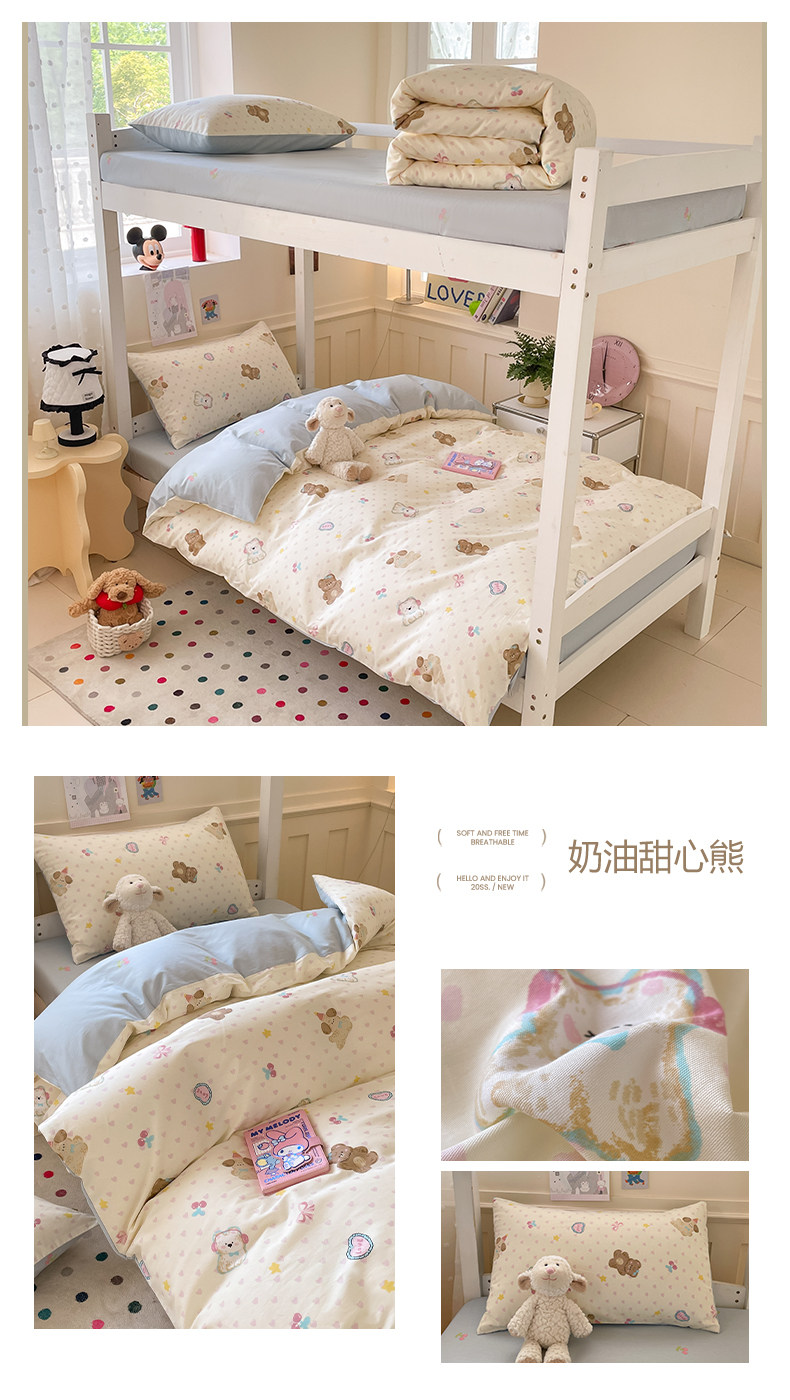 小清新全棉學生宿捨床品三件套少女心床單被套100%純棉卡通四件套