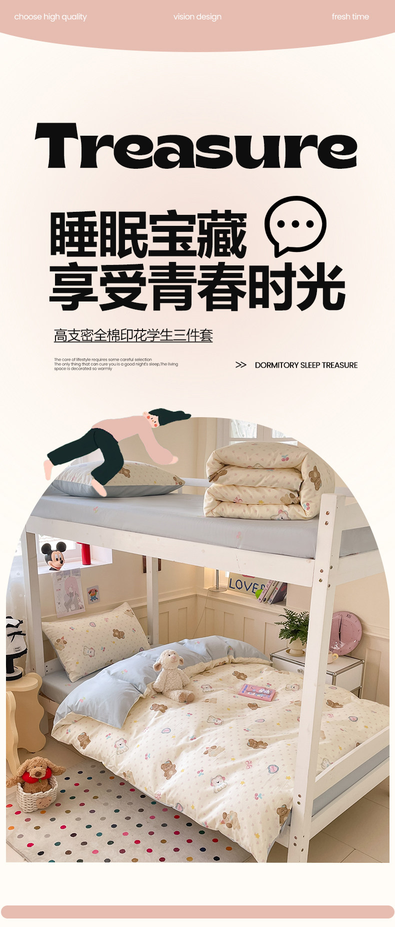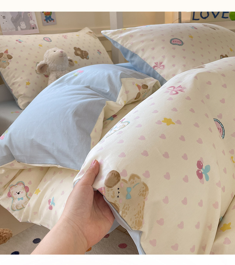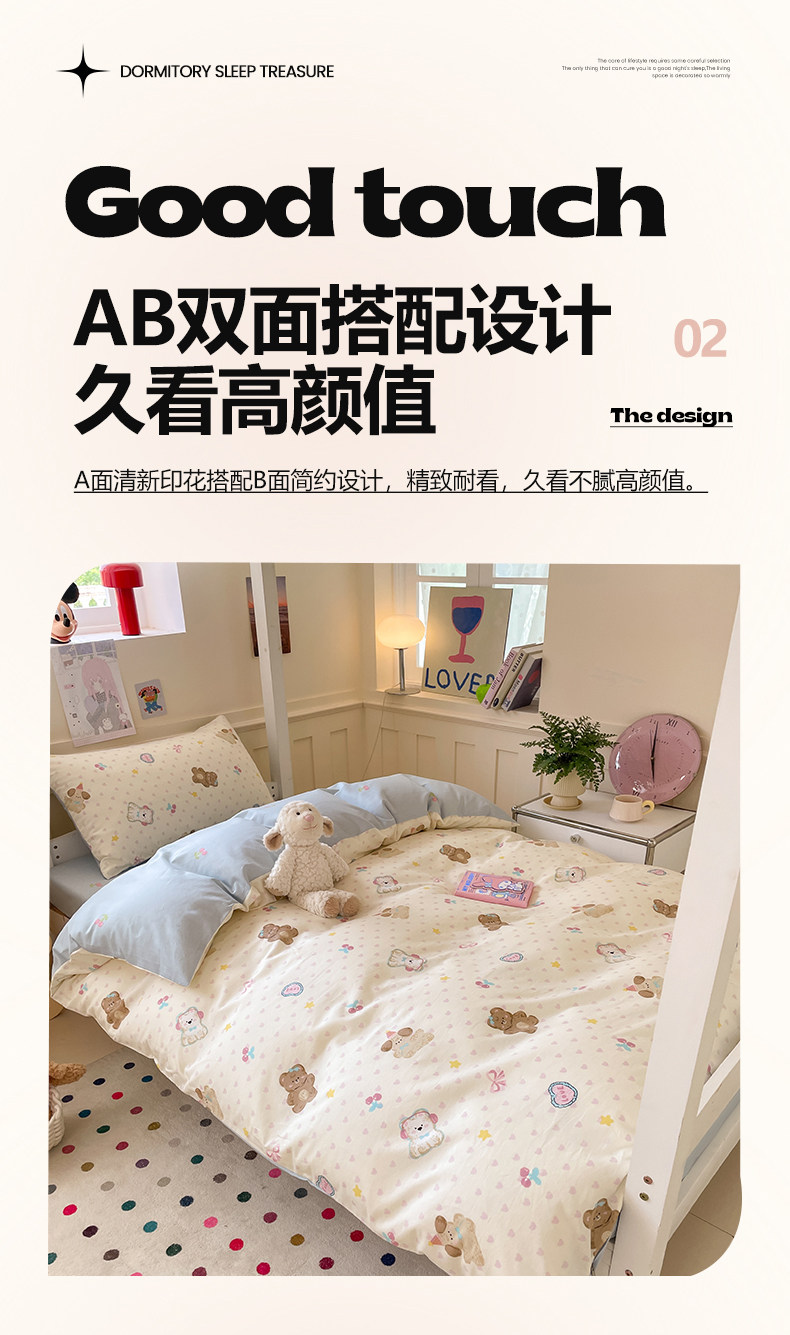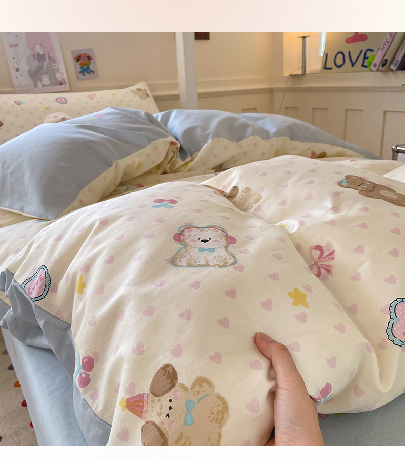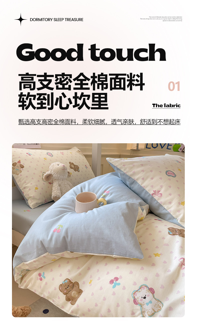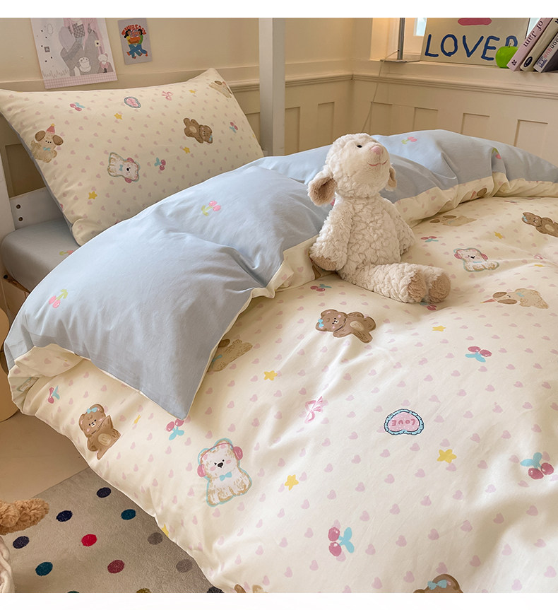 小清新全棉學生宿捨床品三件套少女心床單被套100%純棉卡通四件套