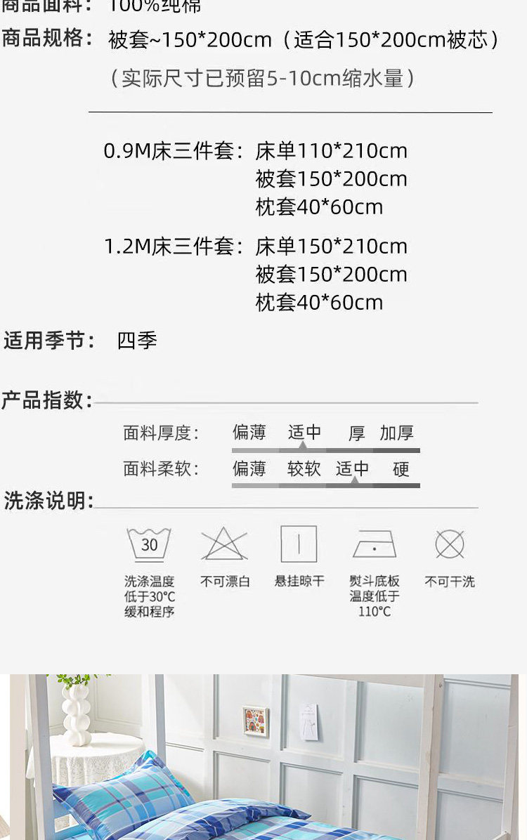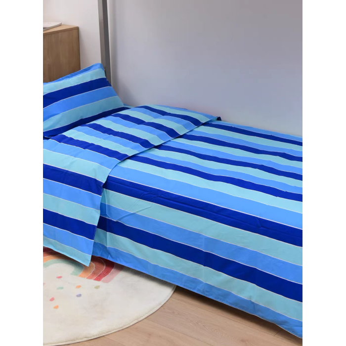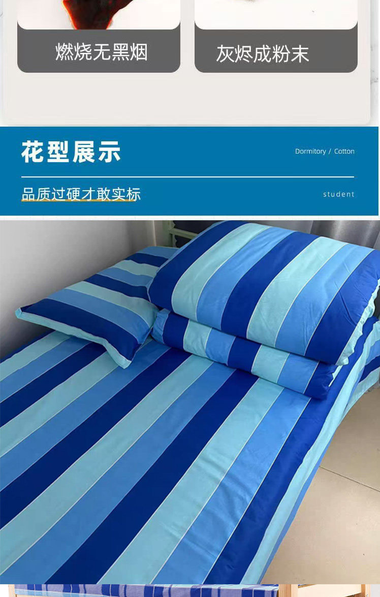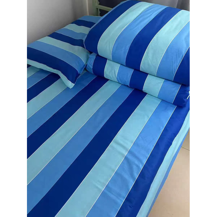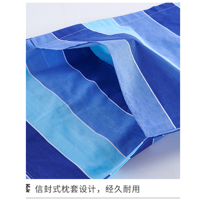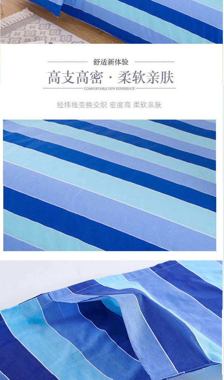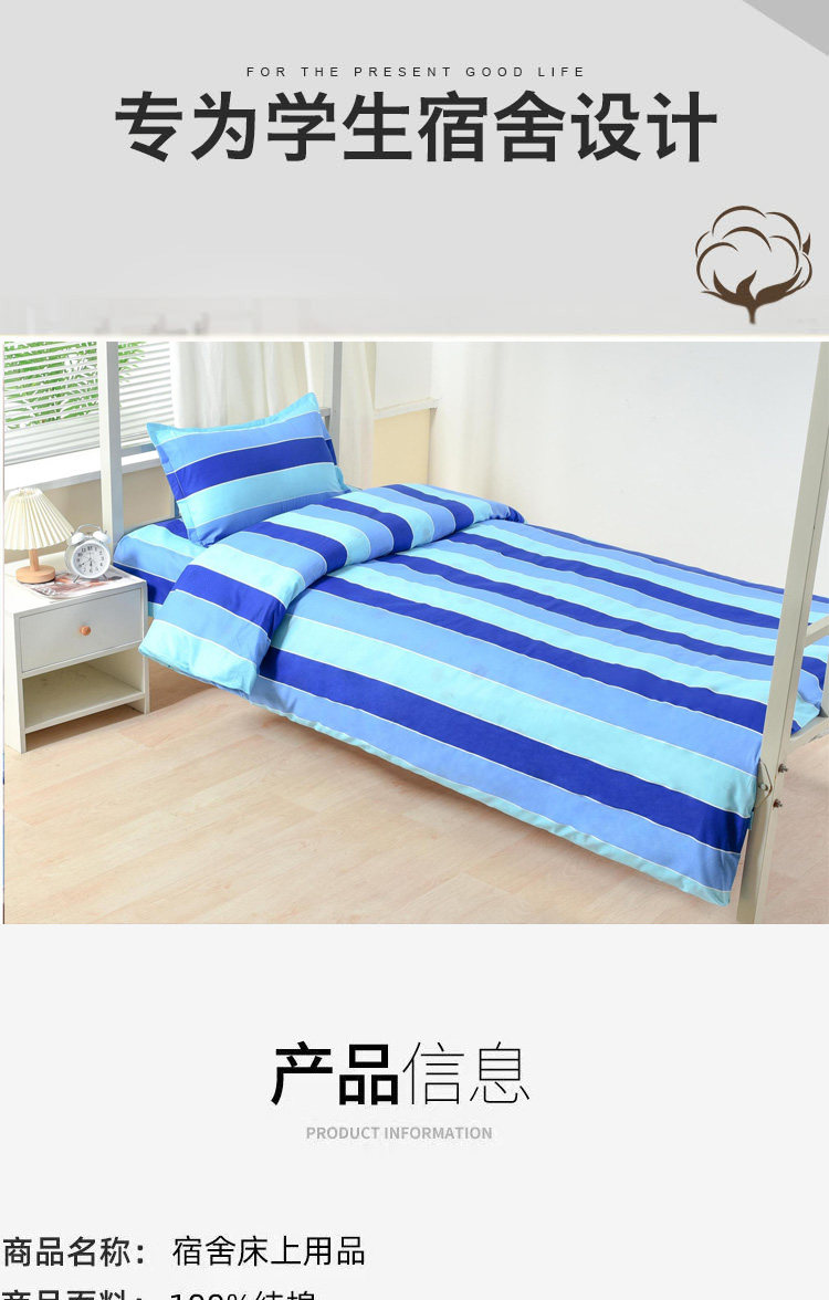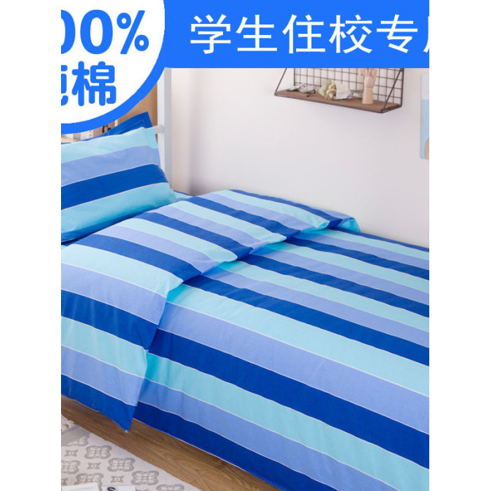 學生宿捨三件套純棉單人被套床單枕套三色藍竪條上下鋪床上用品