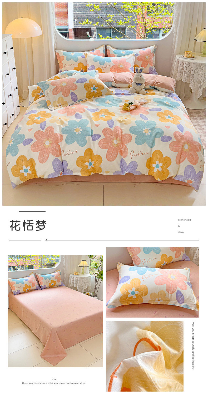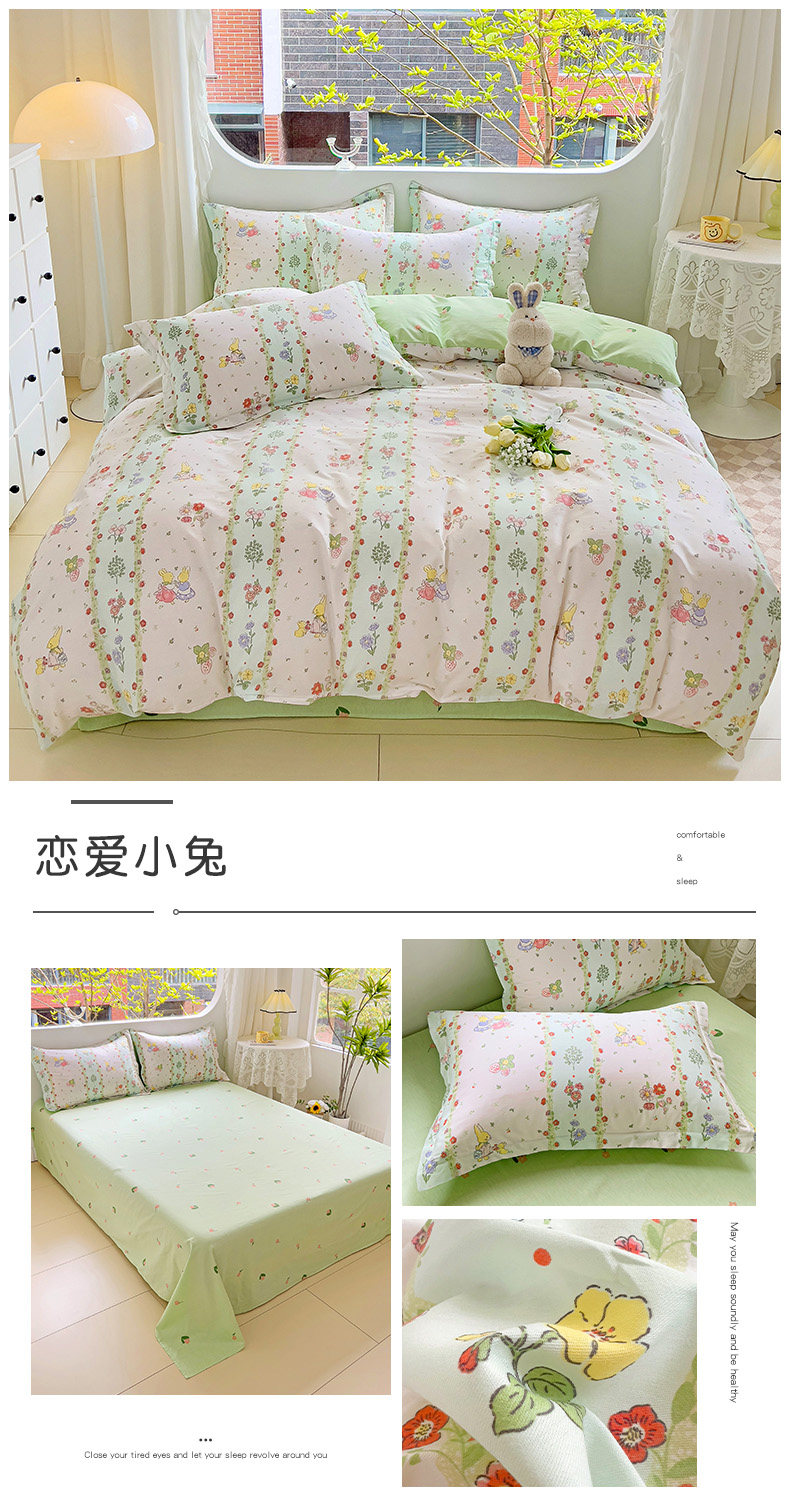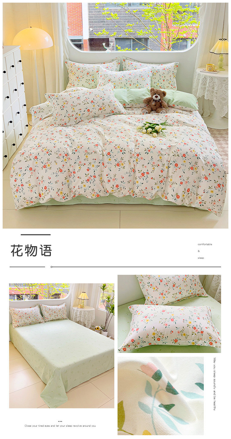 斯予ins純棉四件套100全棉床單被套學生宿捨三件套四季通用小清新