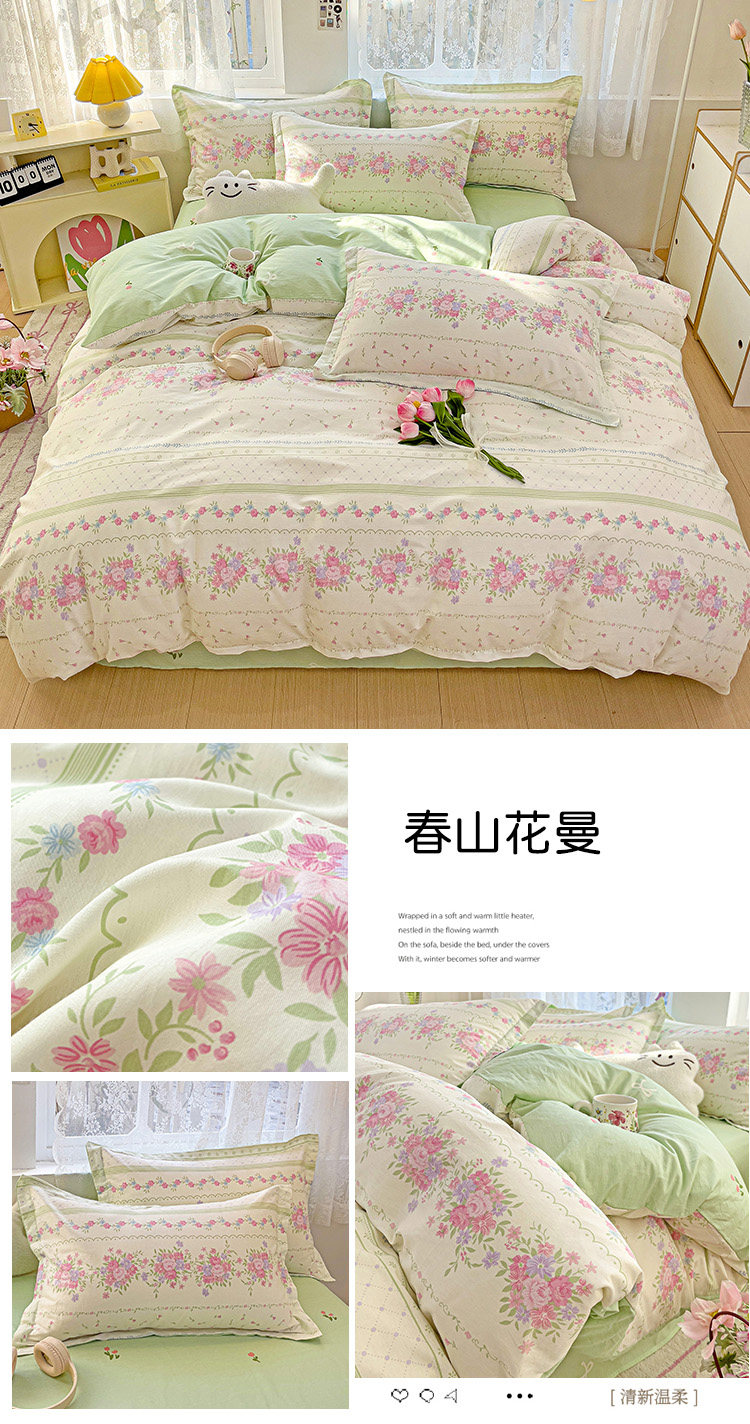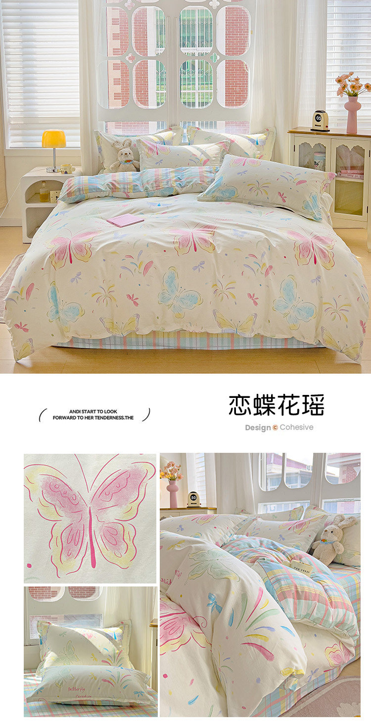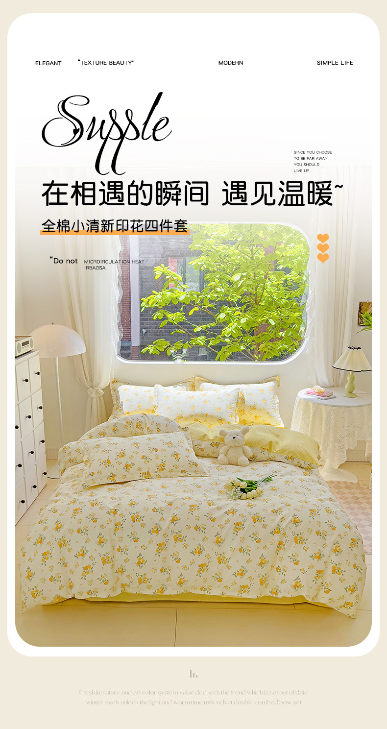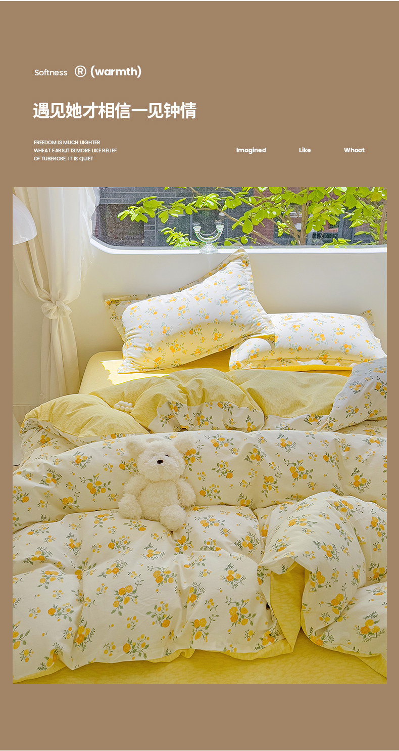 斯予ins純棉四件套100全棉床單被套學生宿捨三件套四季通用小清新