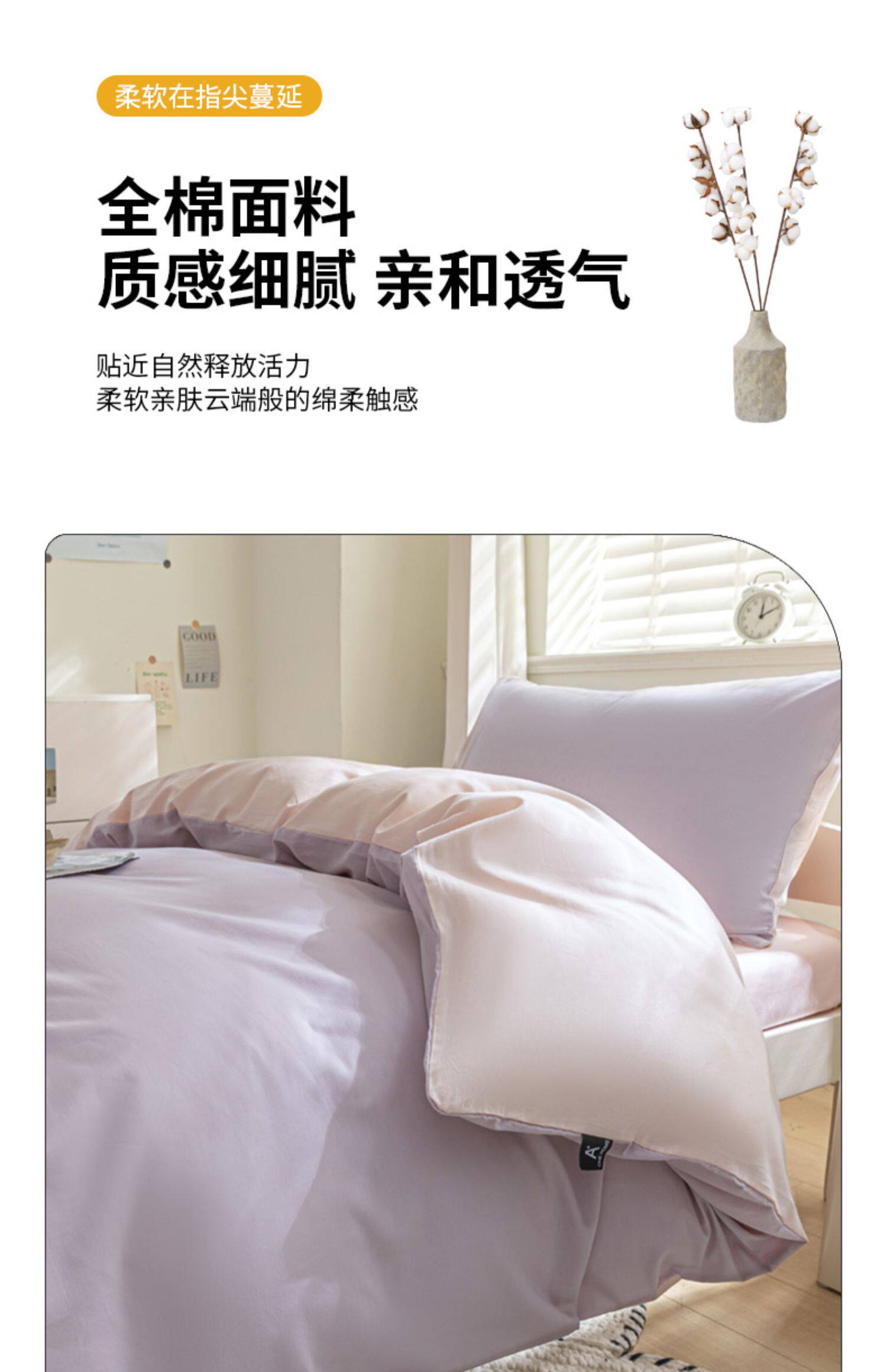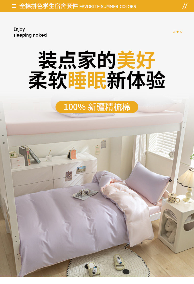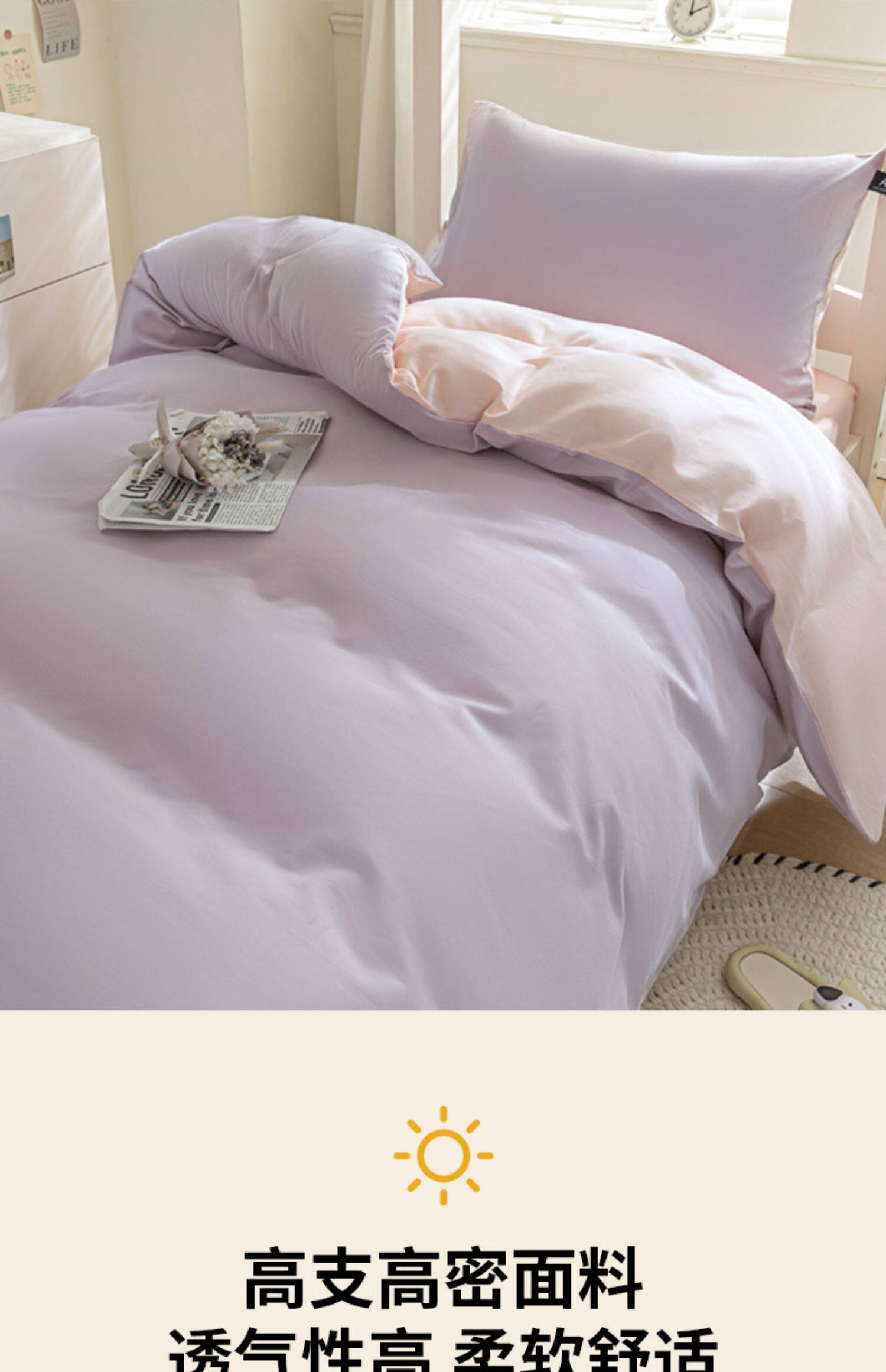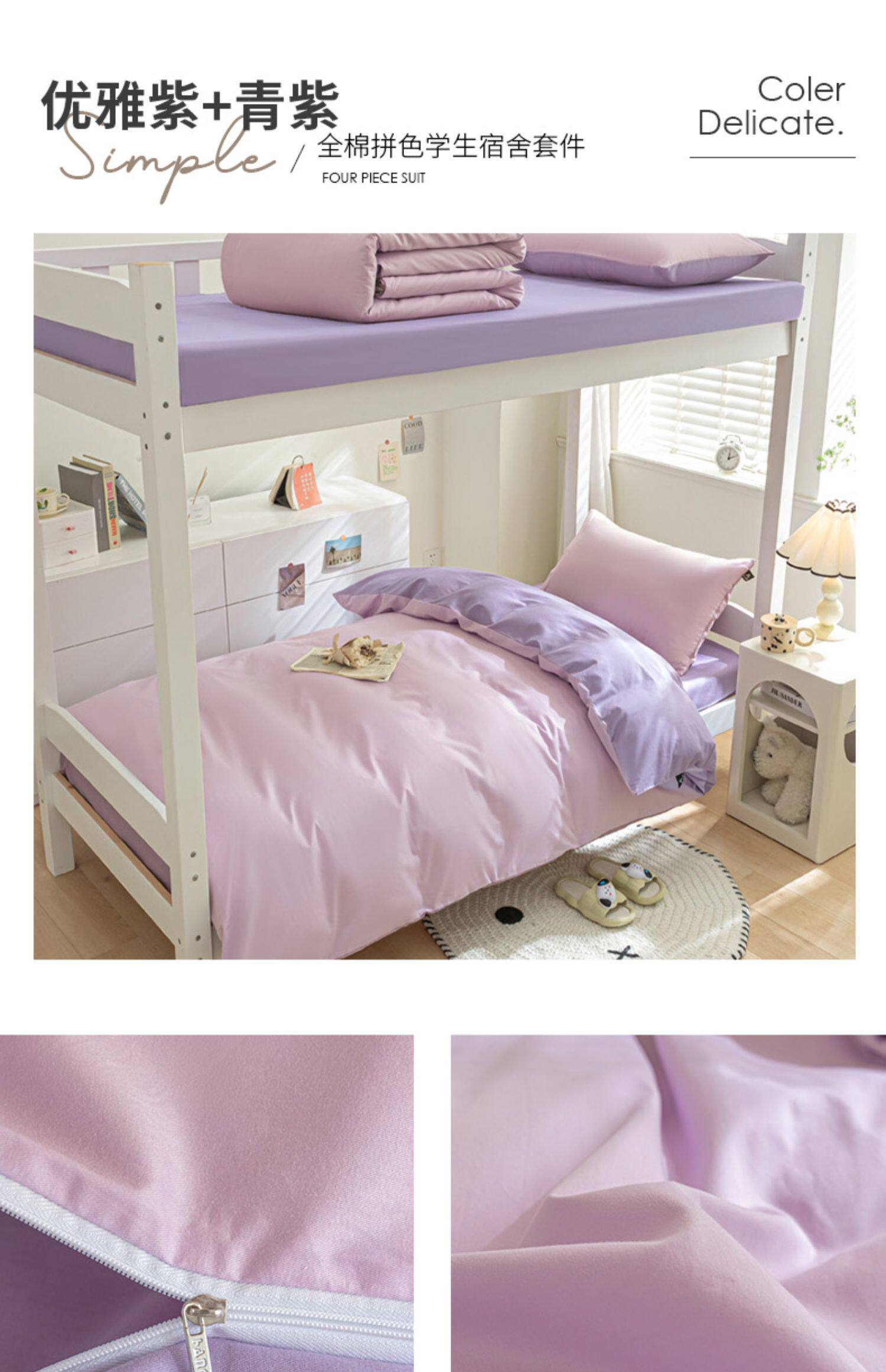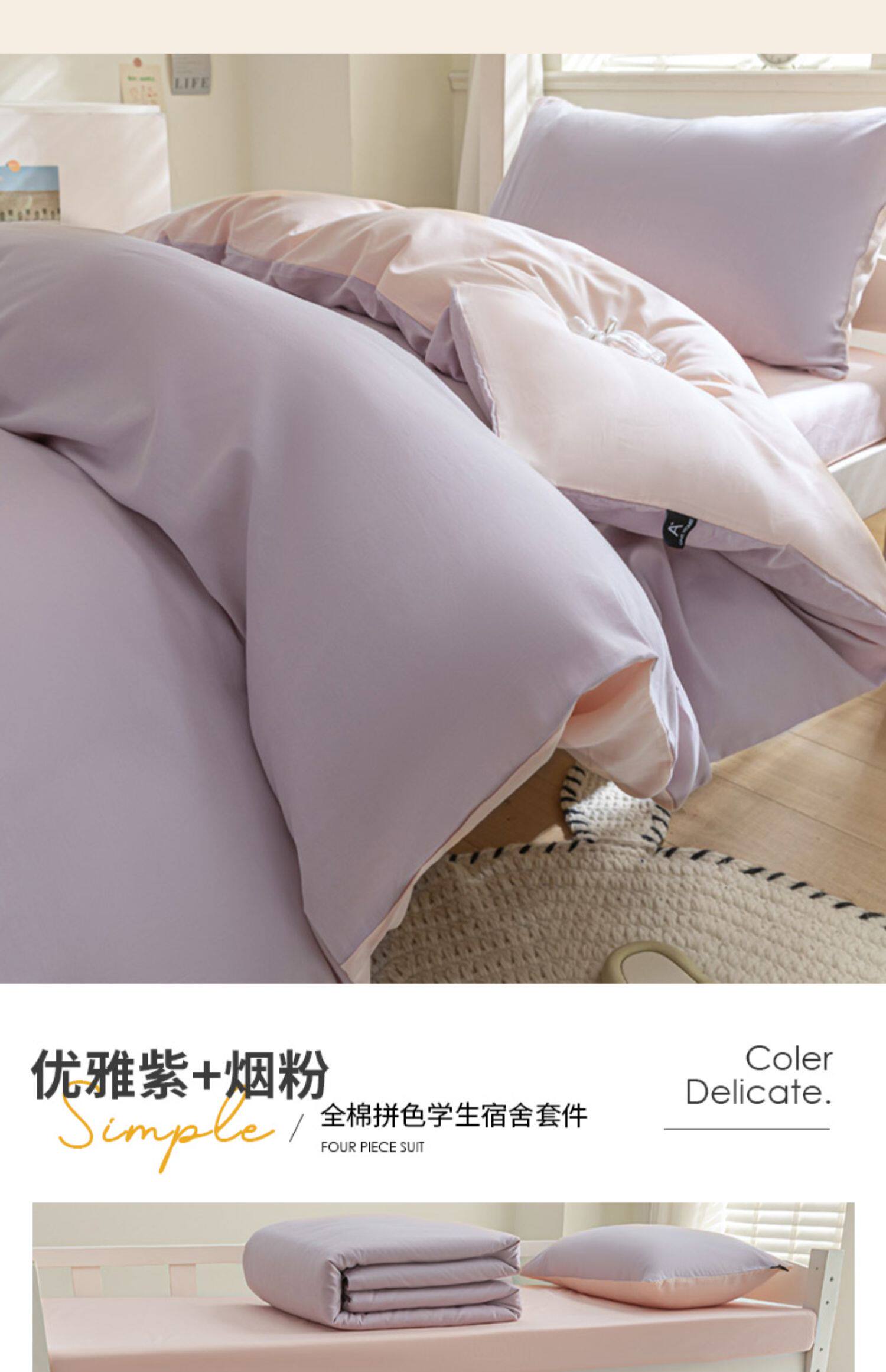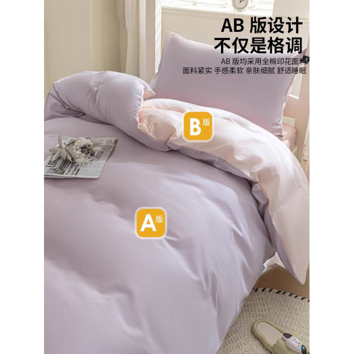 紫羅蘭全棉拼色學生宿捨三件套純棉簡約床單被套床上用品家用套件