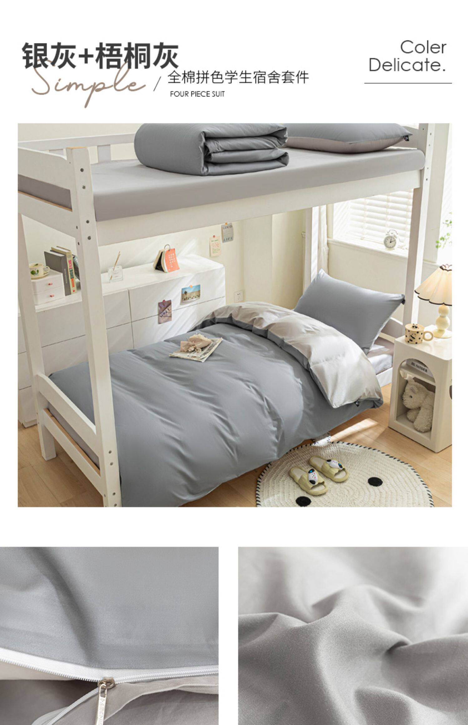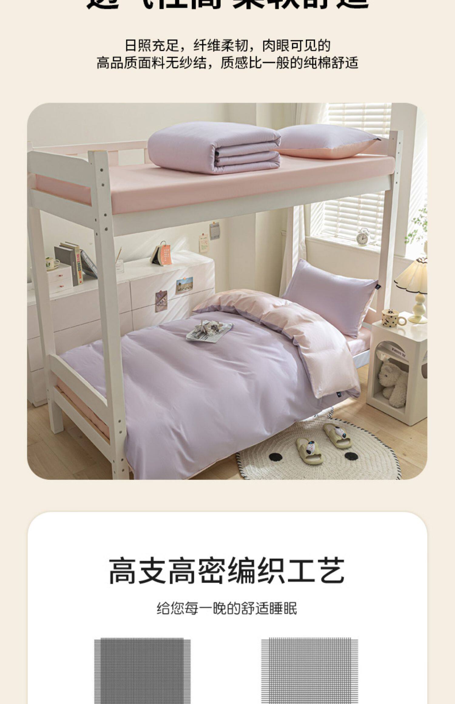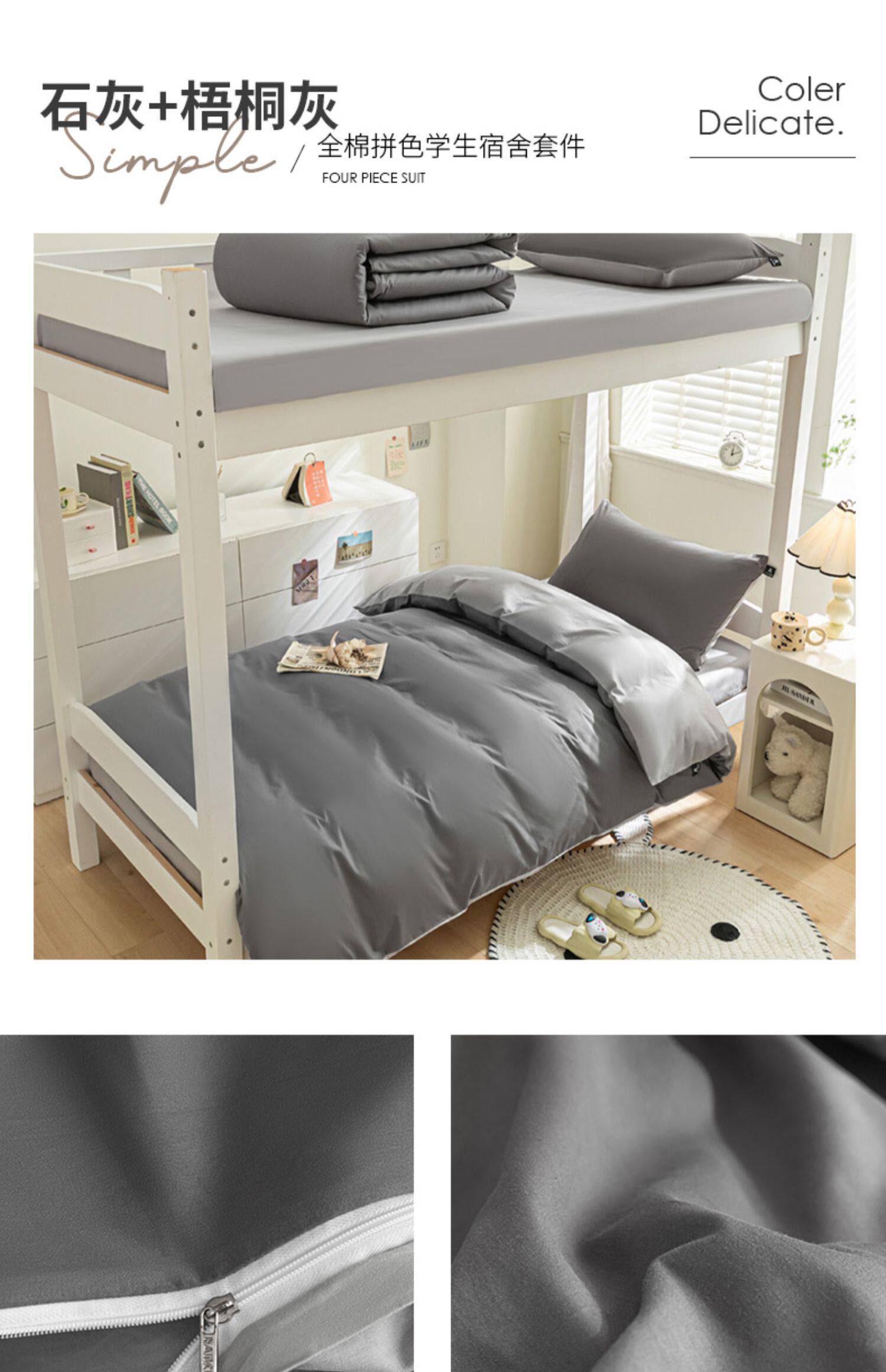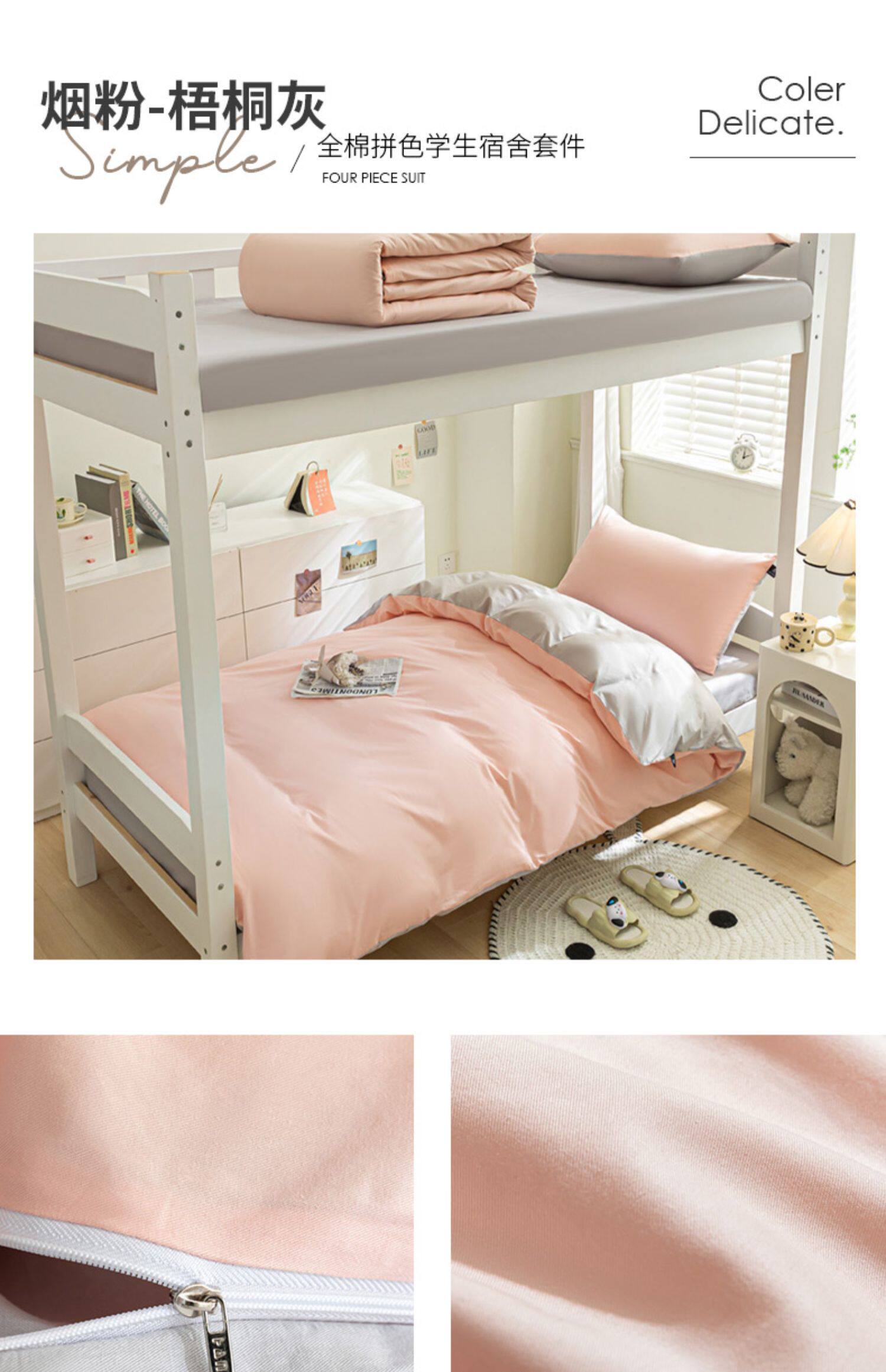 紫羅蘭全棉拼色學生宿捨三件套純棉簡約床單被套床上用品家用套件