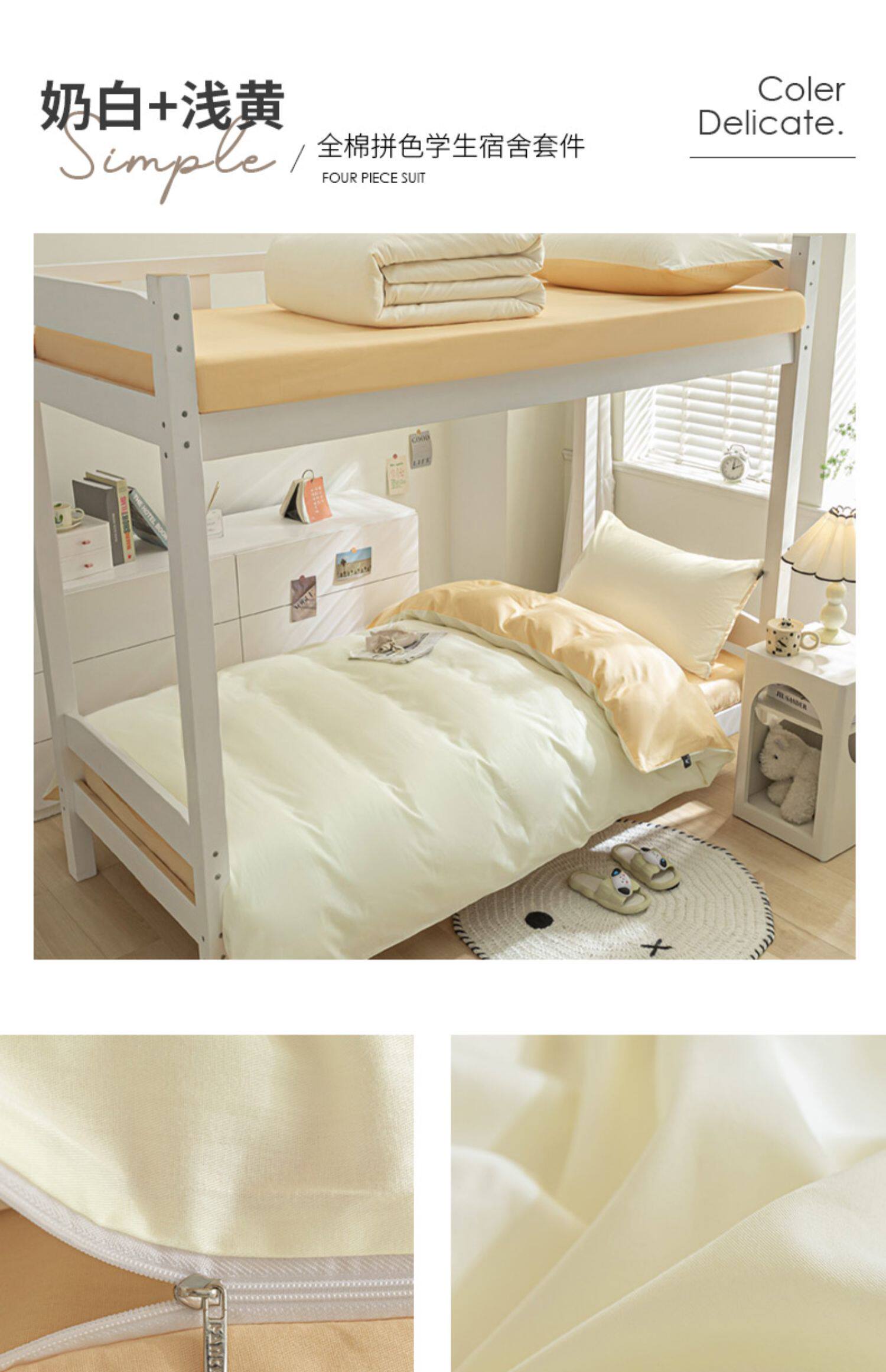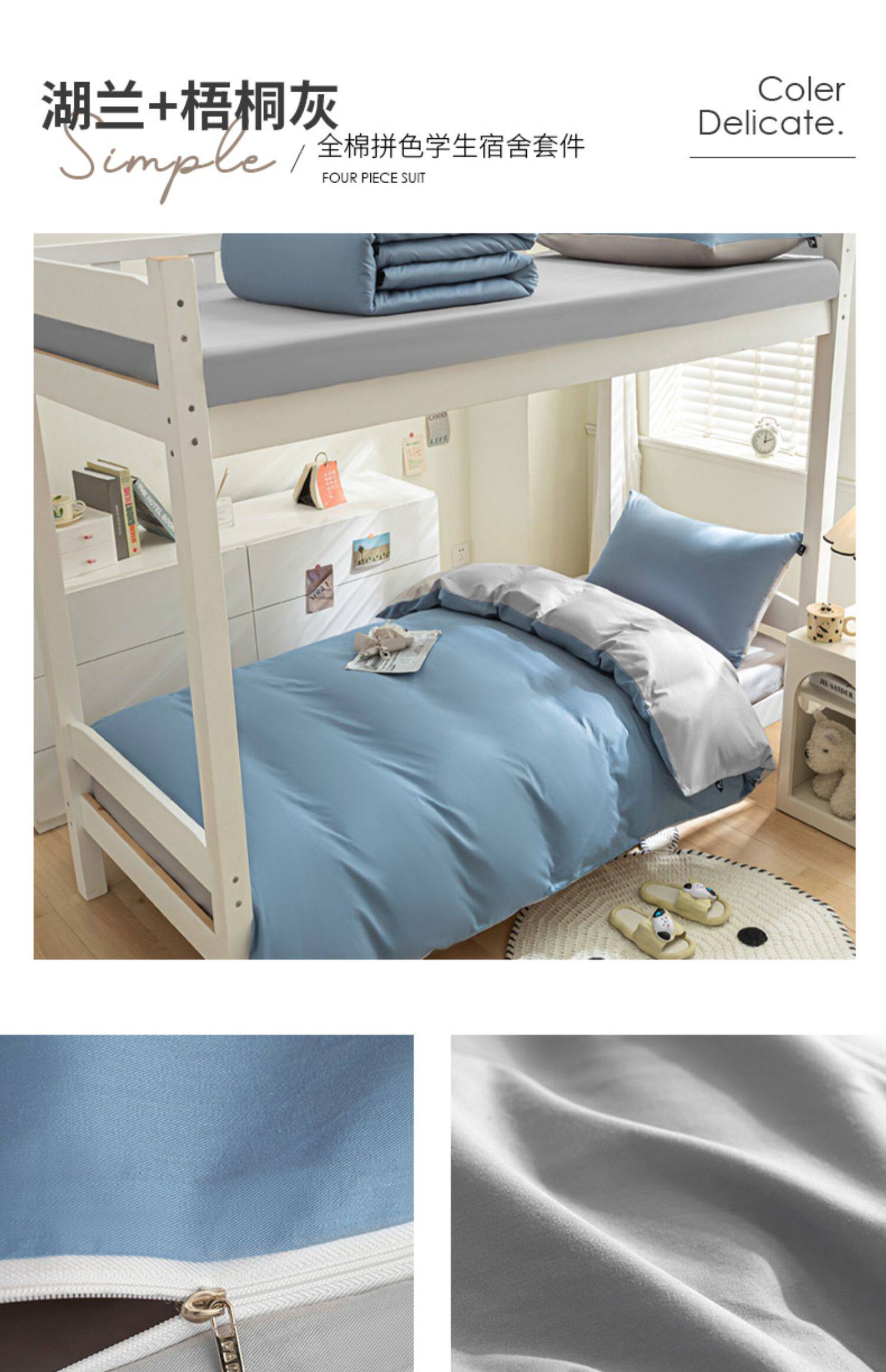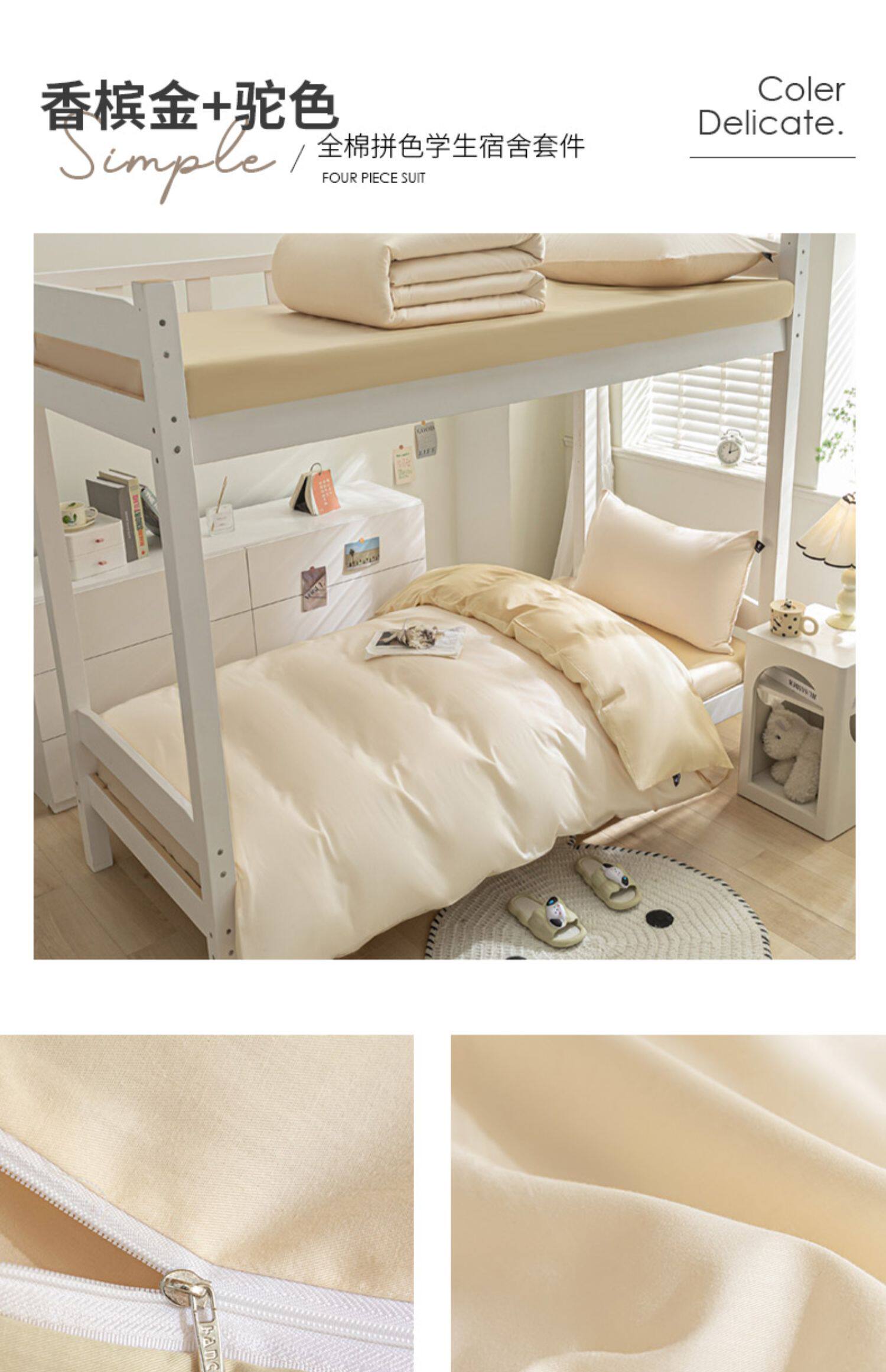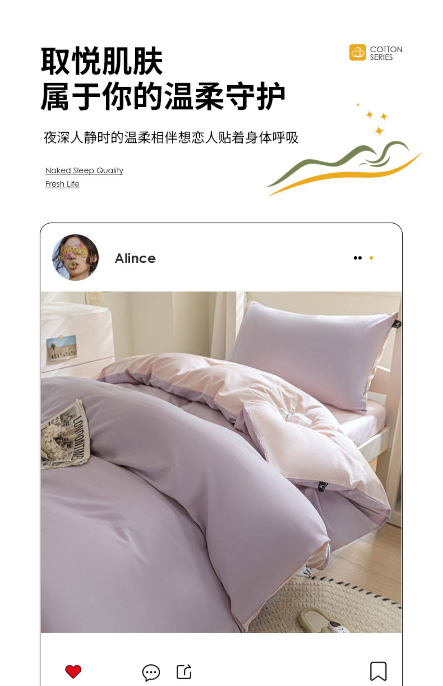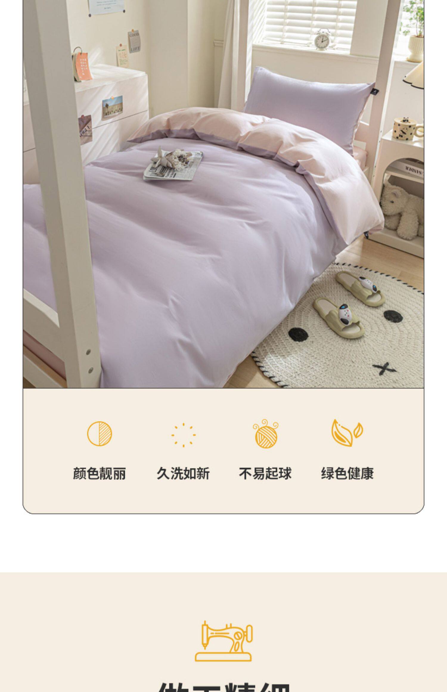 紫羅蘭全棉拼色學生宿捨三件套純棉簡約床單被套床上用品家用套件