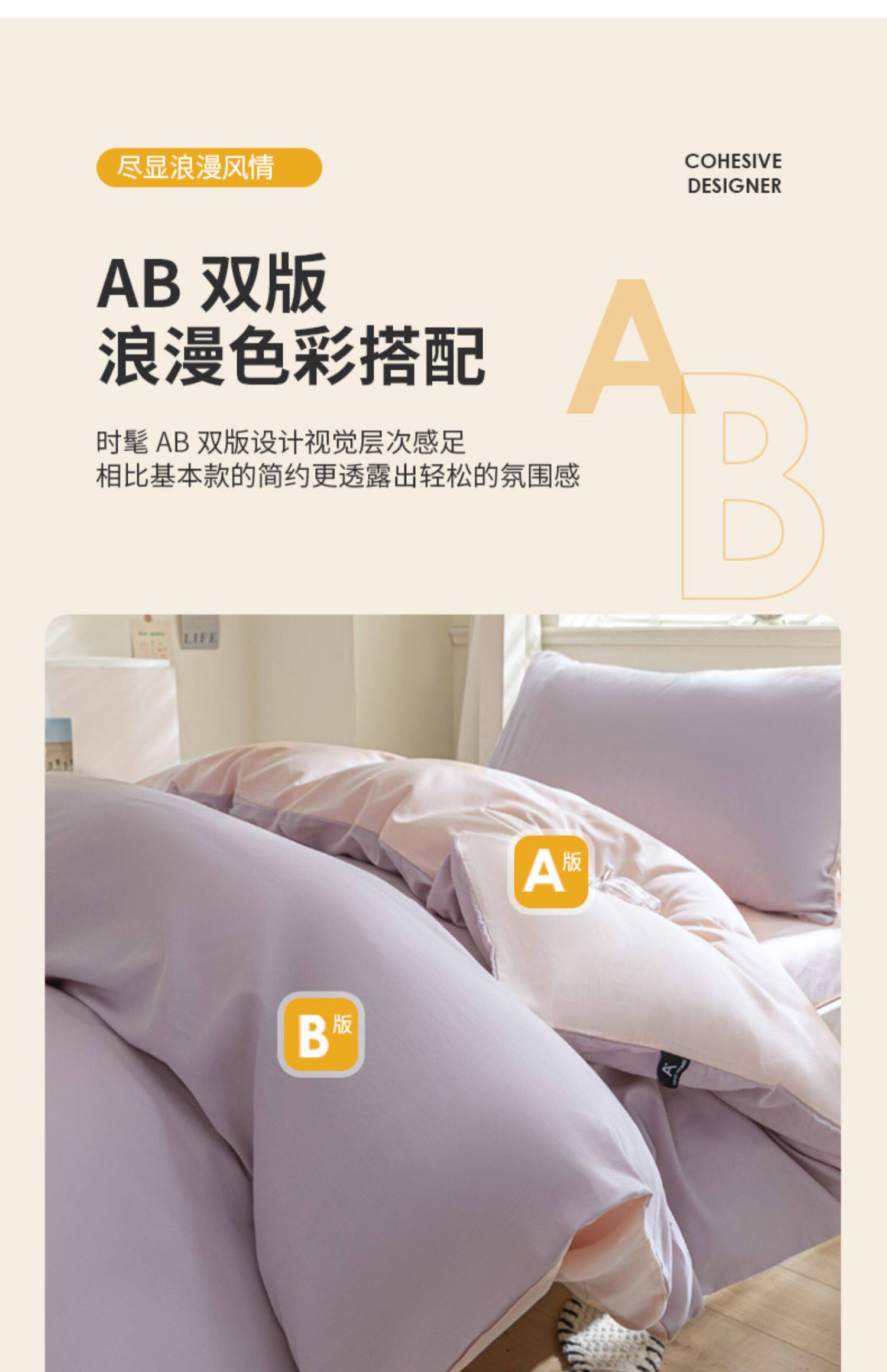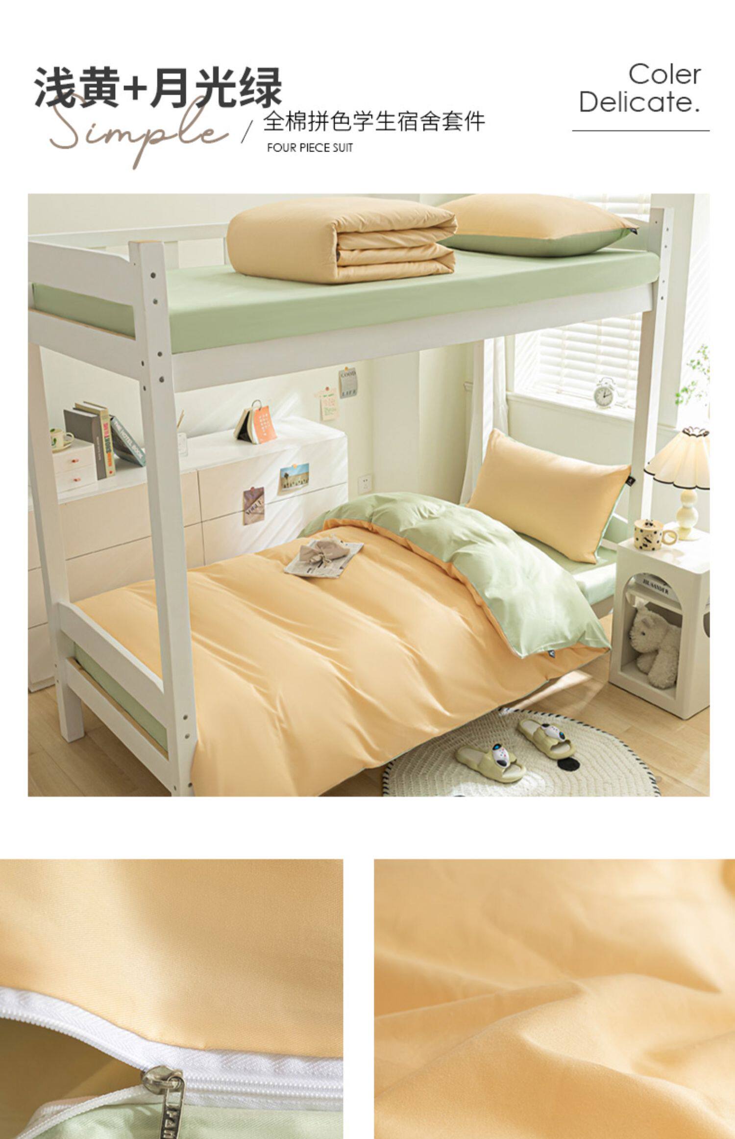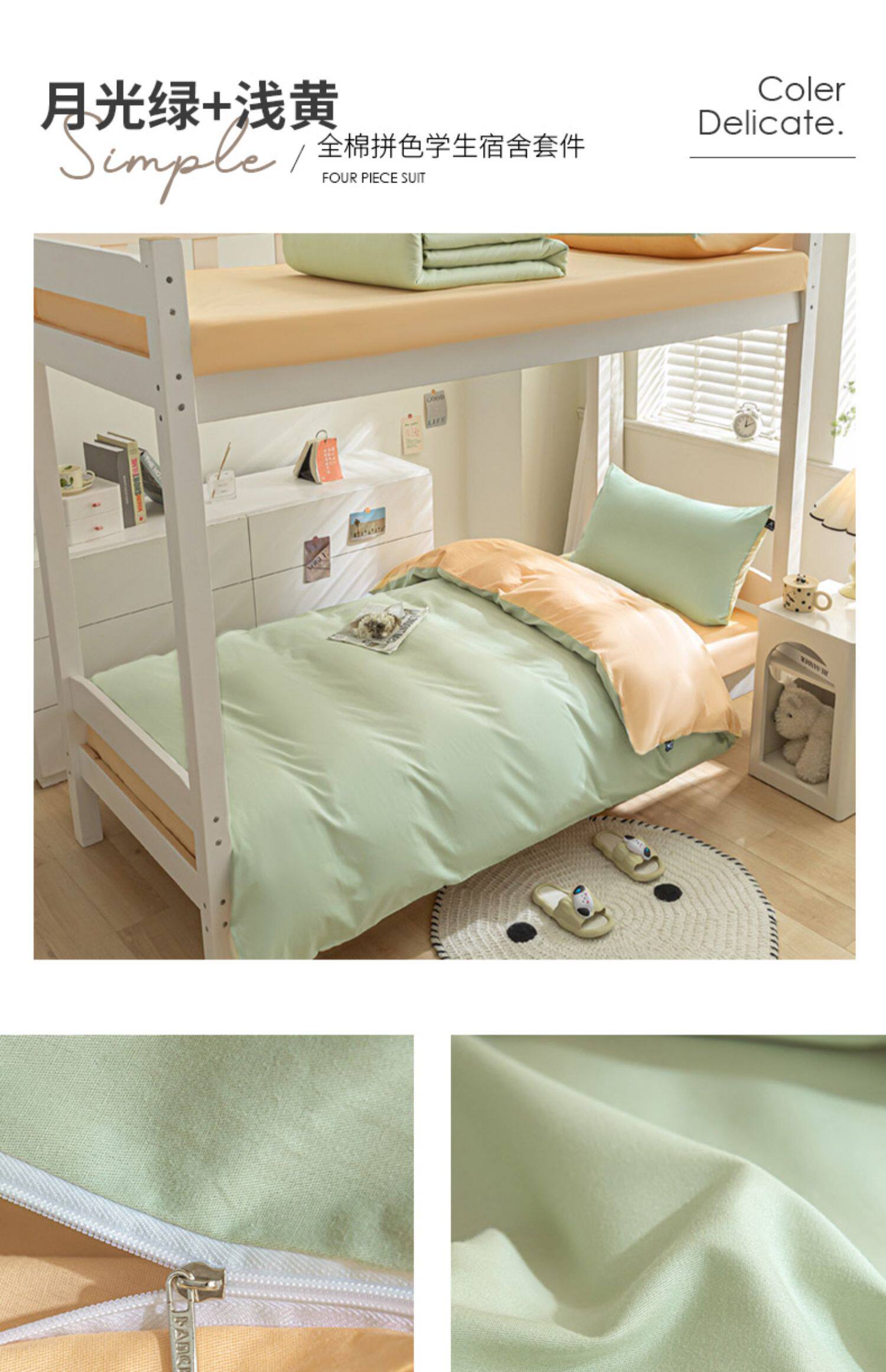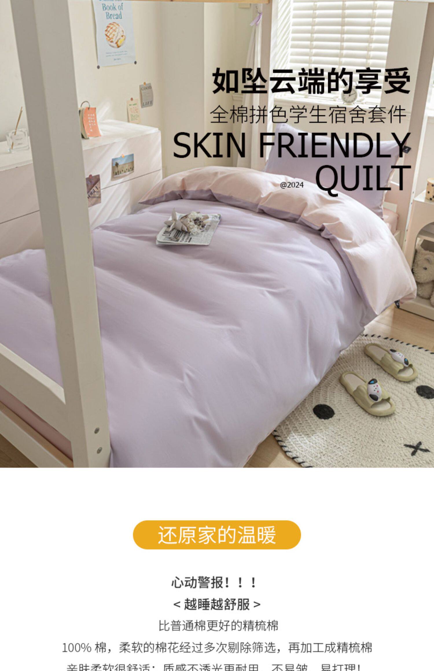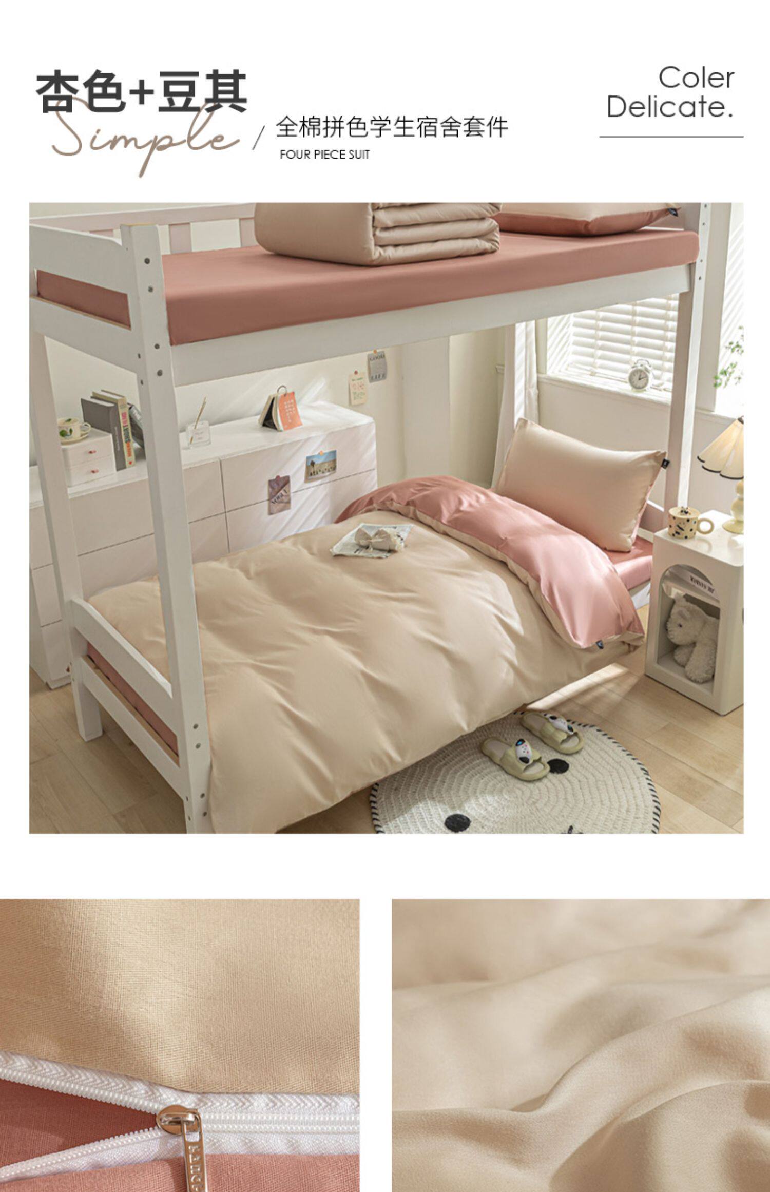 紫羅蘭全棉拼色學生宿捨三件套純棉簡約床單被套床上用品家用套件