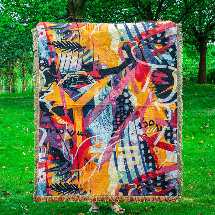野餐毯子塗鴉藝術INS掛毯蓋毯提花編織毯沙發巾線毯