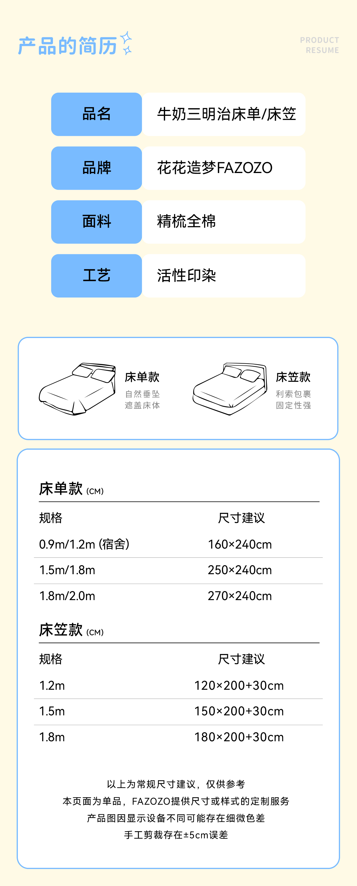 牛奶三明治 清新乾淨海鹽系床單全棉新疆棉純棉床包被單原創設計