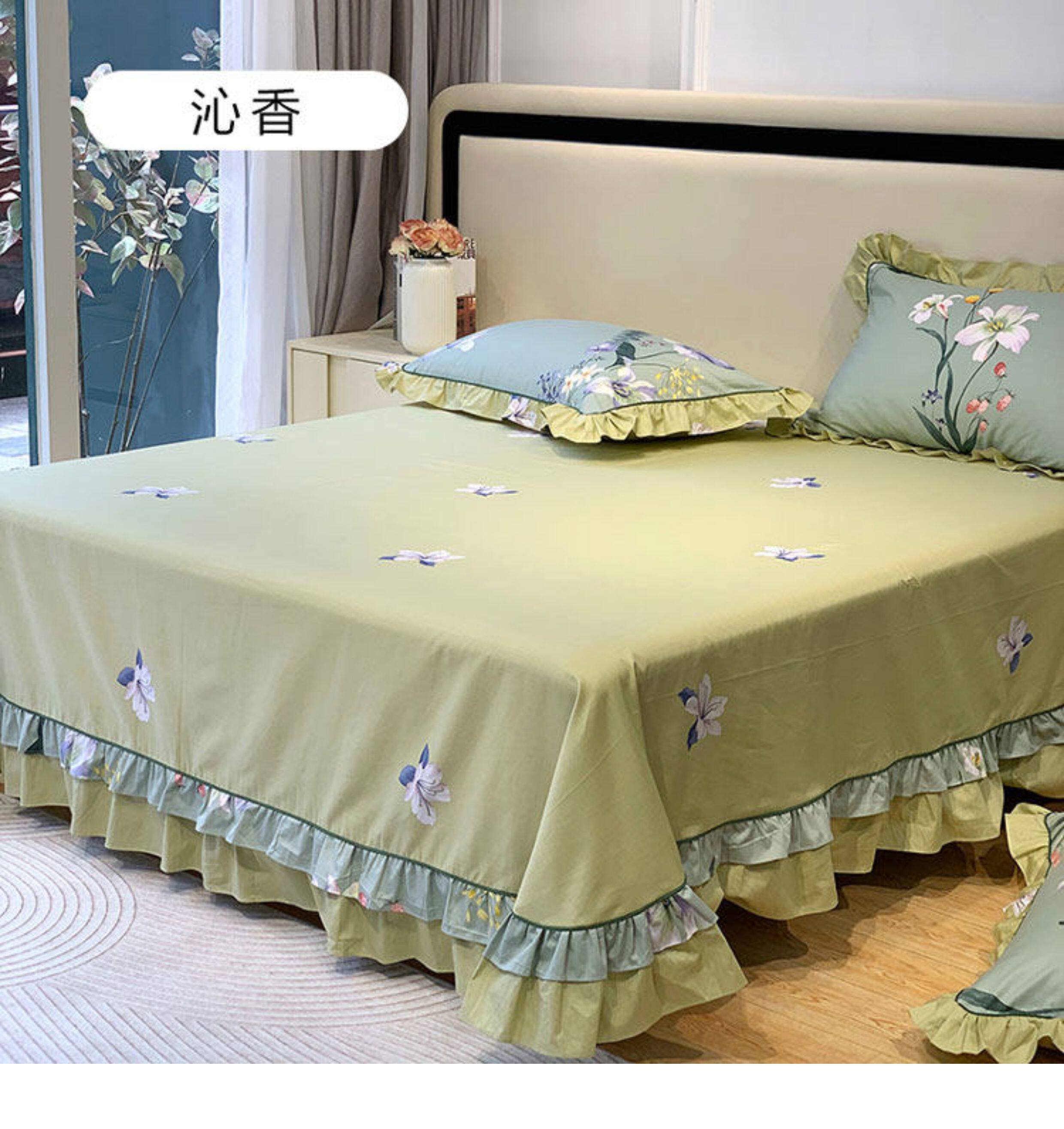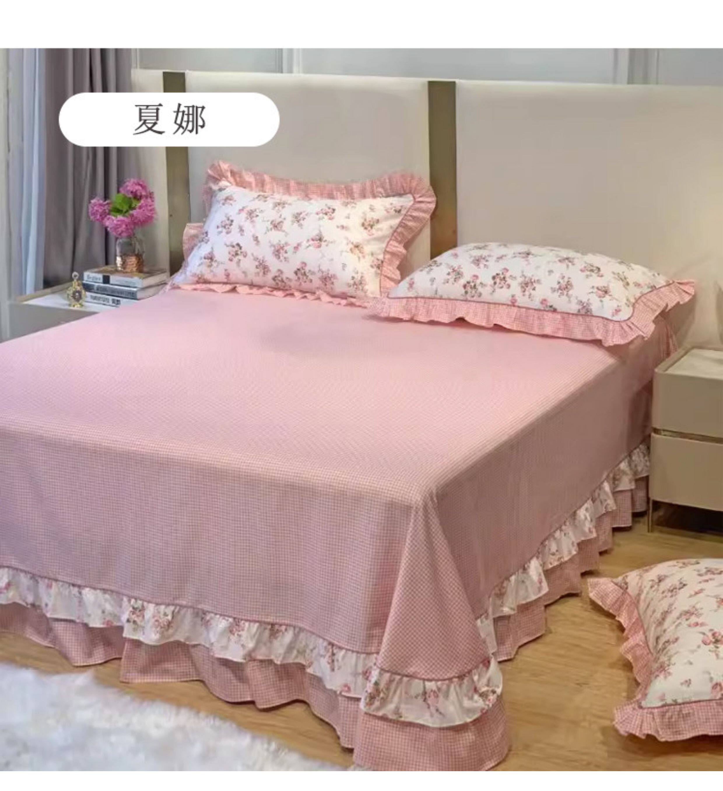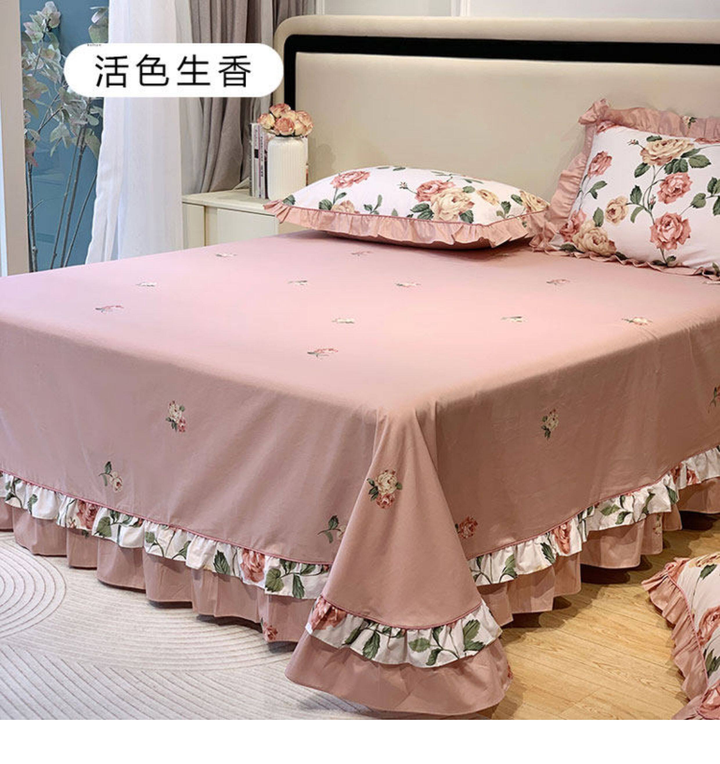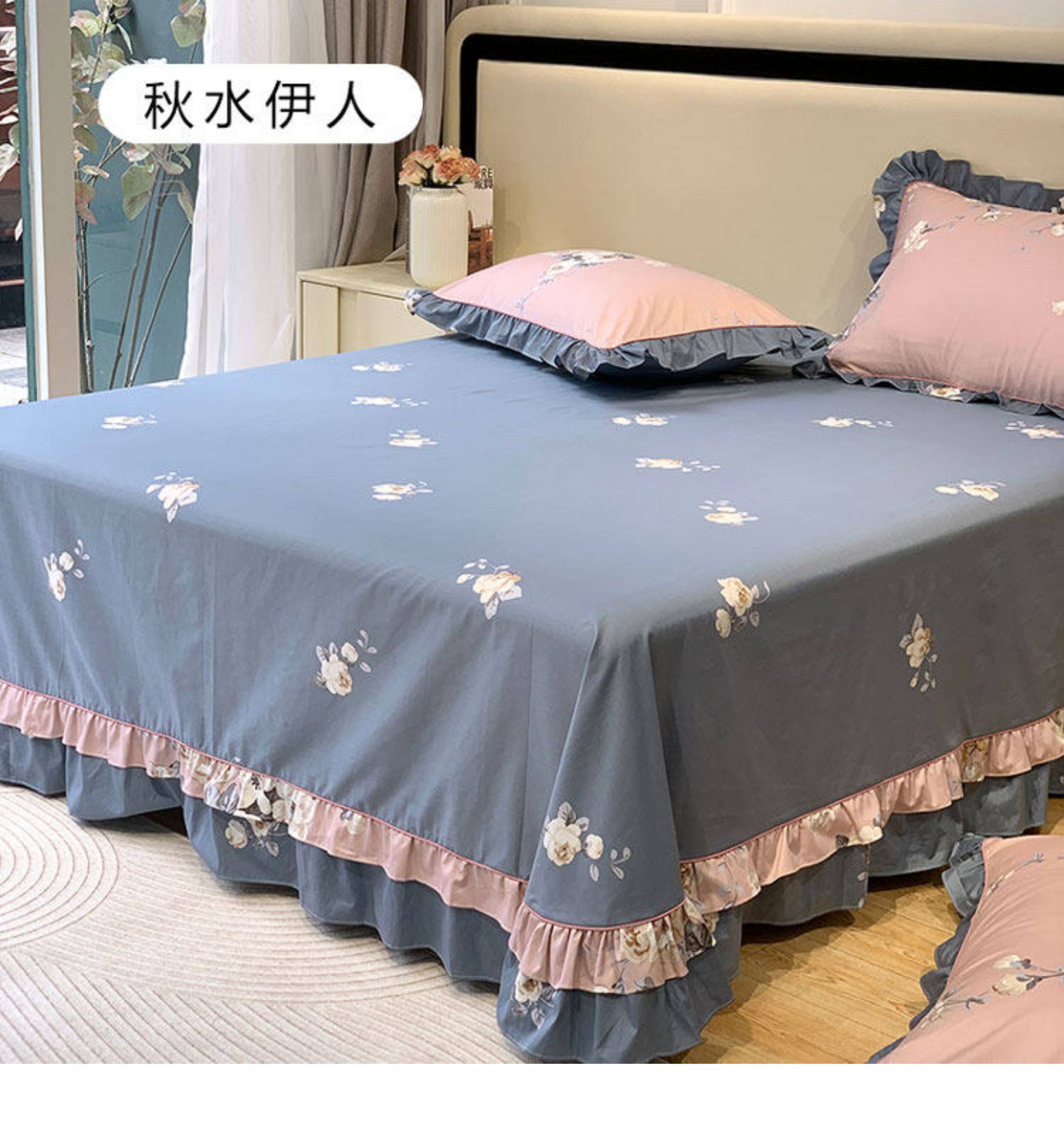 1米8x2米床雙人床單純棉單件100全棉紫色 四季通用被單三件套花邊