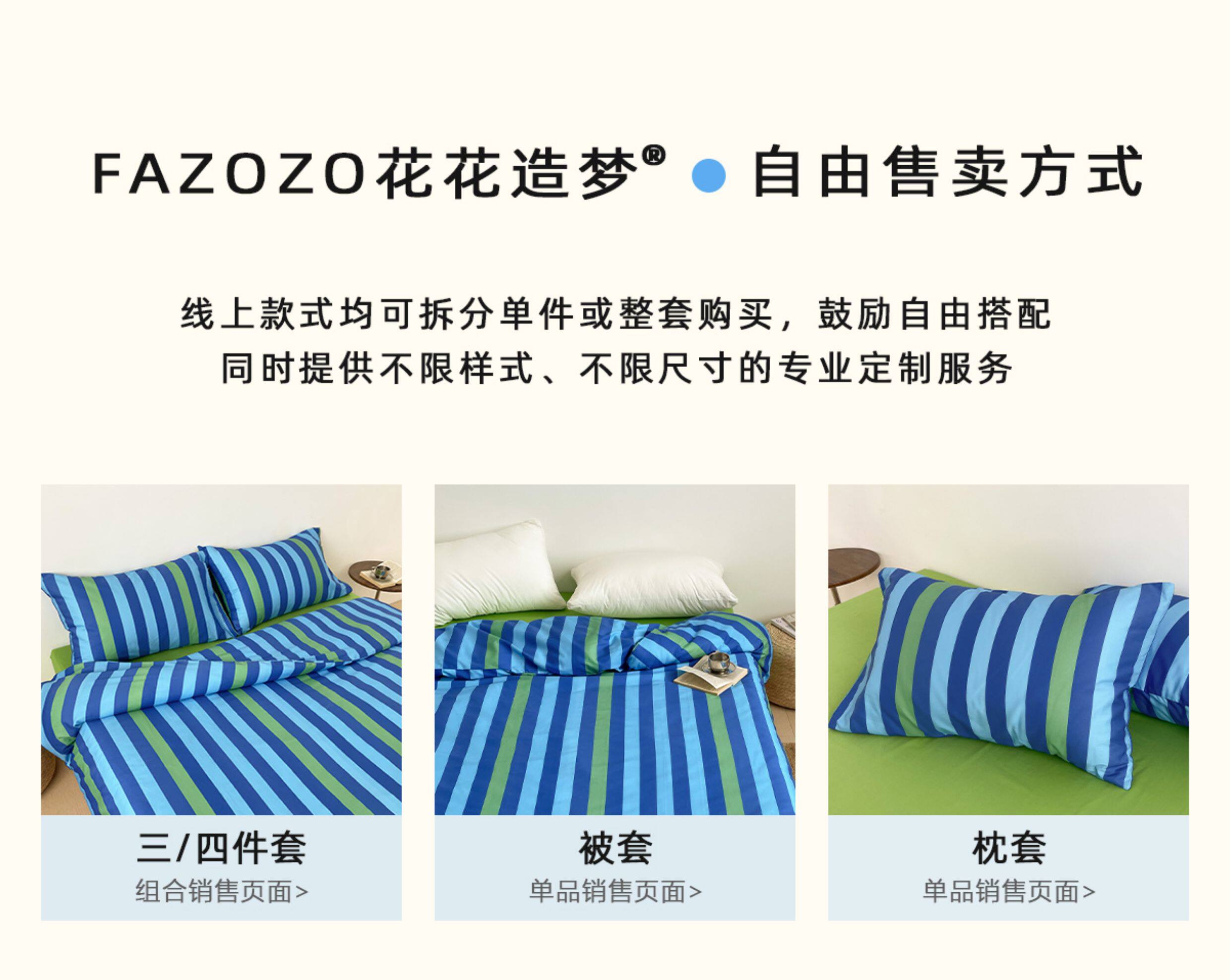 半島森林 經典撞色條紋全棉1米5藍色床單床包單件100純棉時尚藝術