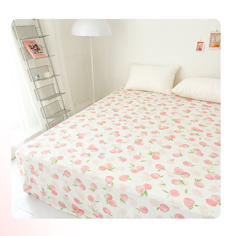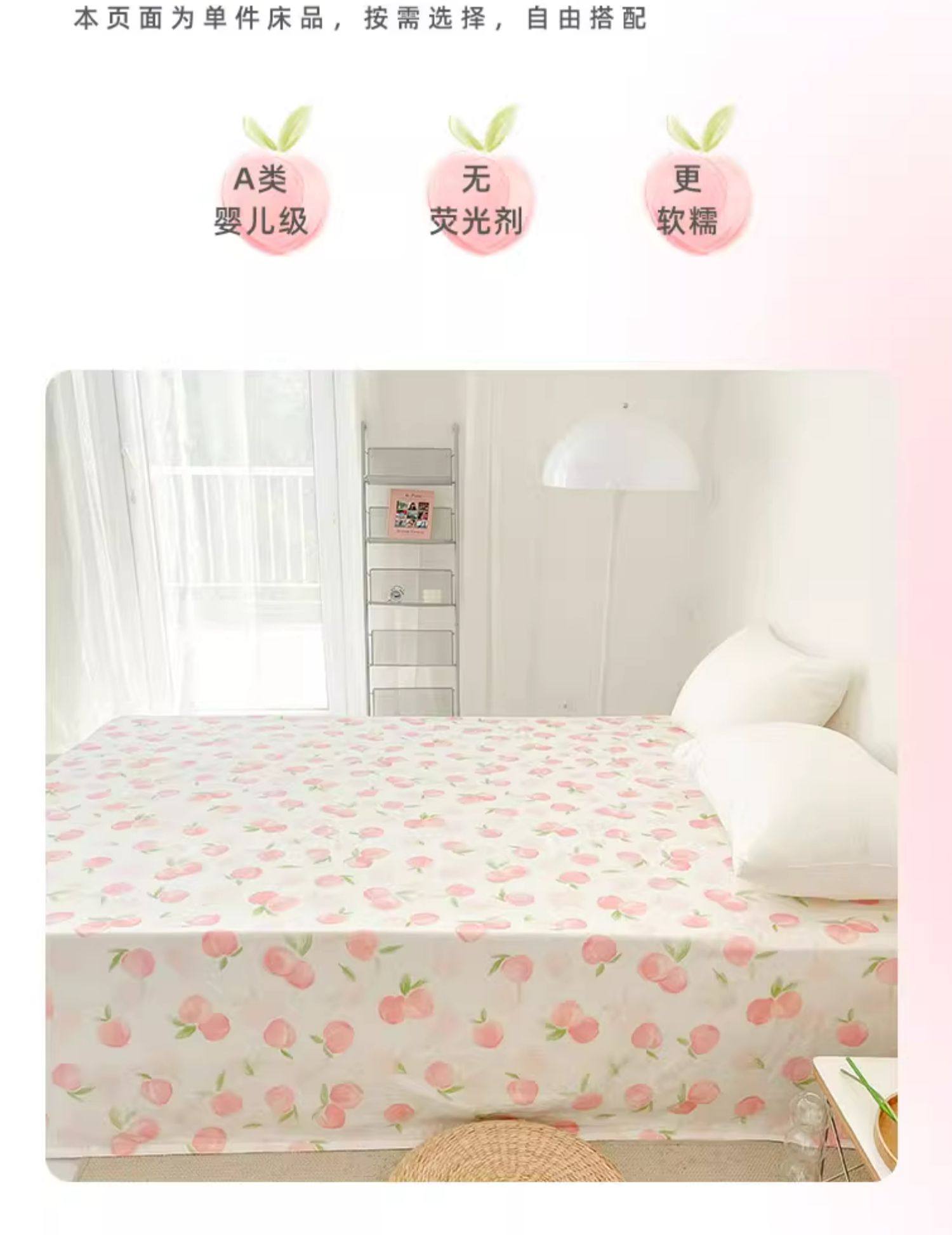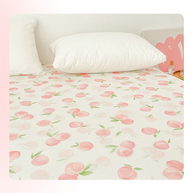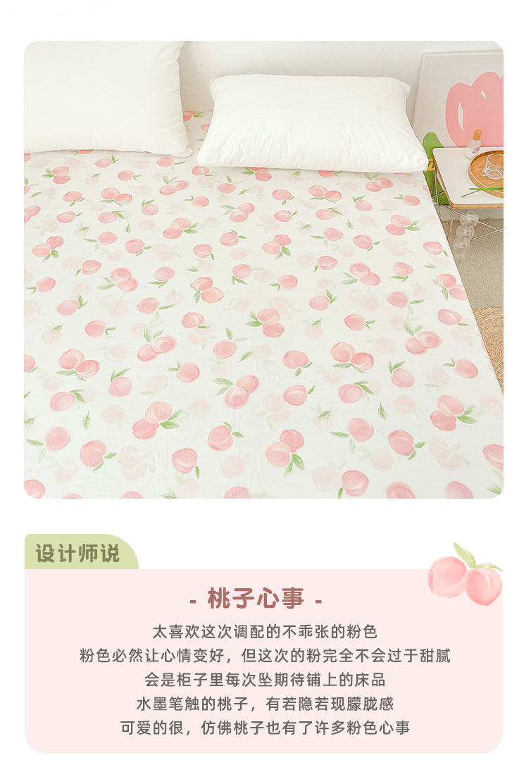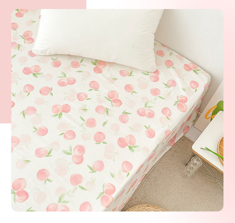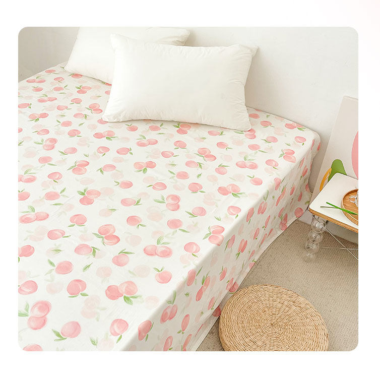桃子心事|敲美の少女粉色小桃原創設計全棉雙層紗床單床包柔軟款