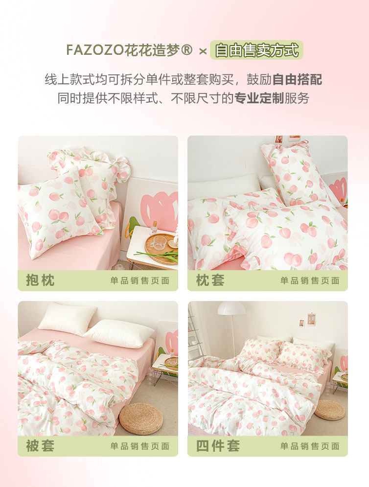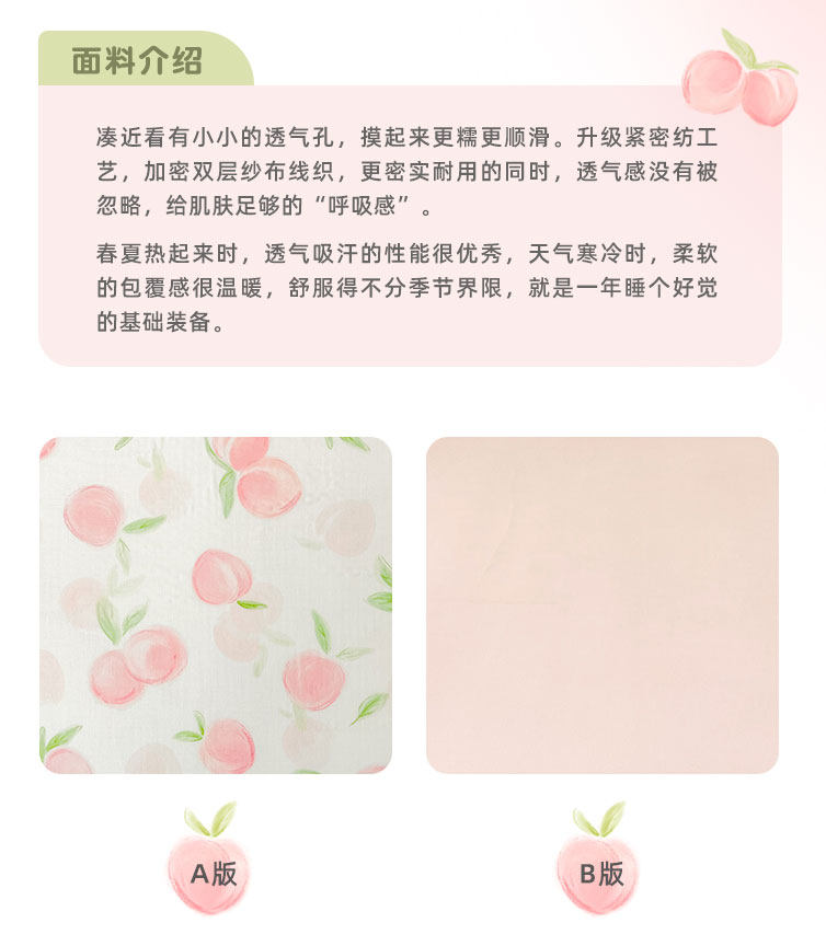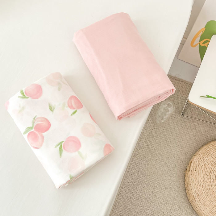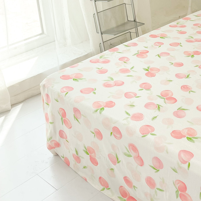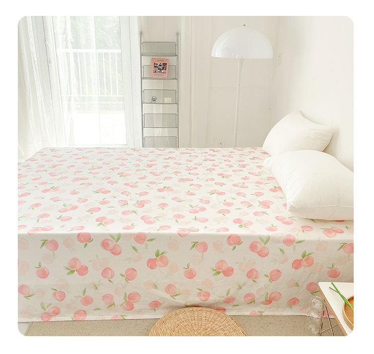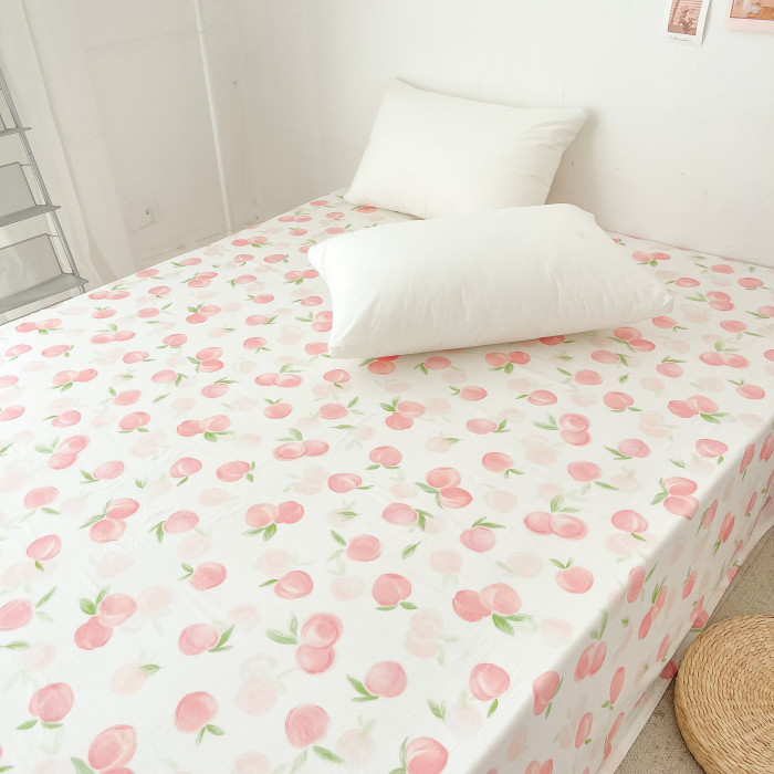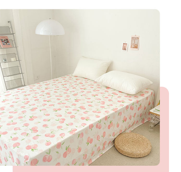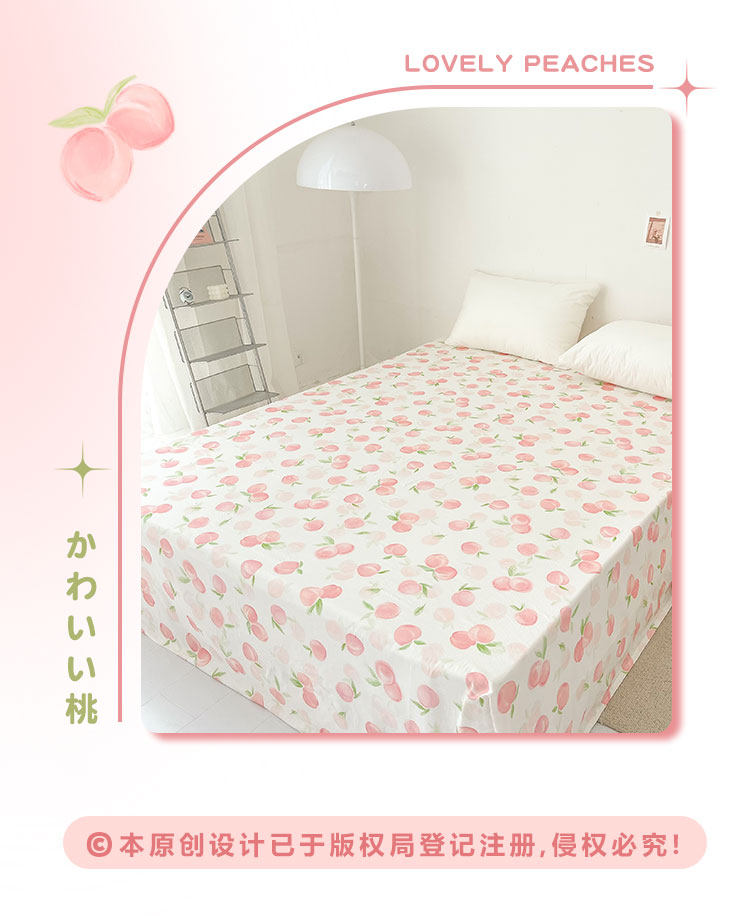 桃子心事|敲美の少女粉色小桃原創設計全棉雙層紗床單床包柔軟款
