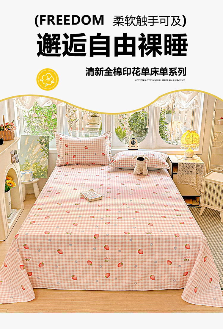 ins風純棉床單單件100%全棉被單1.2m學生宿捨單人1.5m1.8米雙人床